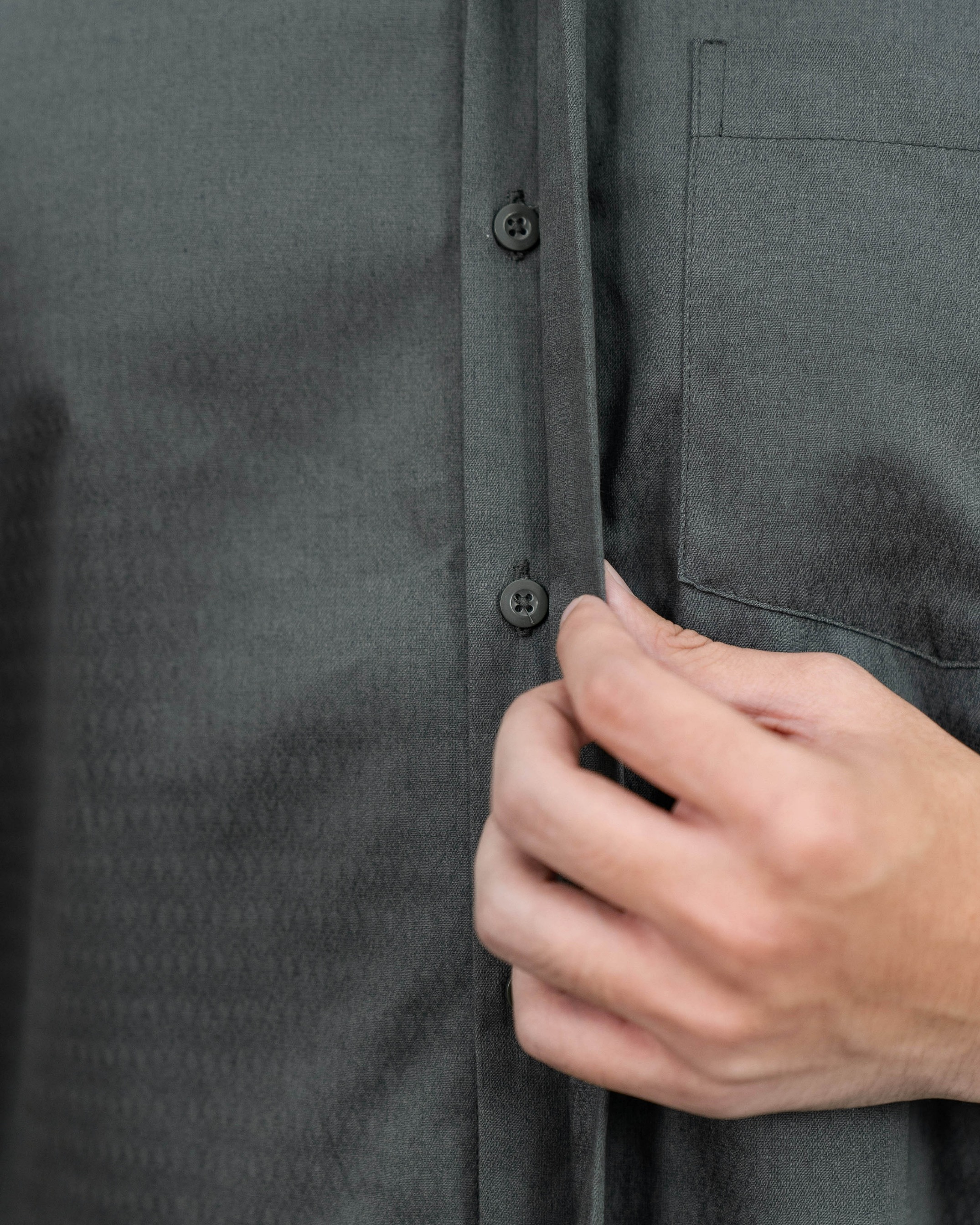 Bahan dobby katun dengan corak yang simple. Nyaman , tidak mudah kusut dan menyerap.