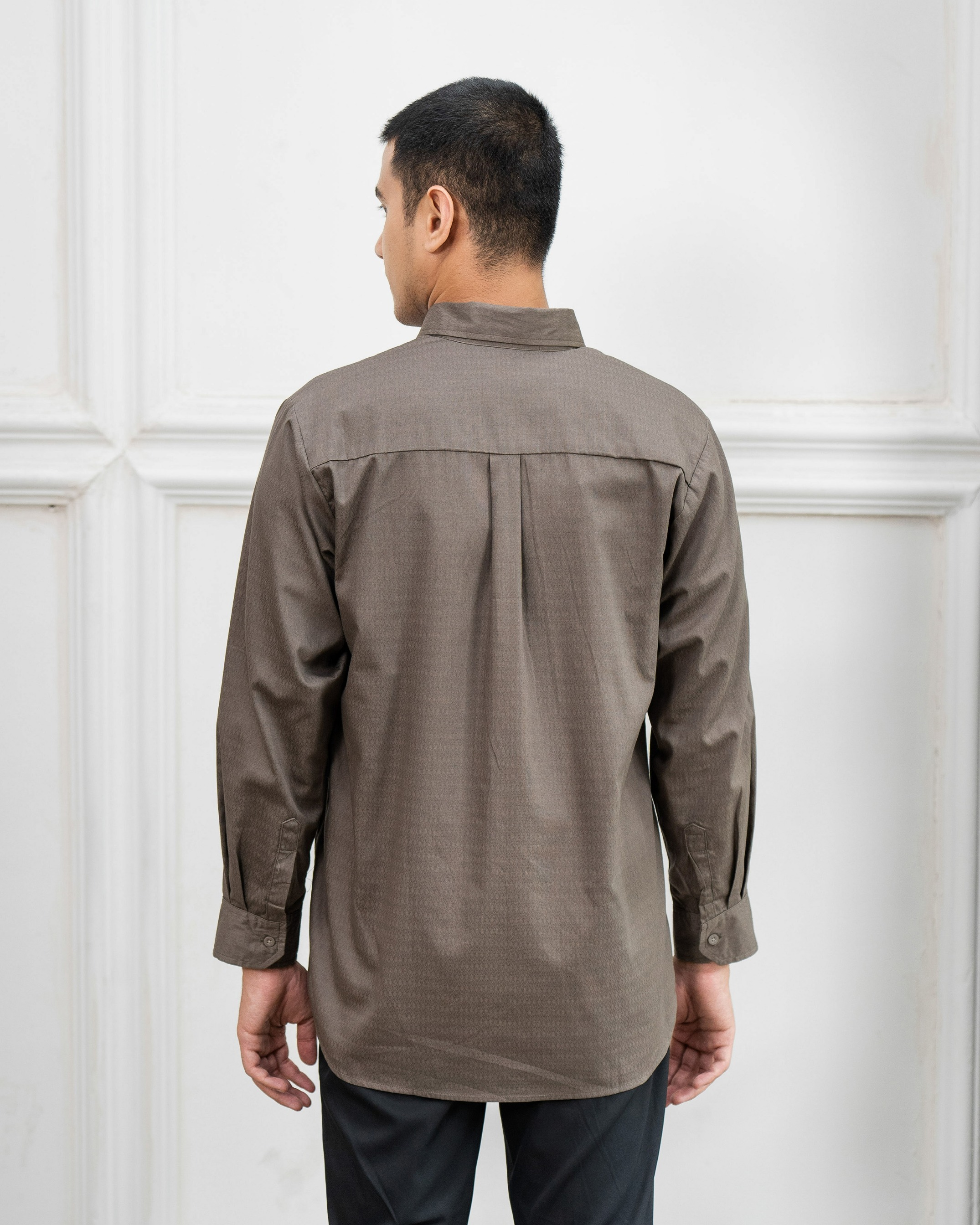 Bahan dobby katun dengan corak yang simple. Nyaman , tidak mudah kusut dan menyerap.