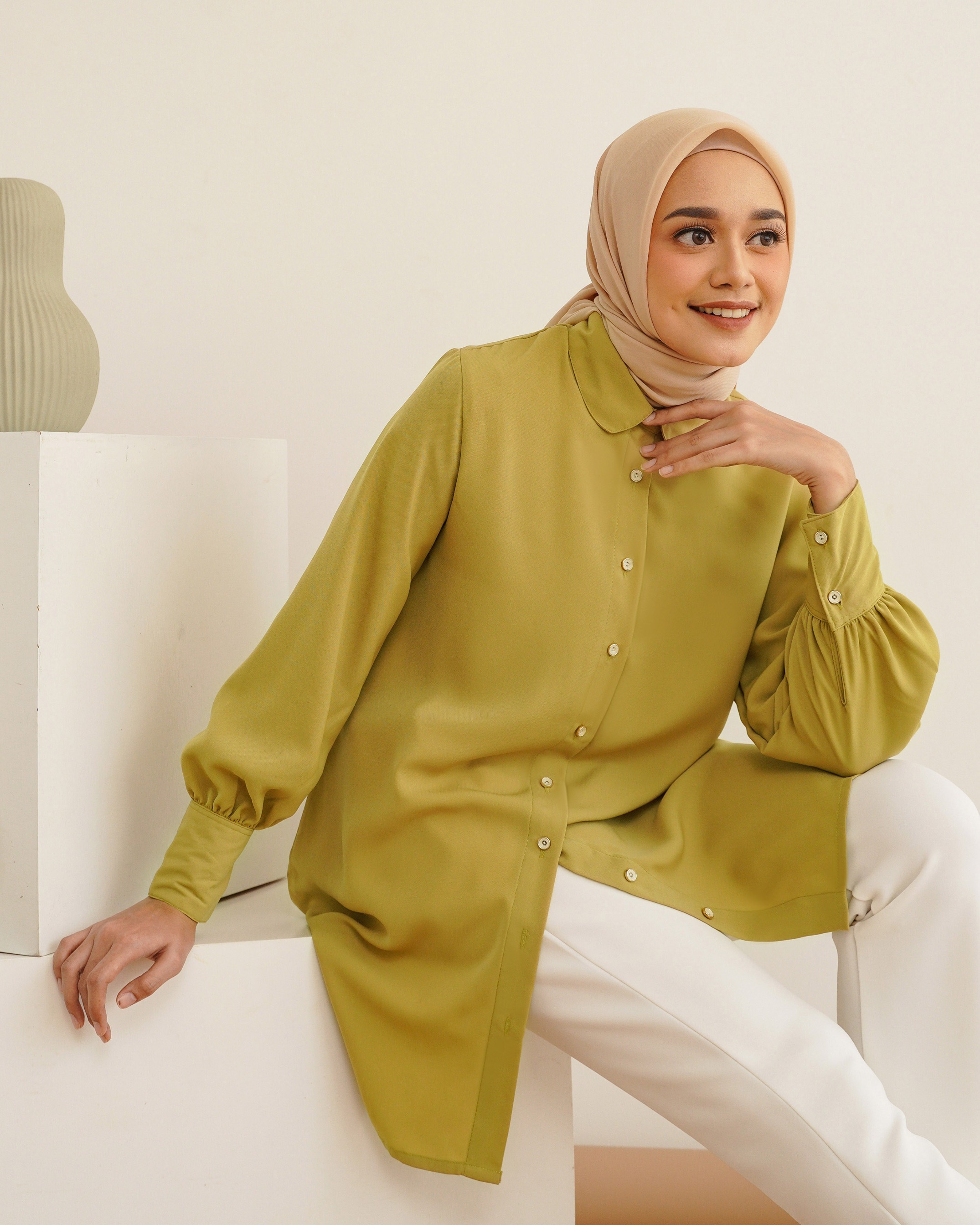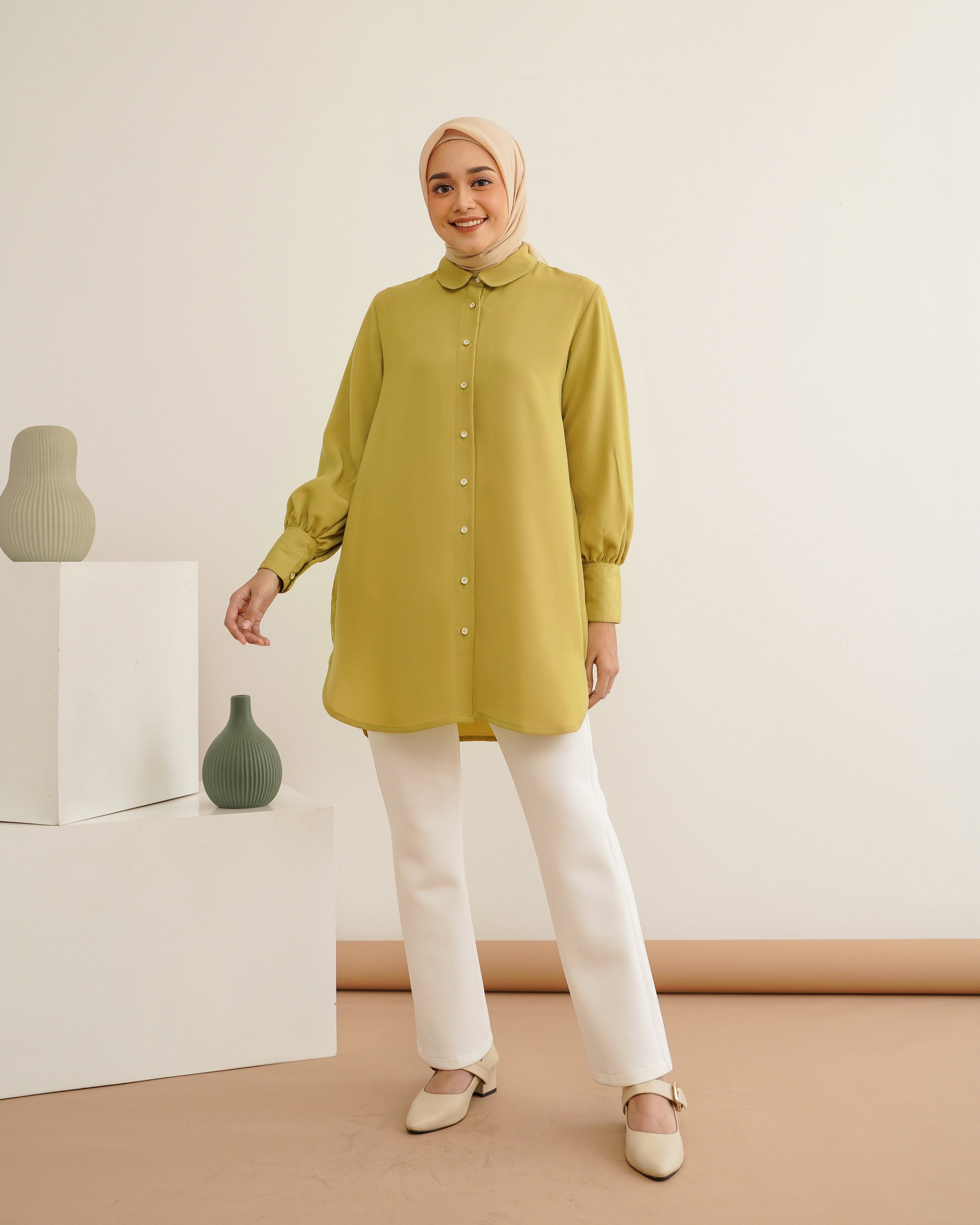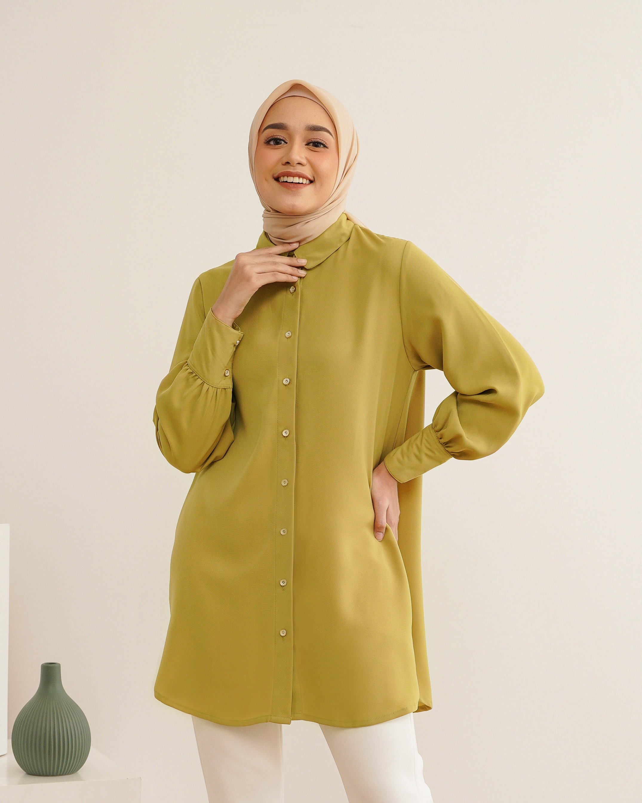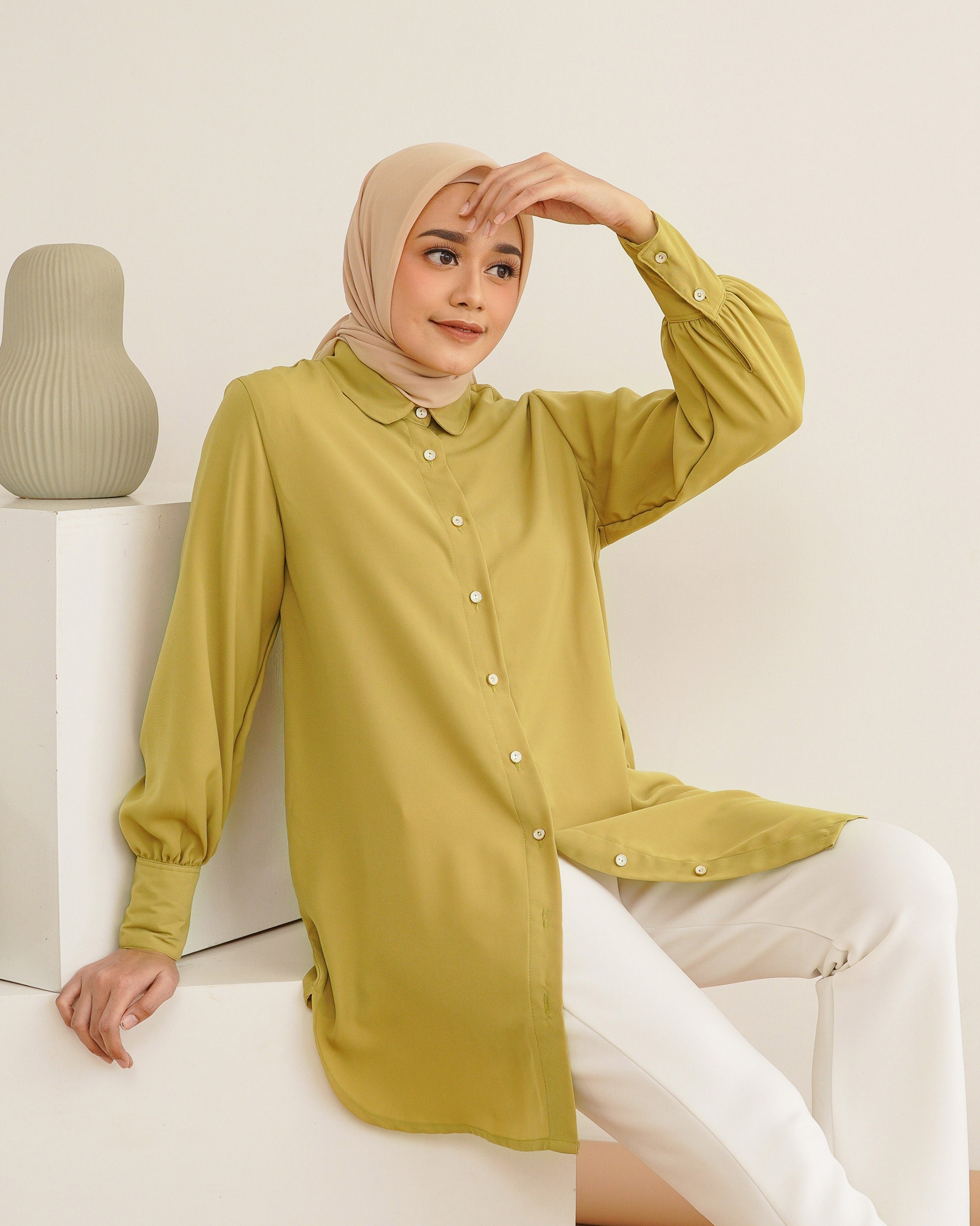 on model pakai size S • Bahan fine polyester. Tebal, flowy, dan tidak mudah kusut! ✔️ Khusus Brokenwhite ada Furing Tersedia 5 warna dengan ukuran XS/S/M/L/XL/XXL Lingkar dada: 90/94/98/104/110/120 Kerung lengan: 45/47/49/52/55/60 Panjang lengan: 57-58 cm Panjang top: 85-88 cm