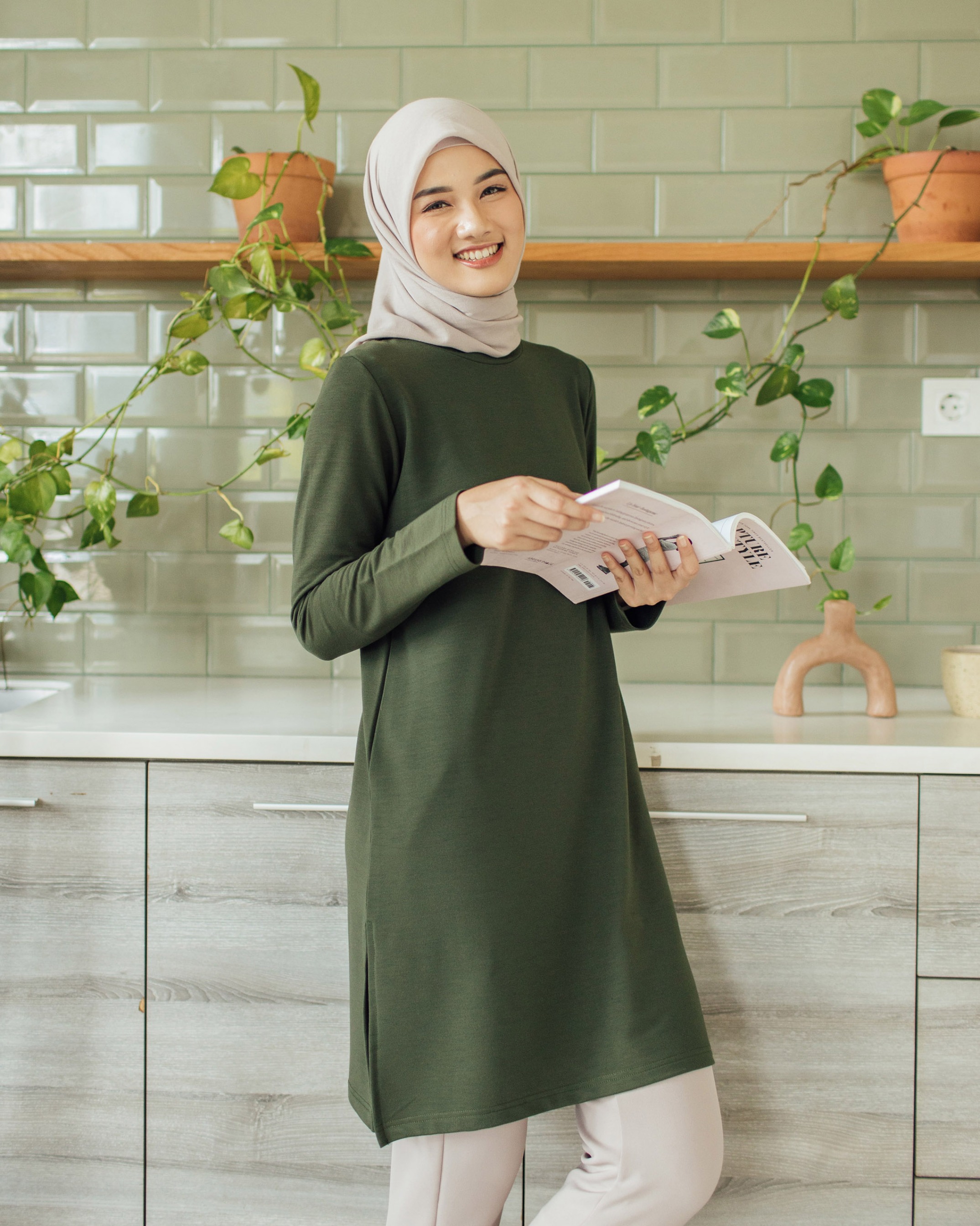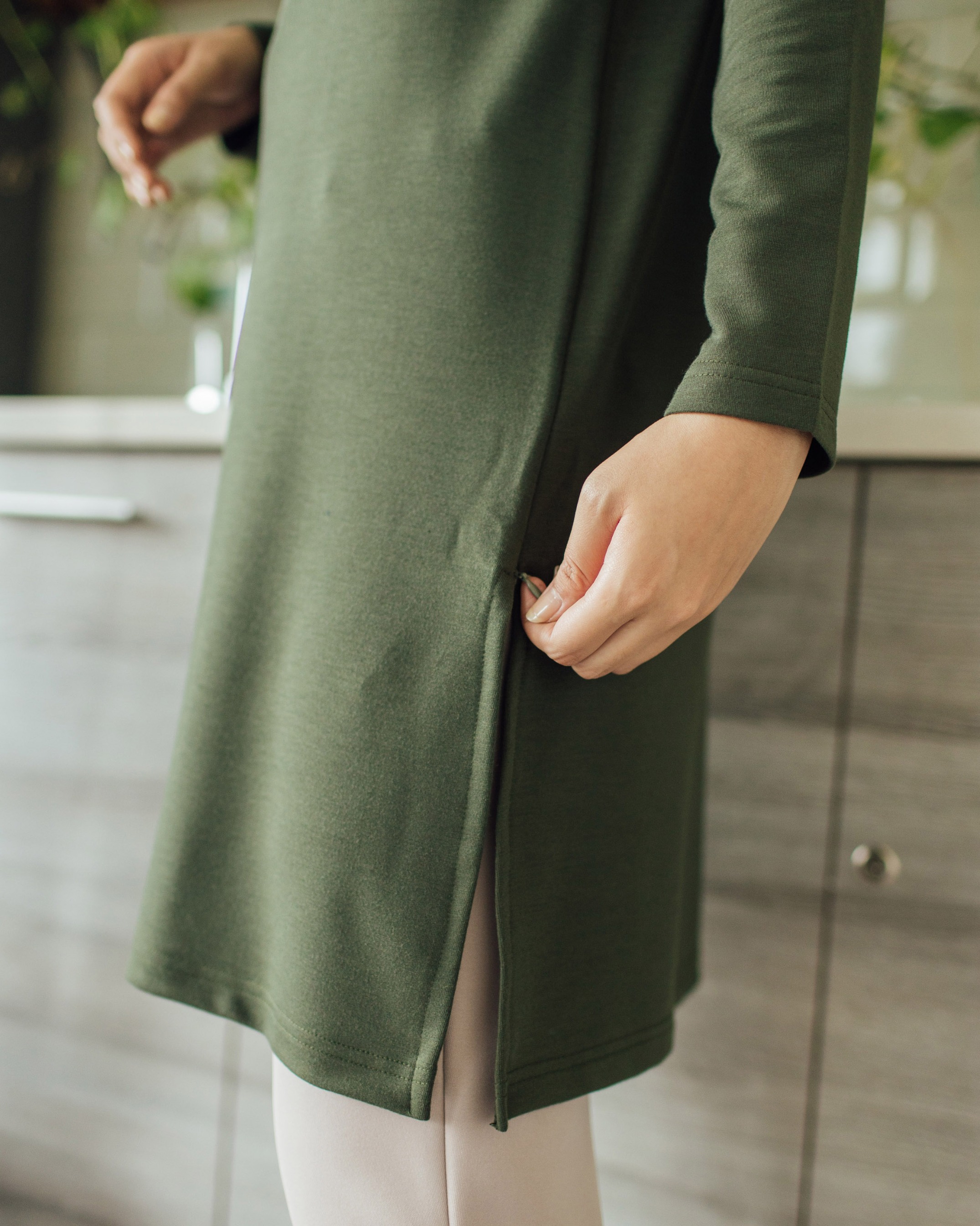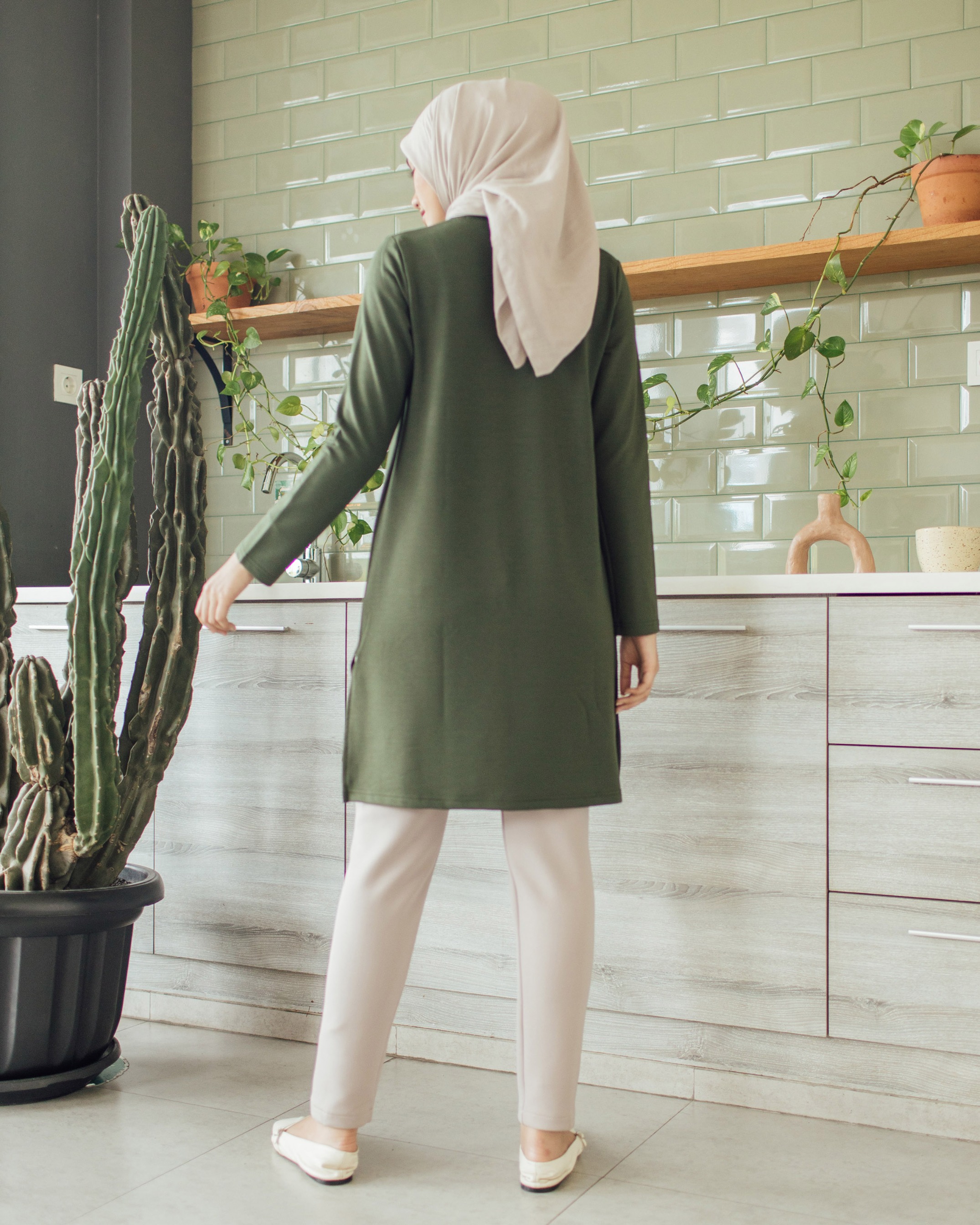 On model pakai size S • Bahan kaos terry. Tebal, stretch, tidak jiplak dan tidak transparan. Nyaman buat dipakai sehari2 dan menyerap. ✔️ Terdapat kancing di belakang untuk mempermudah pemakaian. ✔️ Terdapat zipper di 1 sisi samping, berfungsi utk bantu busui / pumping jika diperlukan. Serta bs menambah aksen slit Tersedia 6 warna dengan ukuran XS/S/M/L/XL/XXL Lingkar dada: 90/94/98/104/110/120 Kerung lengan: 44/46/48/52/54/56 Panjang tangan: 57-58 cm Panjang tunic: 90 cm
