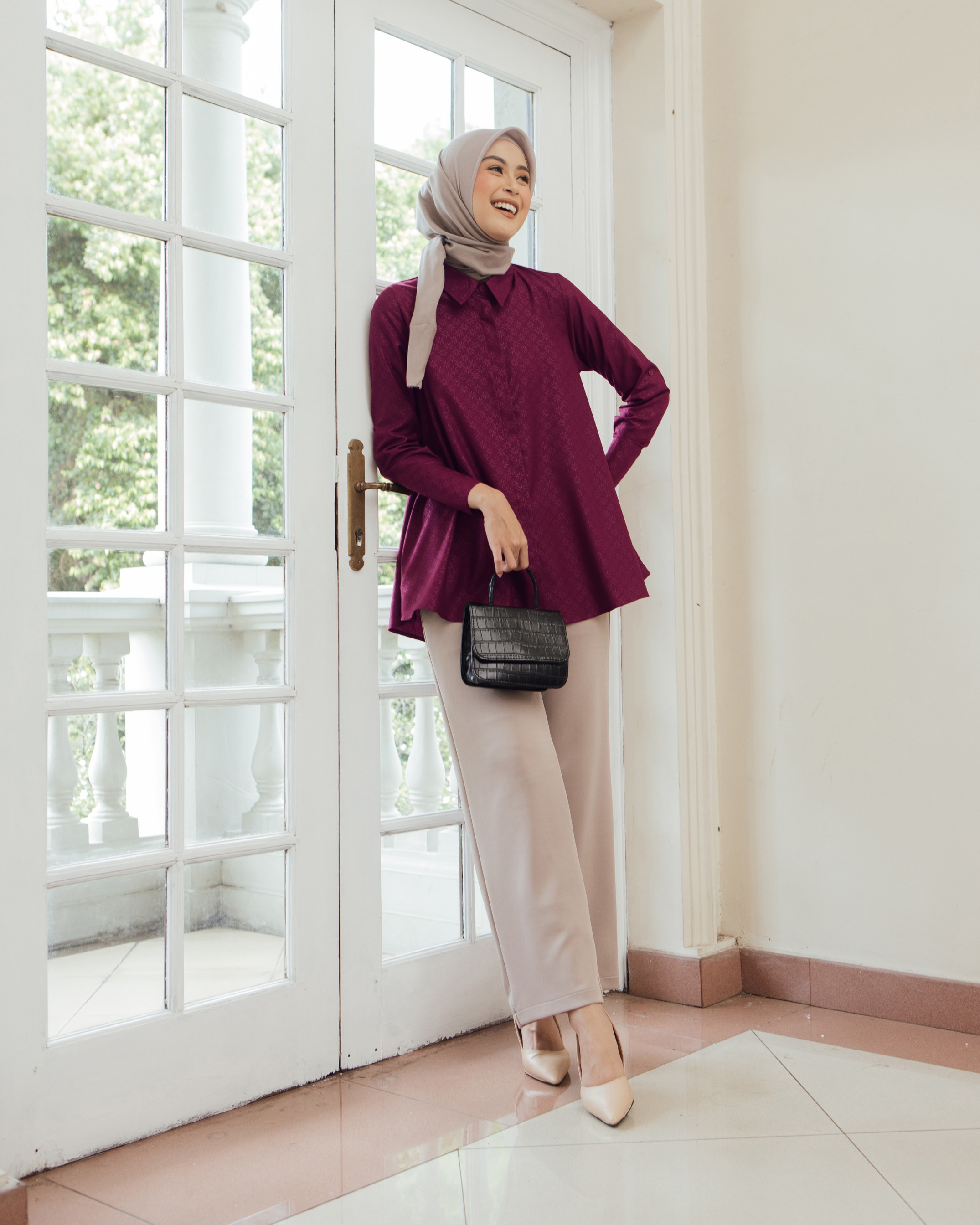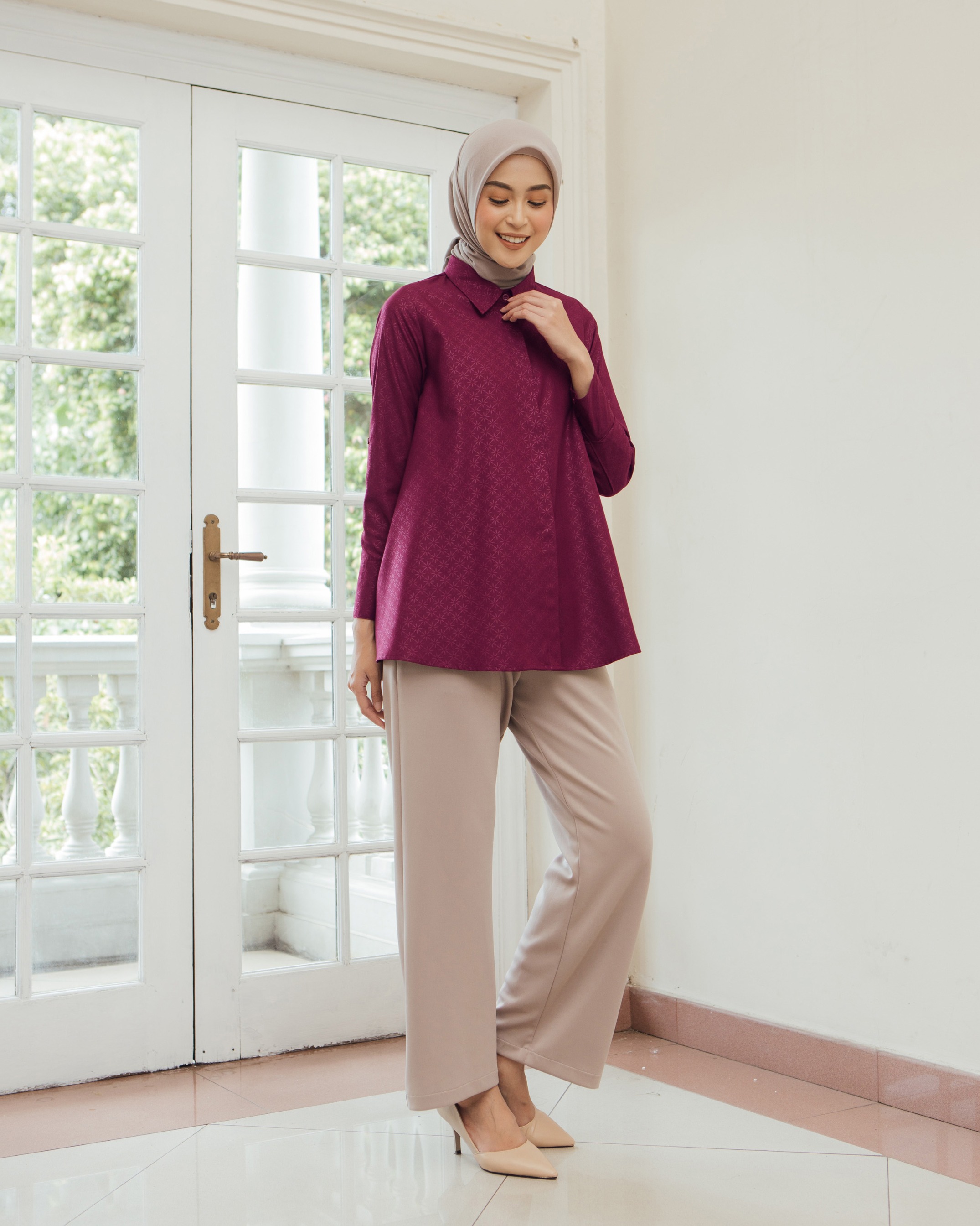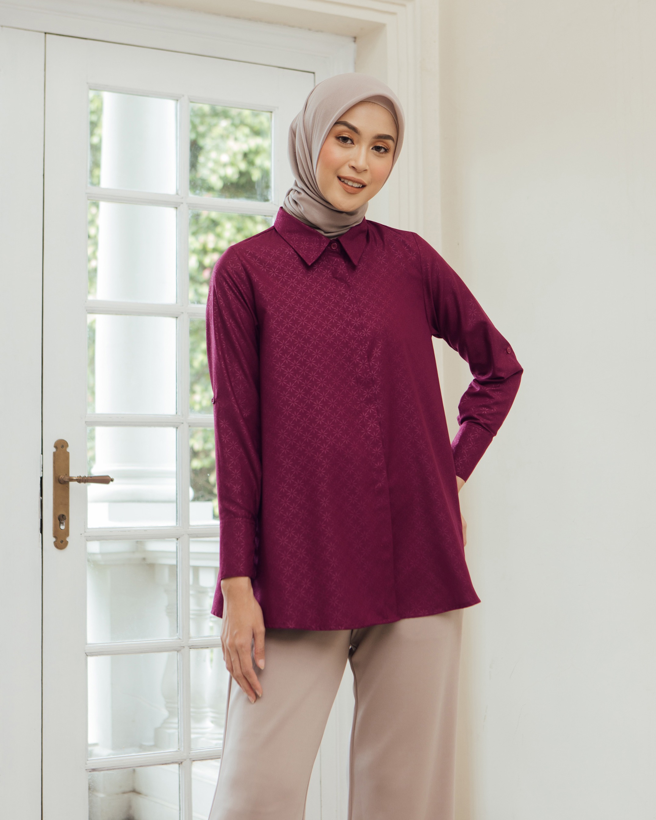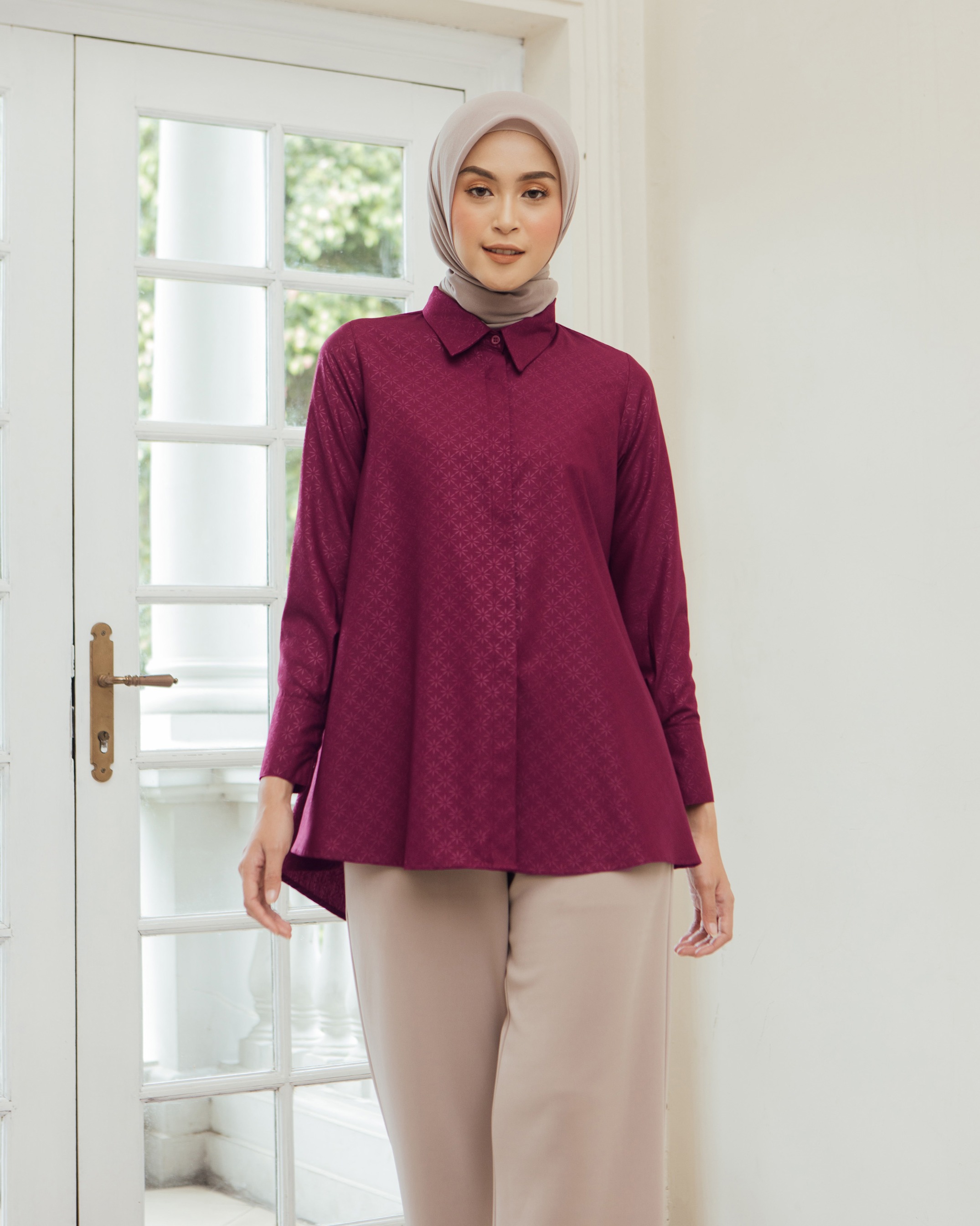 On model pakai size S • Material bahan Katun Geulis antikusut, di embossed doff dengan pattern yang sangat cantik. Walaupun cuttingan nya masih basic, tapi terlihat mewah dan manis ✔️ Kancing depan dan lengan full aktif ✔️ Ada saku kiri kanan ✔️ Geulis monogram gold plat Tersedia 4 pilihan warna dalam ukuran XS S M L XL XXL Dada : 92/96/100/106/112/122 Kerung lengan : 47/49/51/53/56/61 Panjang lengan: 57-58 cm Panjang baju depan-belakang : 73.5 - 83c