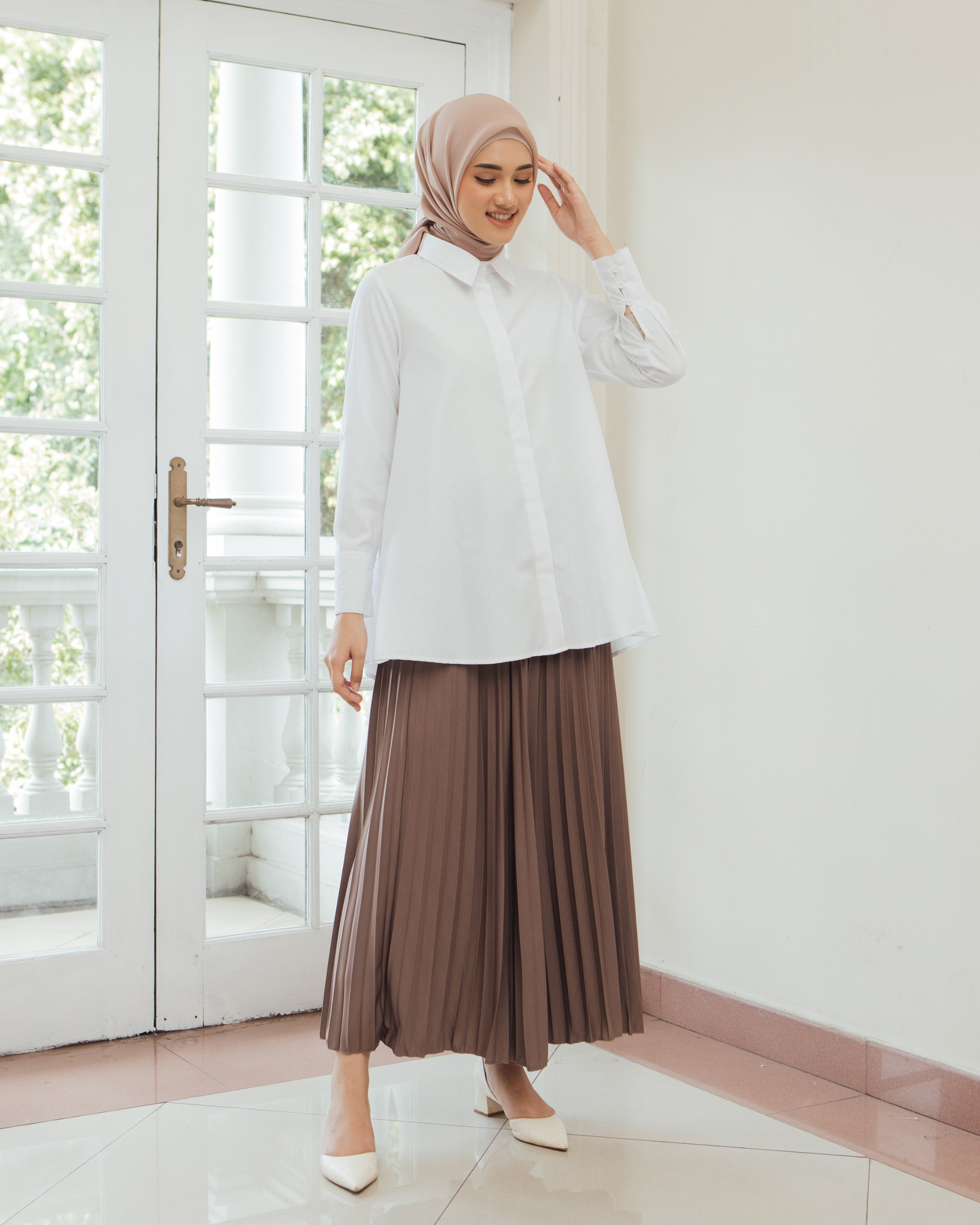 On model pakai size S • Material bahan Katun Geulis antikusut, di embossed doff dengan pattern yang sangat cantik. Walaupun cuttingan nya masih basic, tapi terlihat mewah dan manis ✔️ Kancing depan dan lengan full aktif ✔️ Ada saku kiri kanan ✔️ Geulis monogram gold plat Tersedia 4 pilihan warna dalam ukuran XS S M L XL XXL Dada : 92/96/100/106/112/122 Kerung lengan : 47/49/51/53/56/61 Panjang lengan: 57-58 cm Panjang baju depan-belakang : 73.5 - 83c