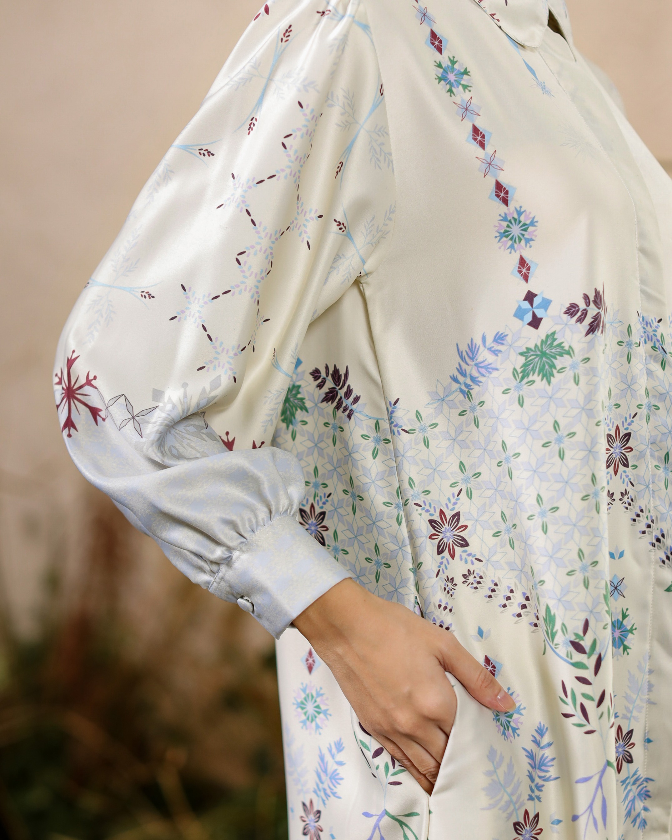 Exclusive printing di kain silk, Flowy, mewah dan nyaman dikenakan.