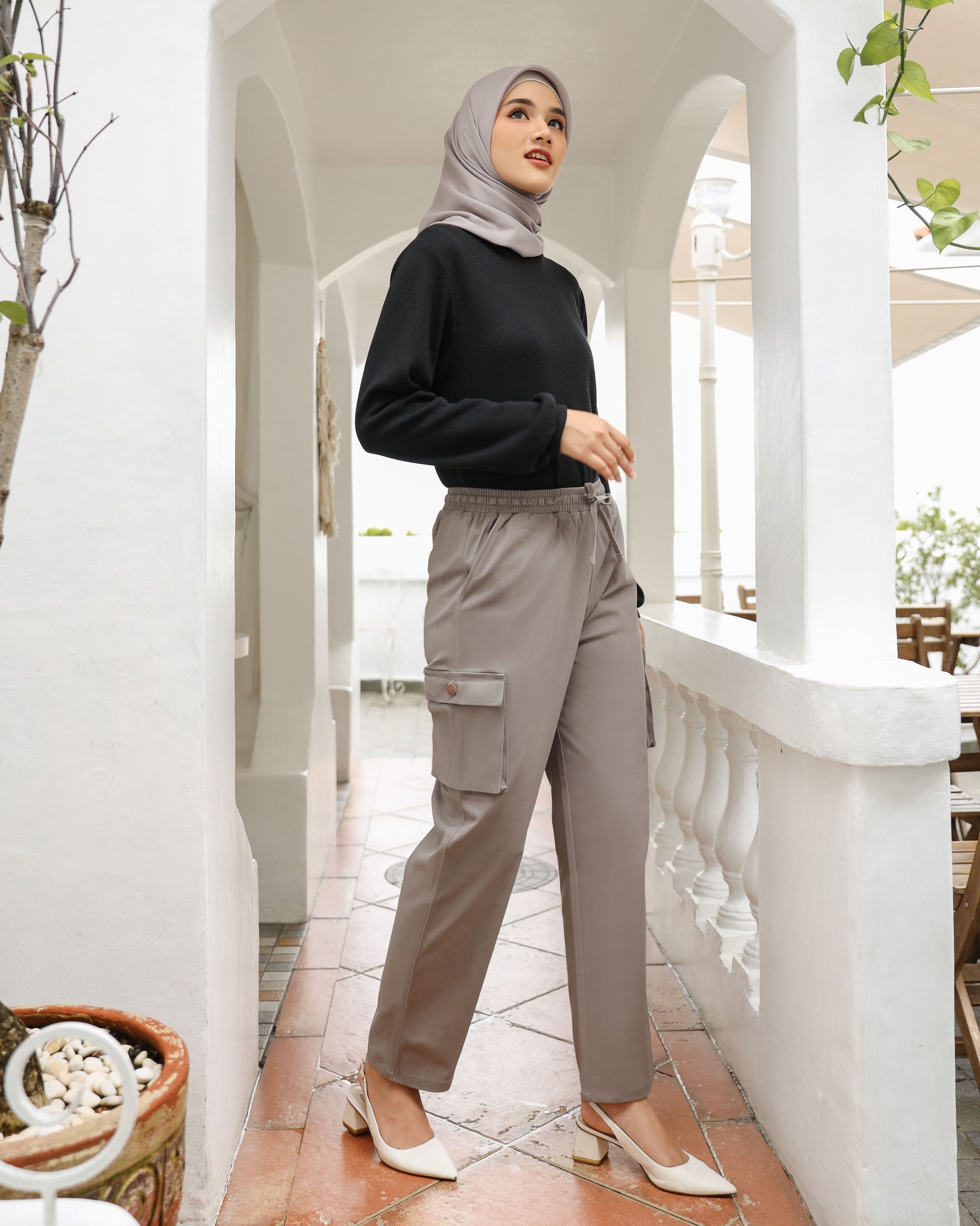 Bahan Chinos twill. Tenal, tidak nerawang dan nyaman tidak bikin begah. Celana bergaya boyish dengan warna earth tone.
