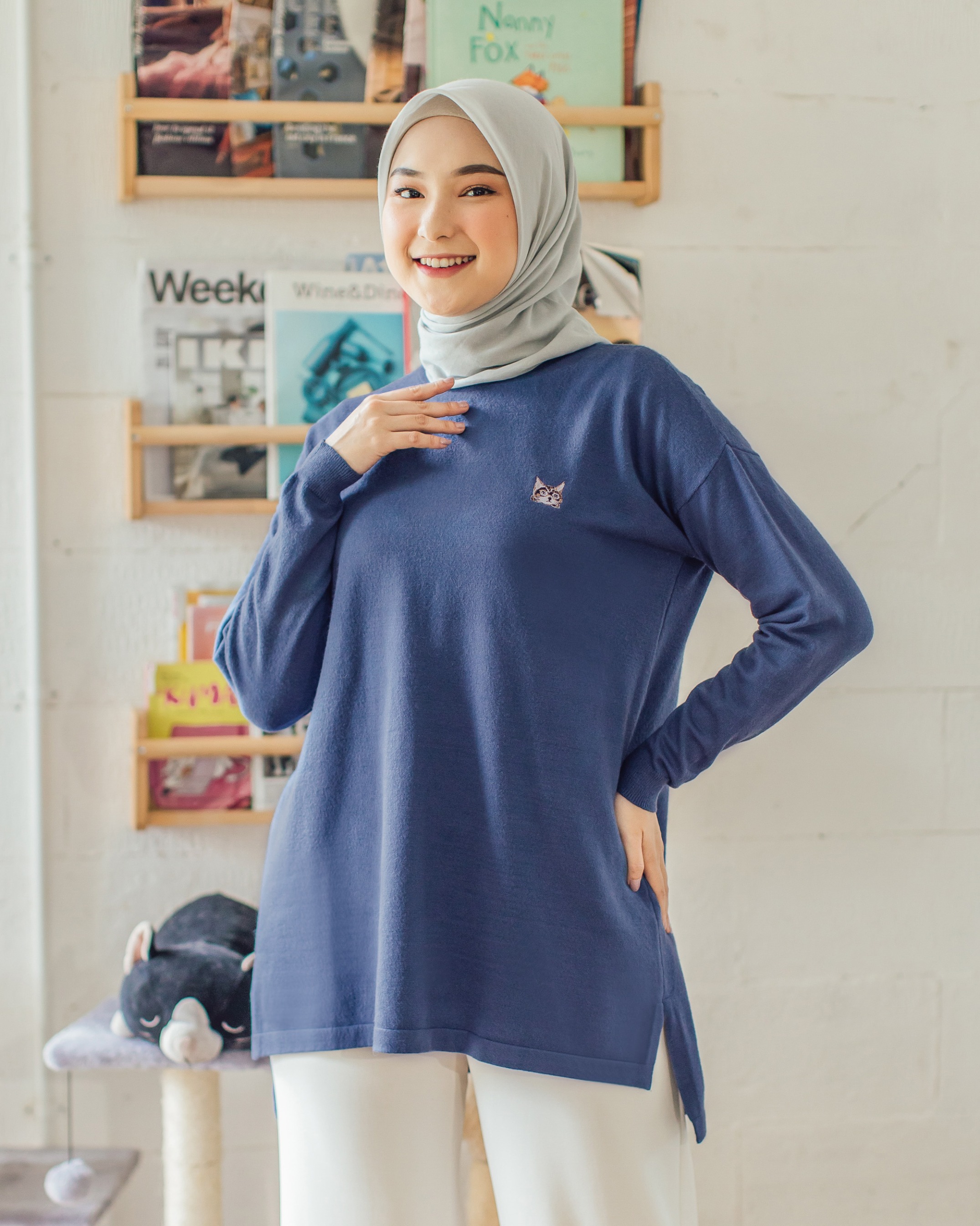 CING-CING KNIT TOP - DENIM