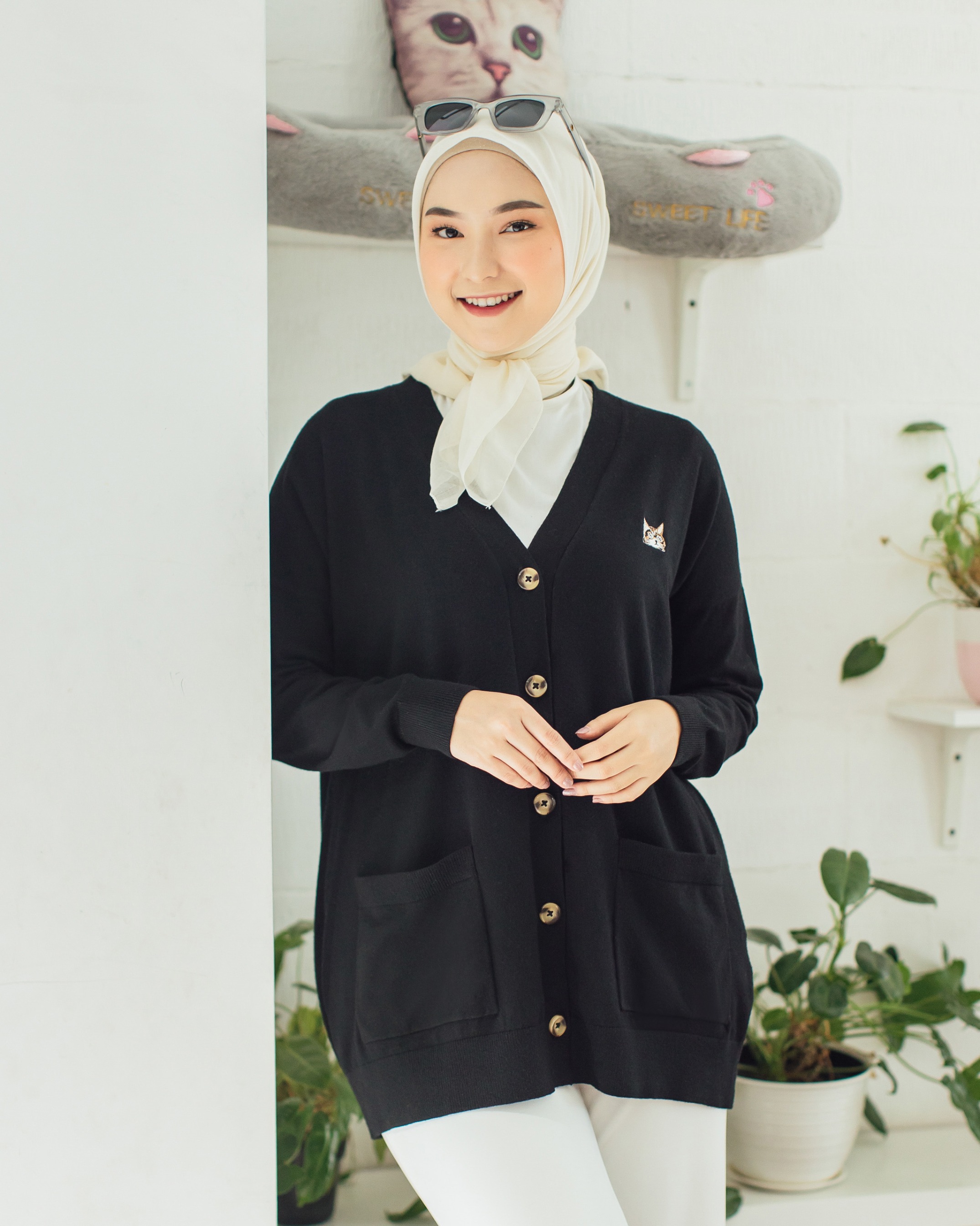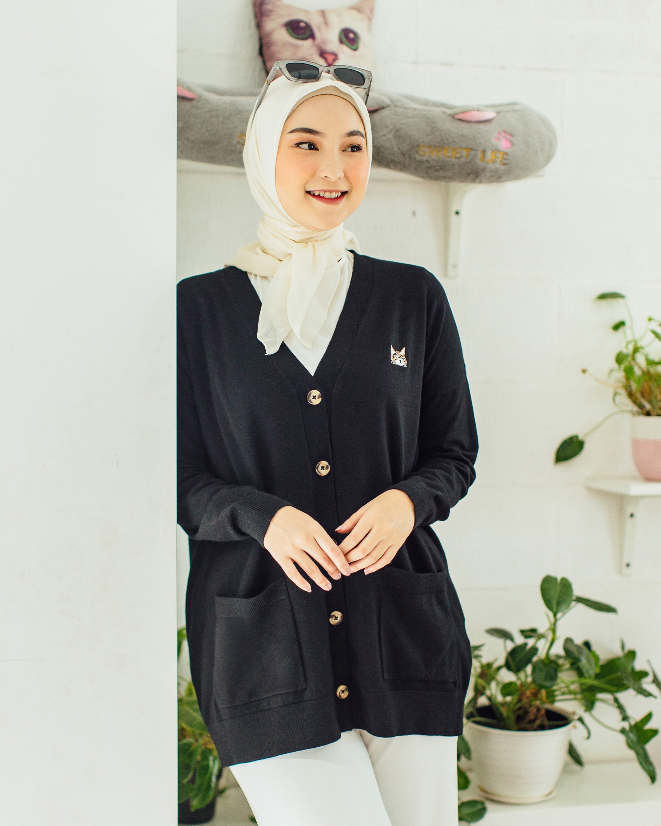 Bahan knitting Viscose Sangat lembut, halus dan adem. Tidak transparan dan ringan. Dengan detail icon Signature Cing-Cing. Embroidery pada bagian dada. Cardigan yang nyaman untuk daily street style.
