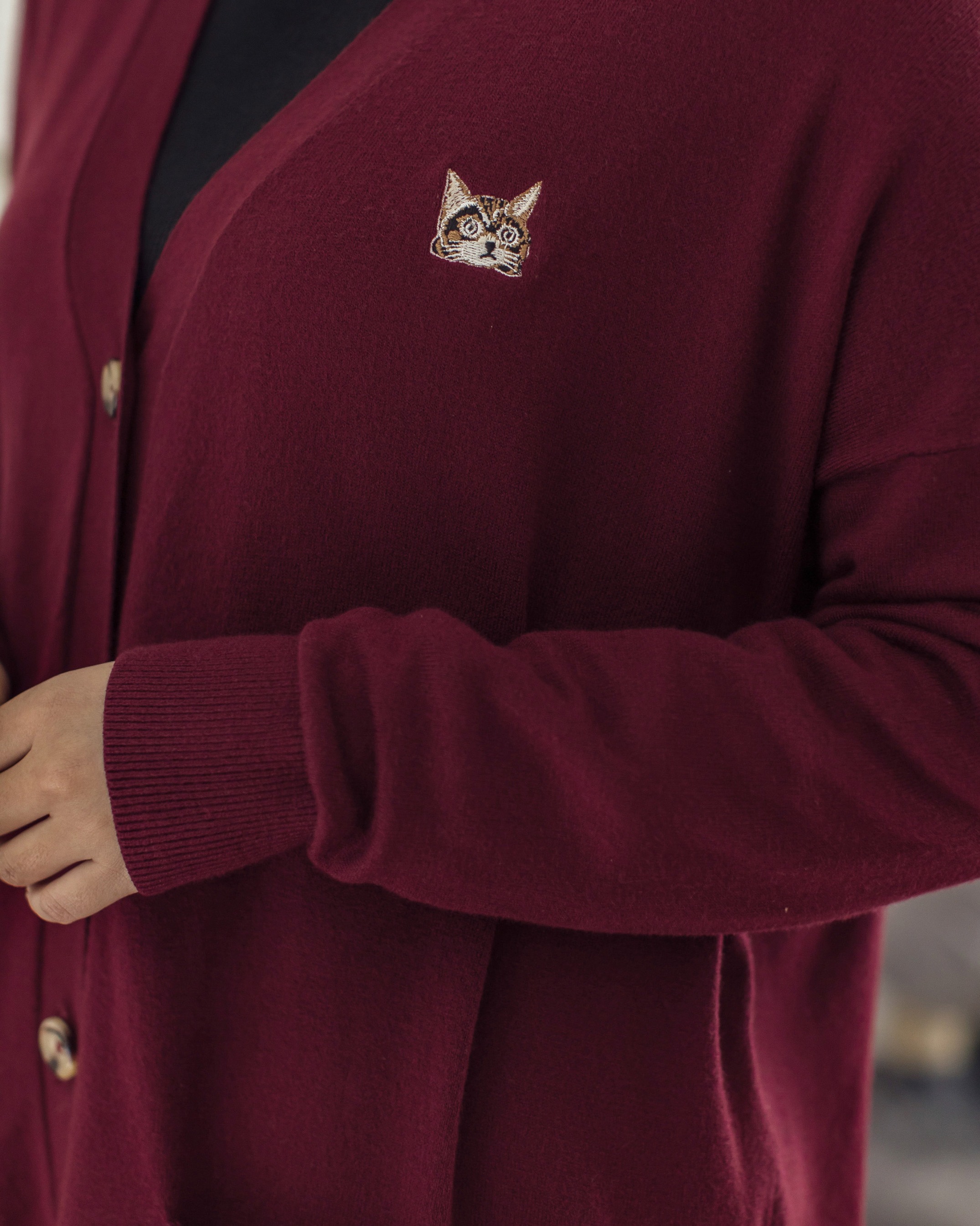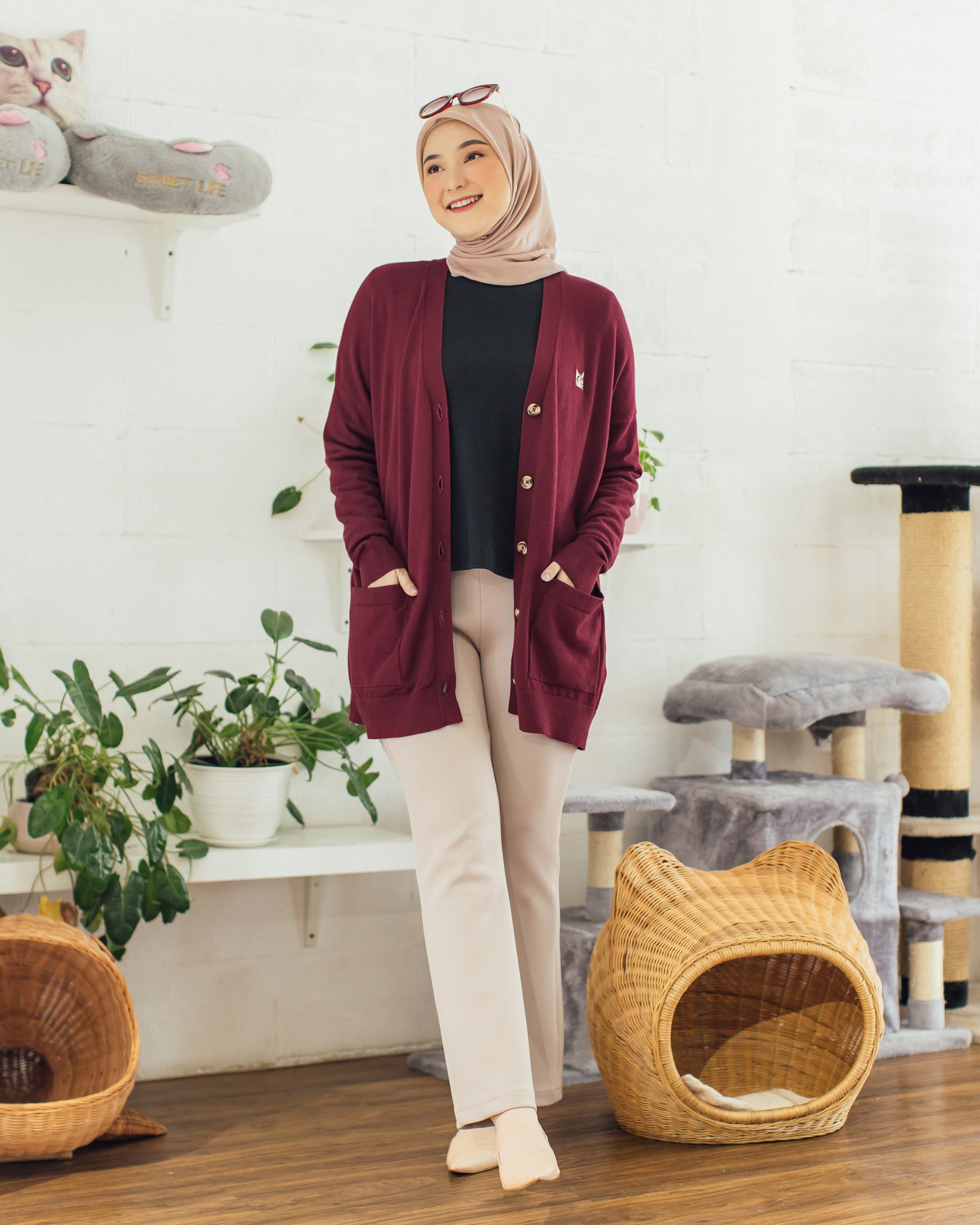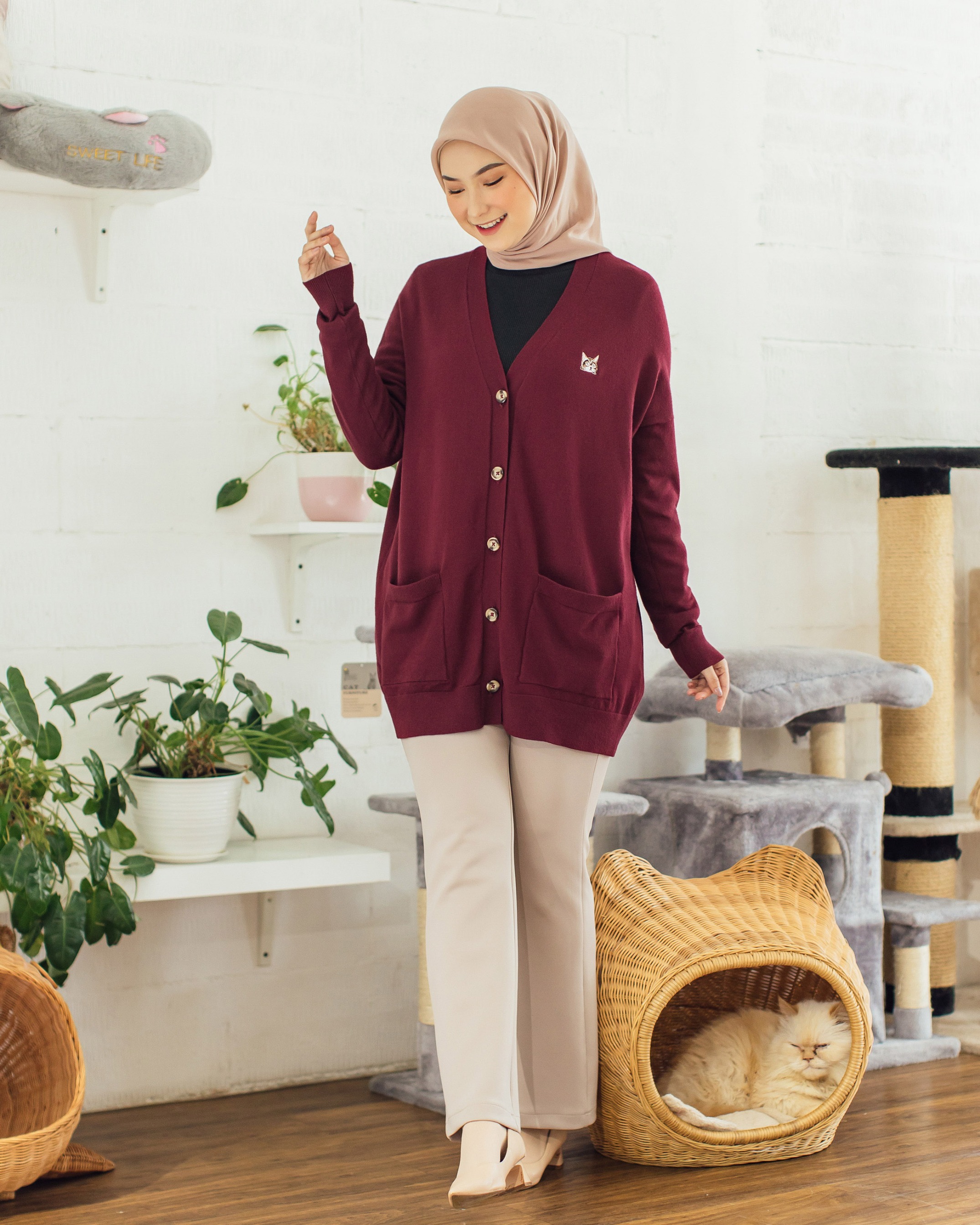 Bahan knitting Viscose Sangat lembut, halus dan adem. Tidak transparan dan ringan. Dengan detail icon Signature Cing-Cing. Embroidery pada bagian dada. Cardigan yang nyaman untuk daily street style.