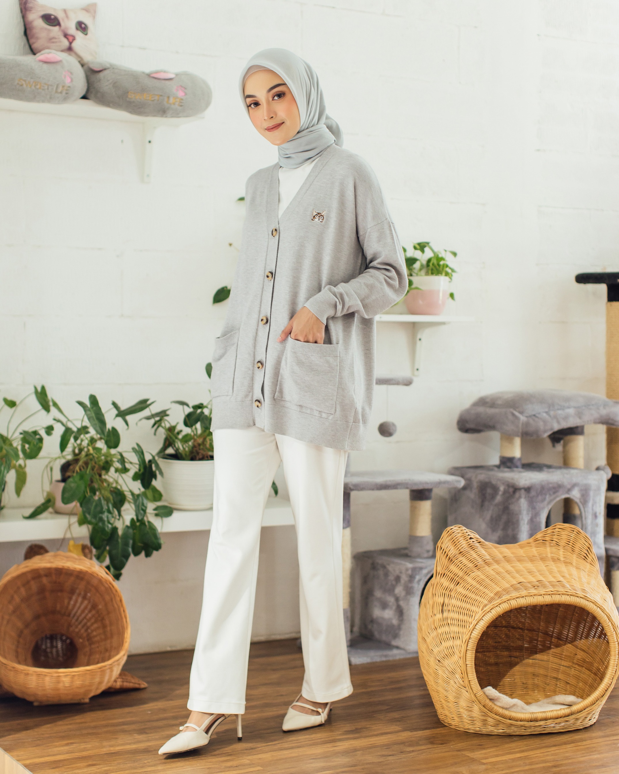 Bahan knitting Viscose Sangat lembut, halus dan adem. Tidak transparan dan ringan. Dengan detail icon Signature Cing-Cing. Embroidery pada bagian dada. Cardigan yang nyaman untuk daily street style.