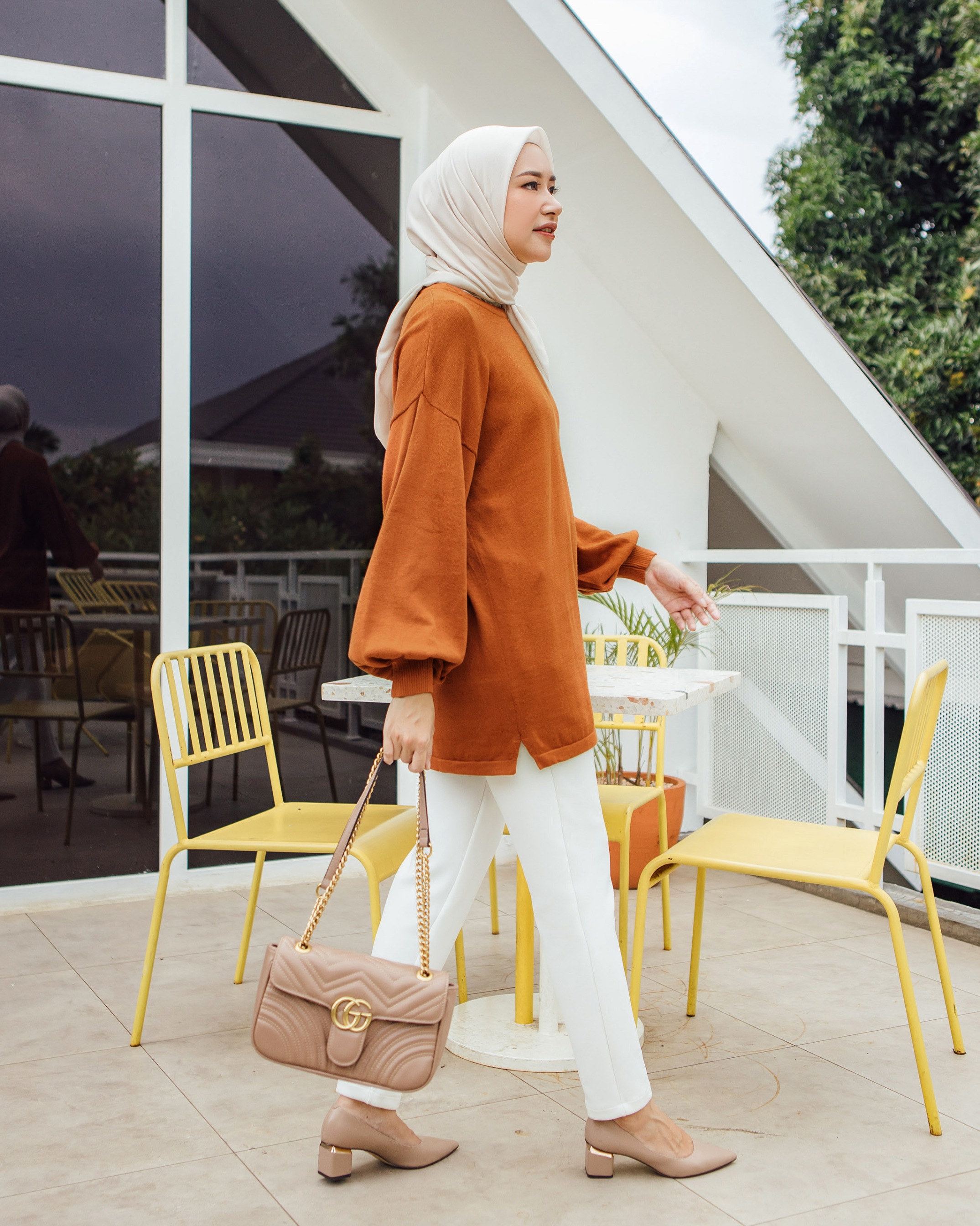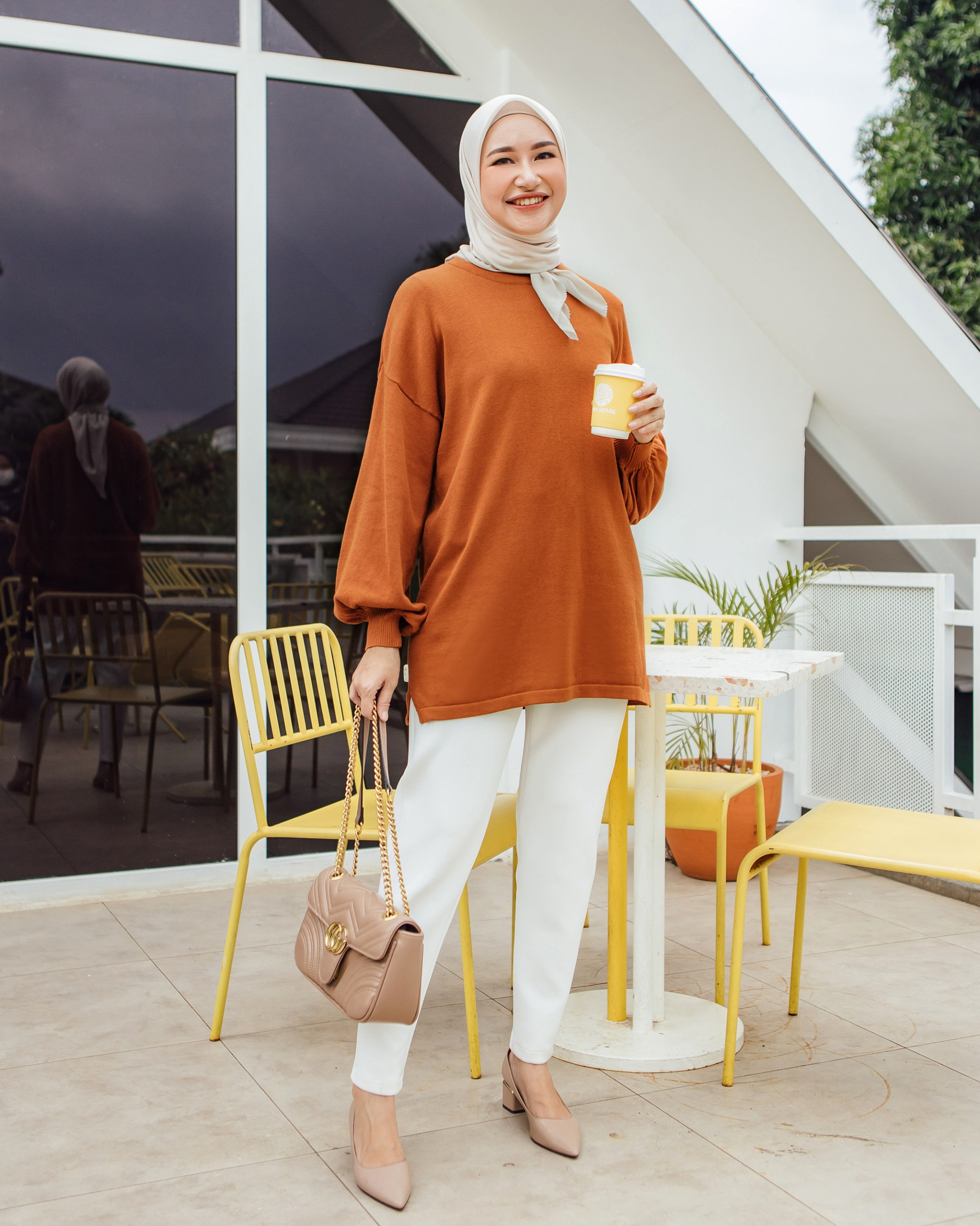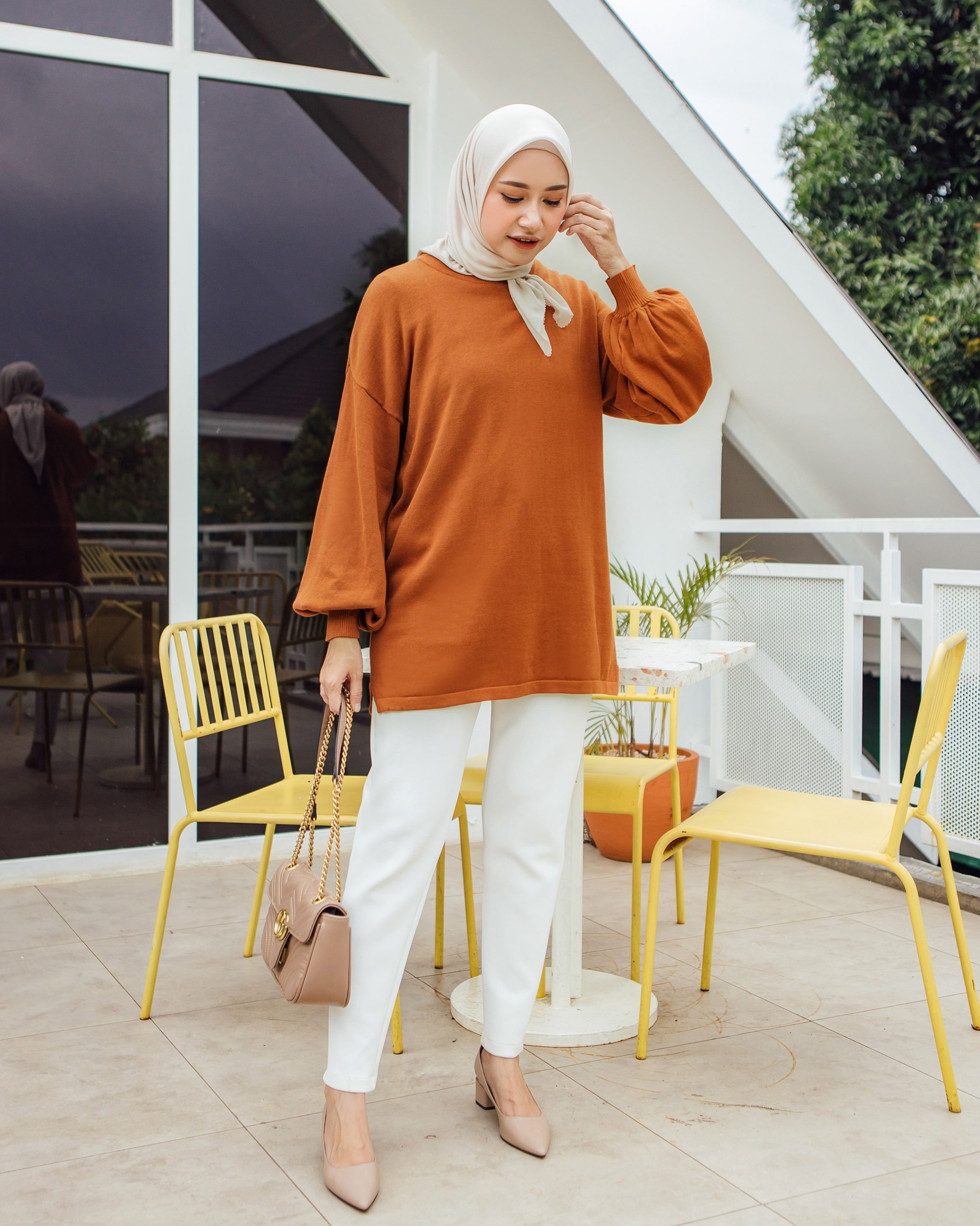 Bahan knitting cotton 100%. Rajut nya sangat nyaman di kulit. cukup tebal dan tidak menjiplak. Seluruh sisi strech, dan dipermanis dengan cuttingan lengan baloon.