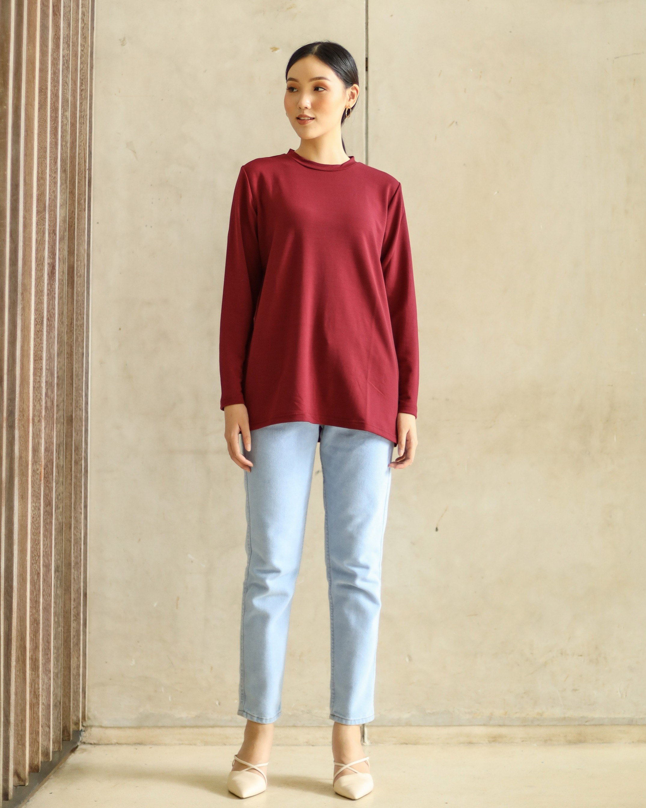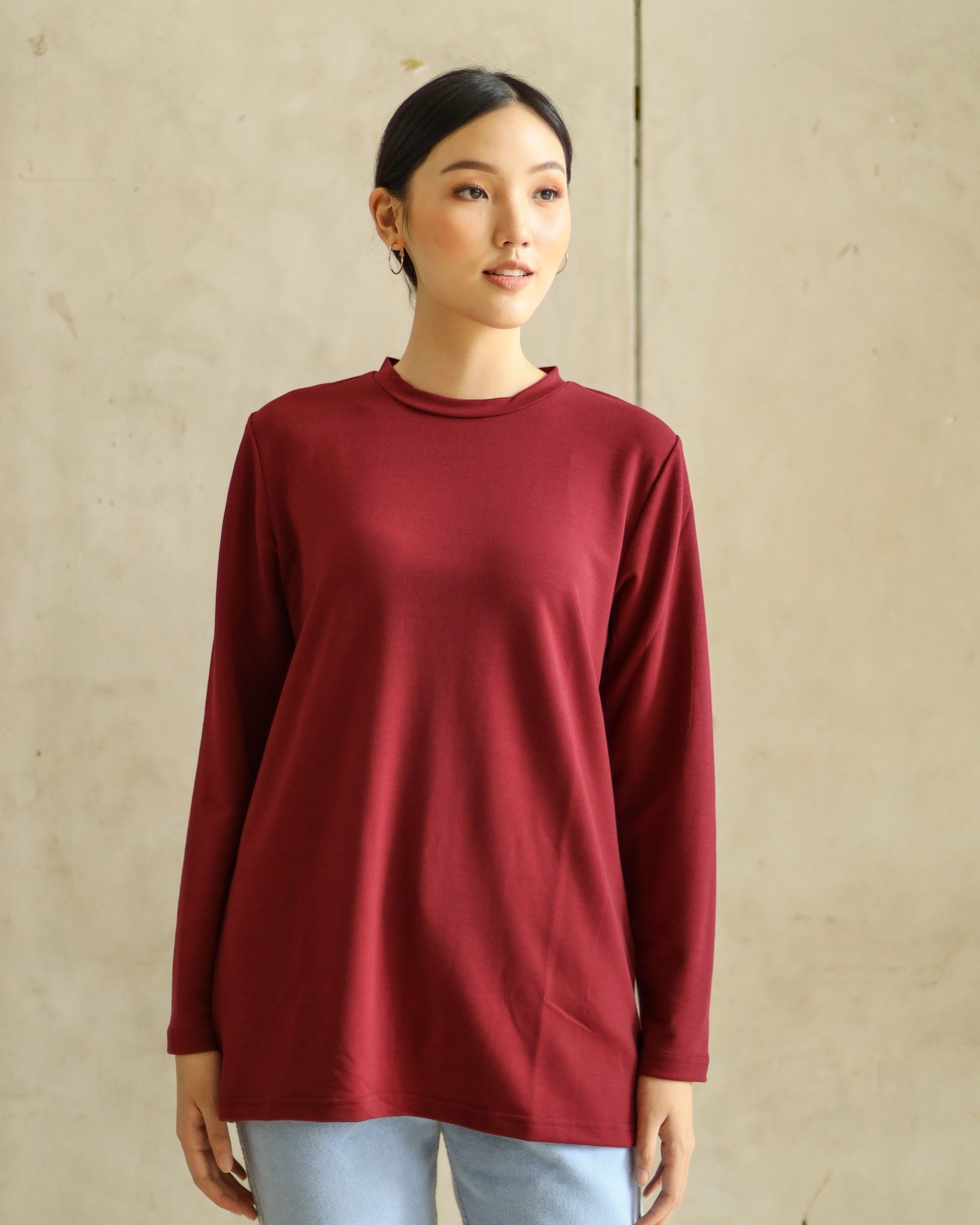 BASIC LONG SLEEVE TEE - MAROON