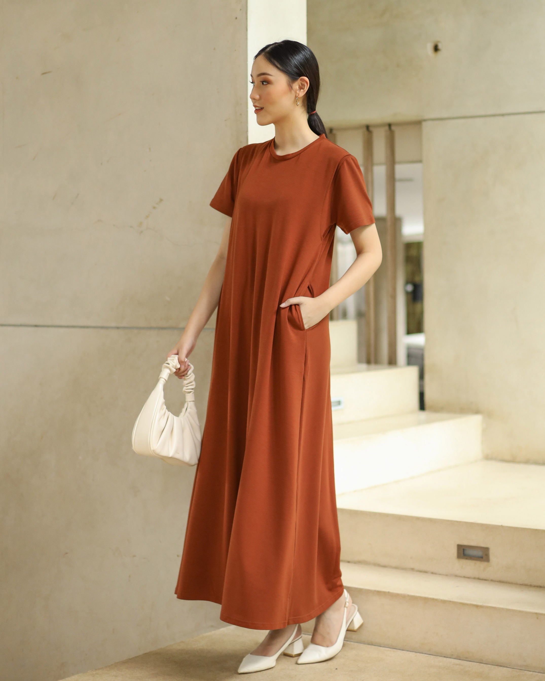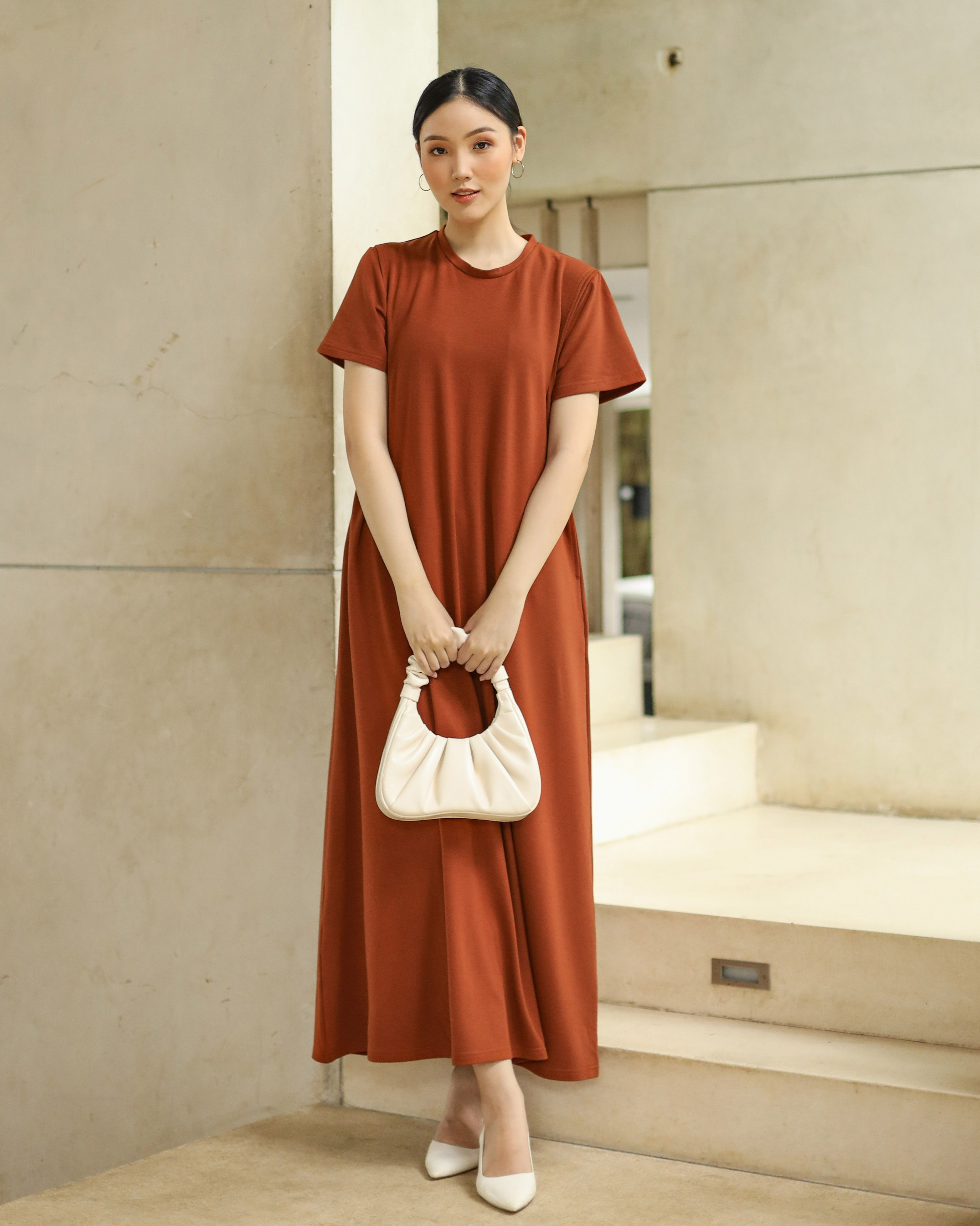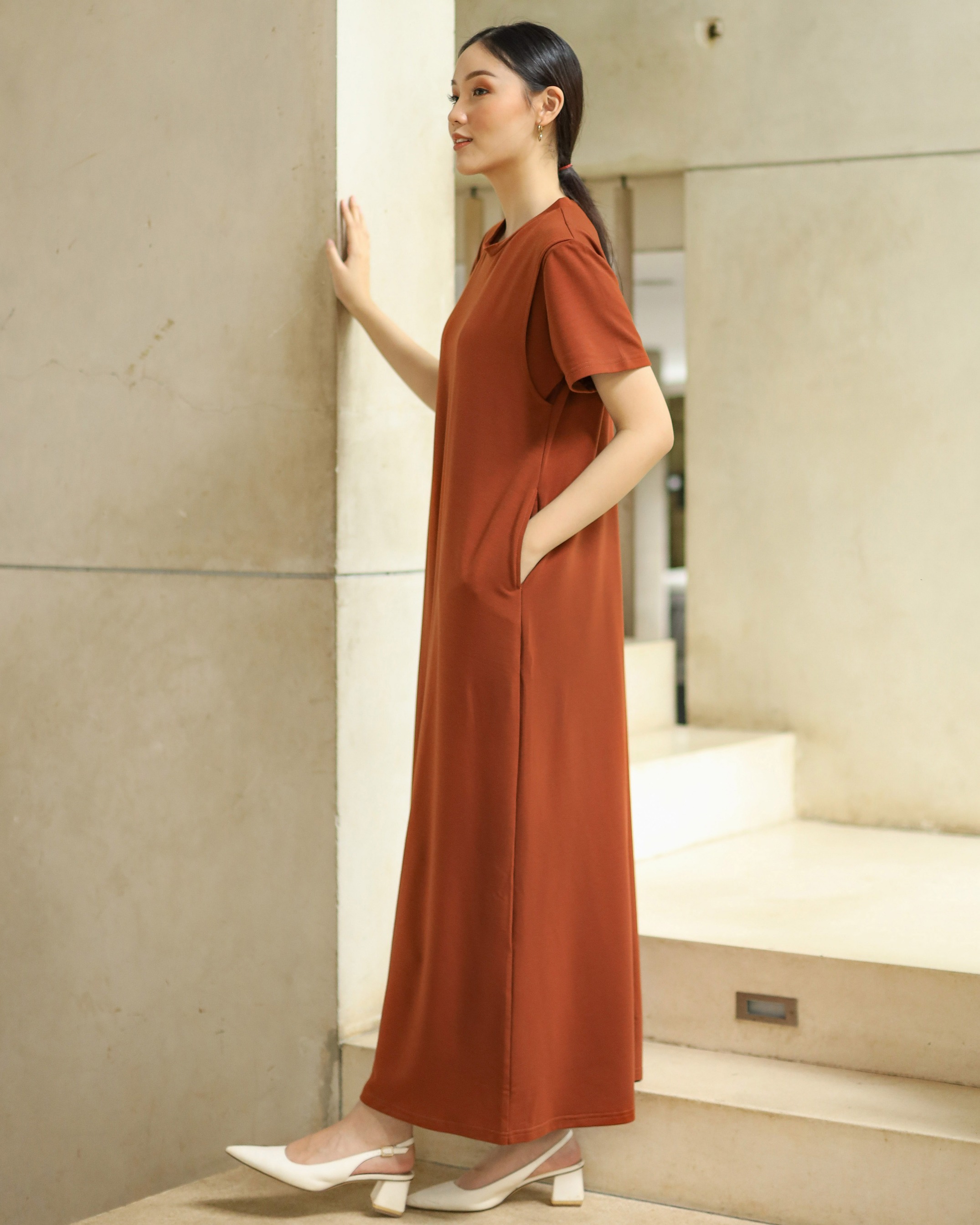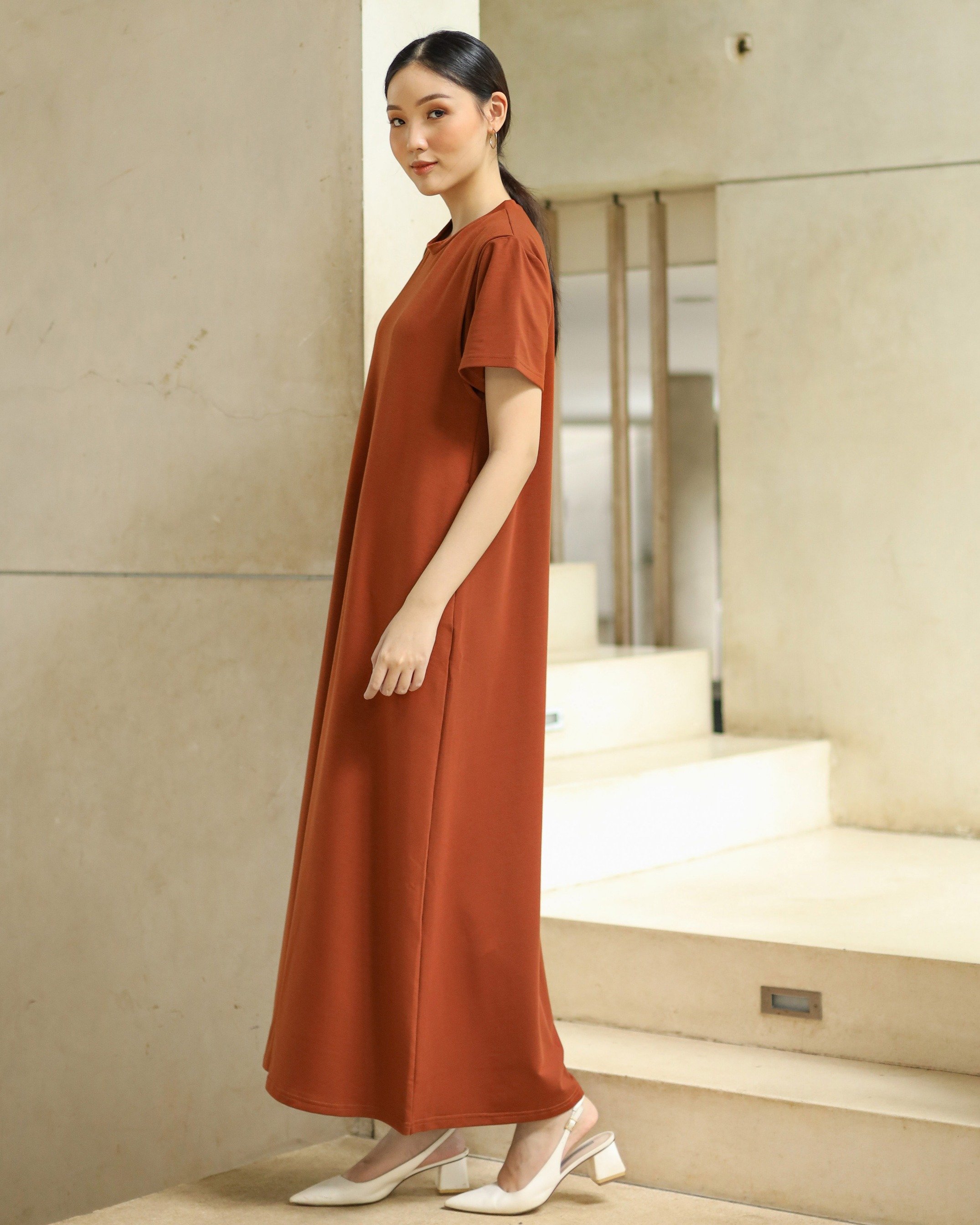 BUSUI BASIC SHORT SLEEVE DRESS BUSUI - BRICK