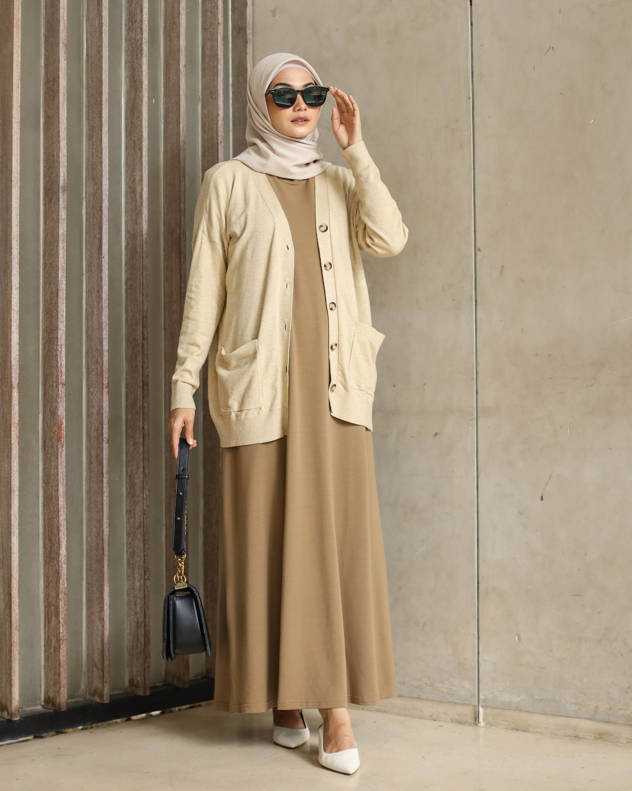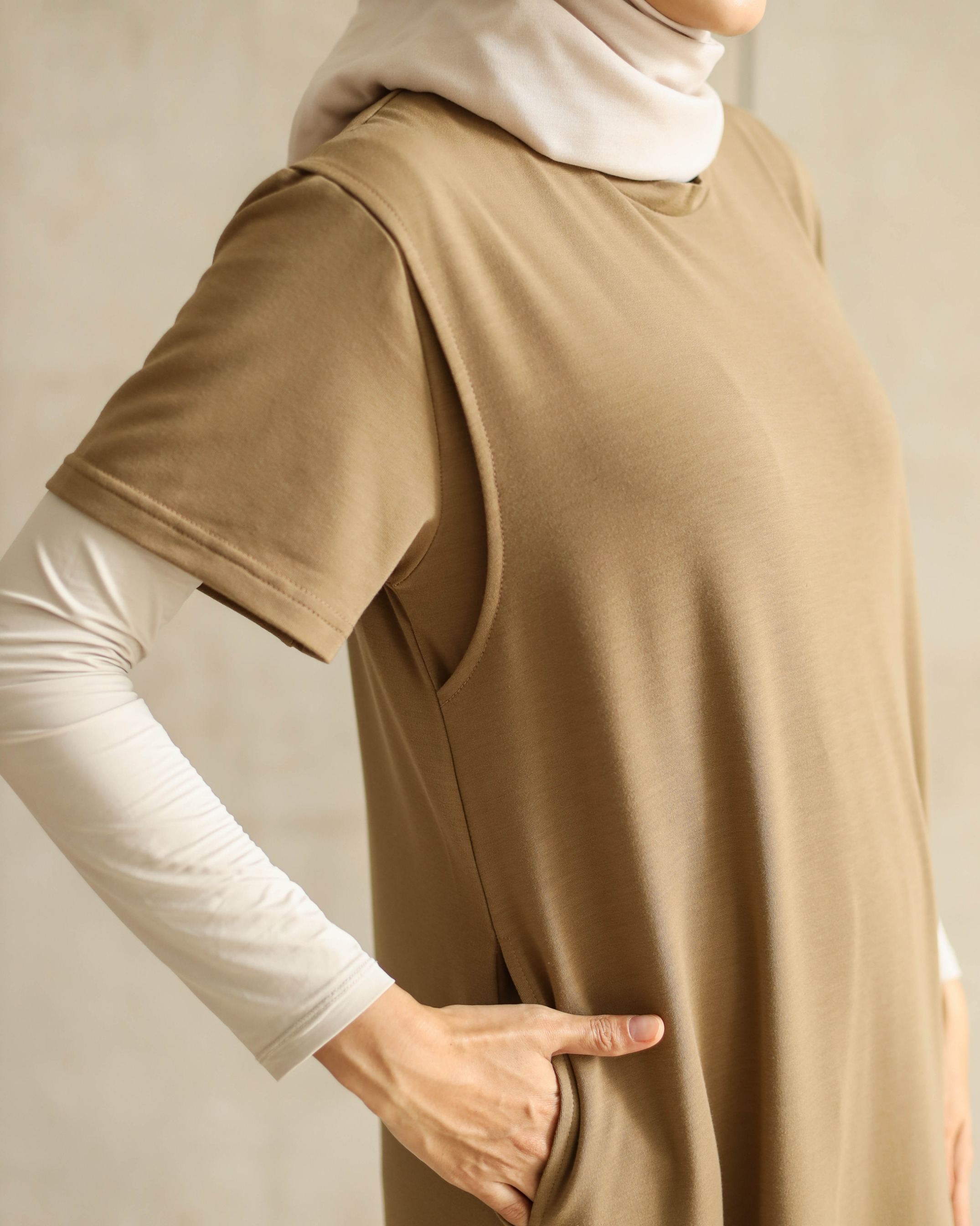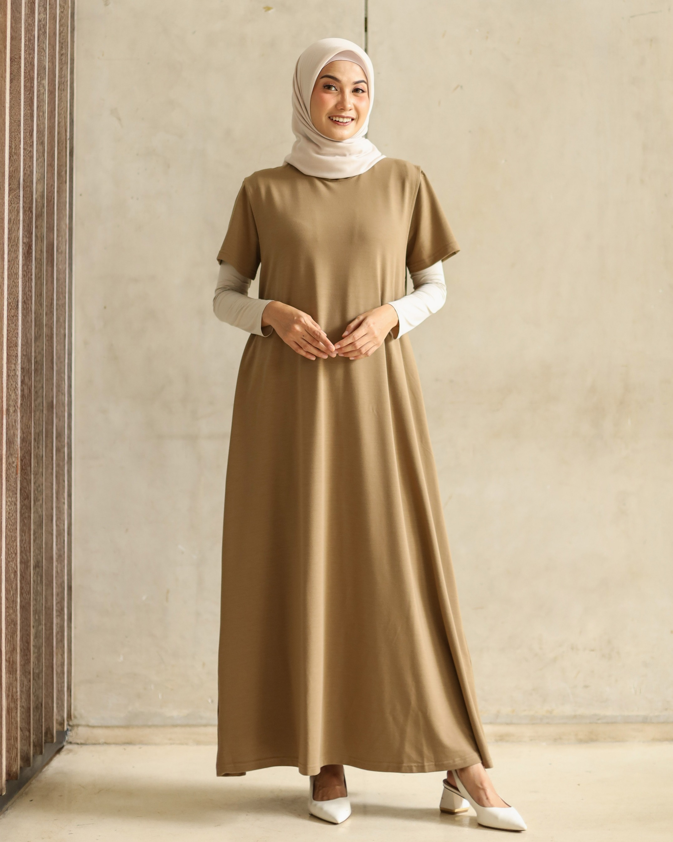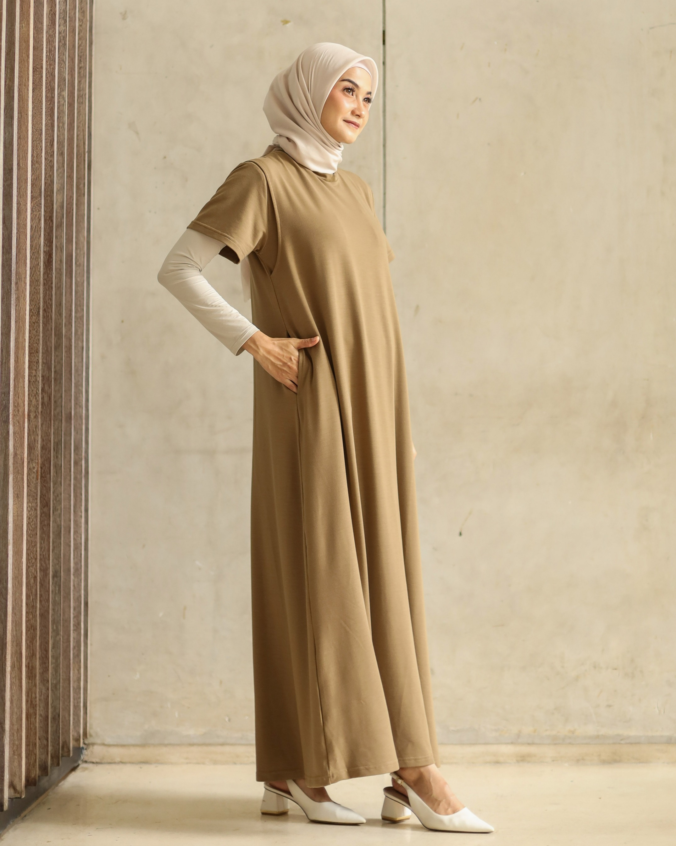 BUSUI BASIC SHORT SLEEVE DRESS BUSUI - BROWN