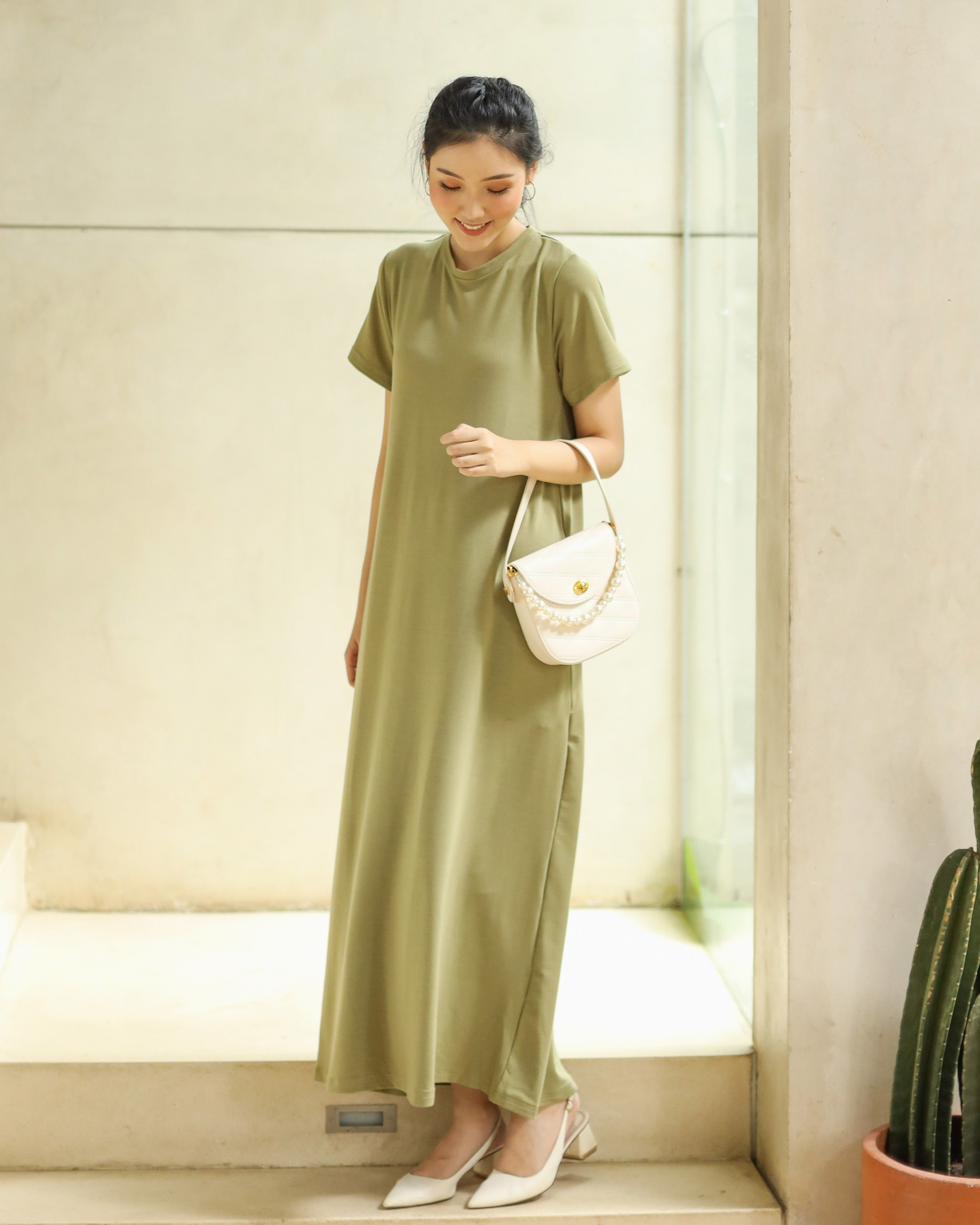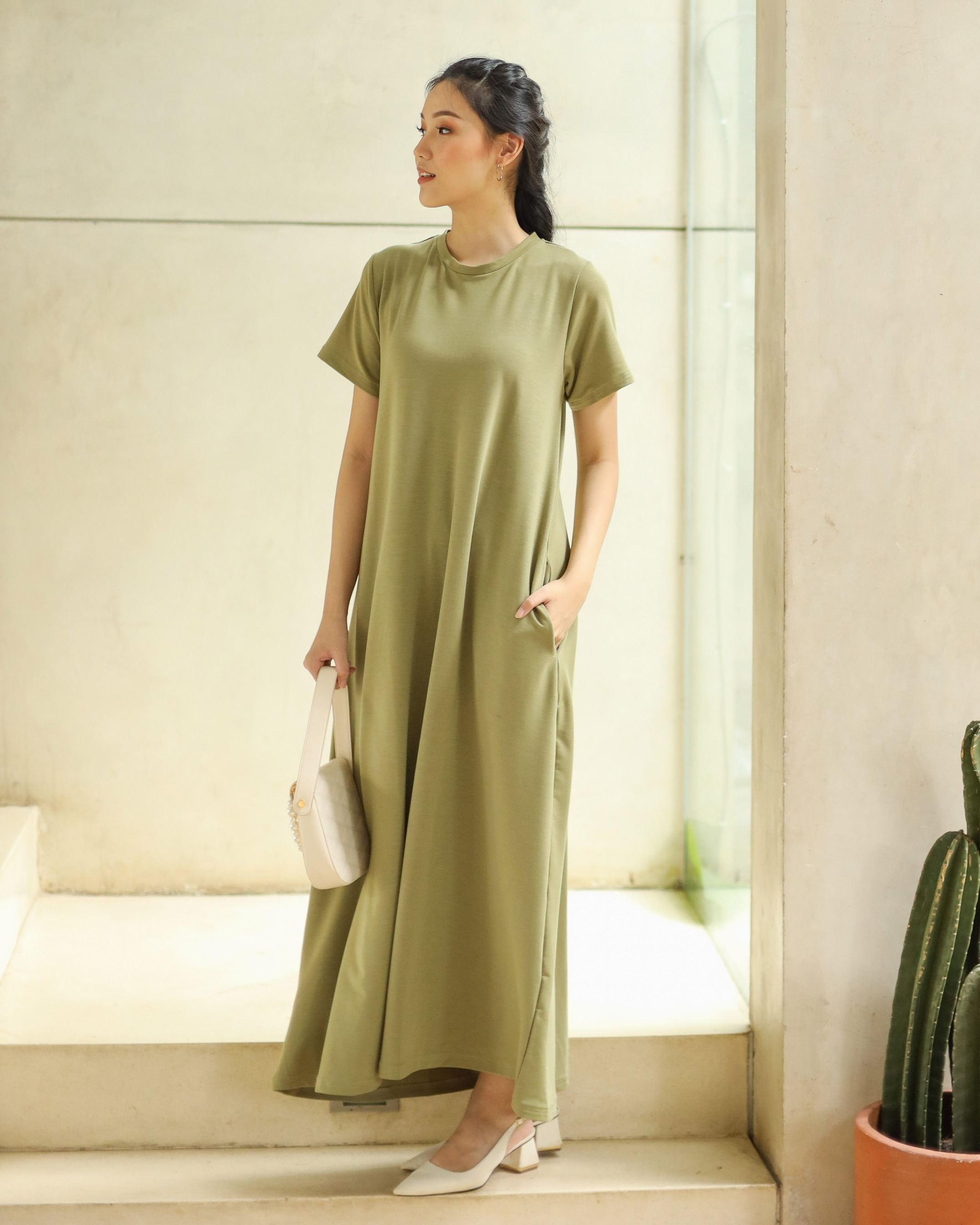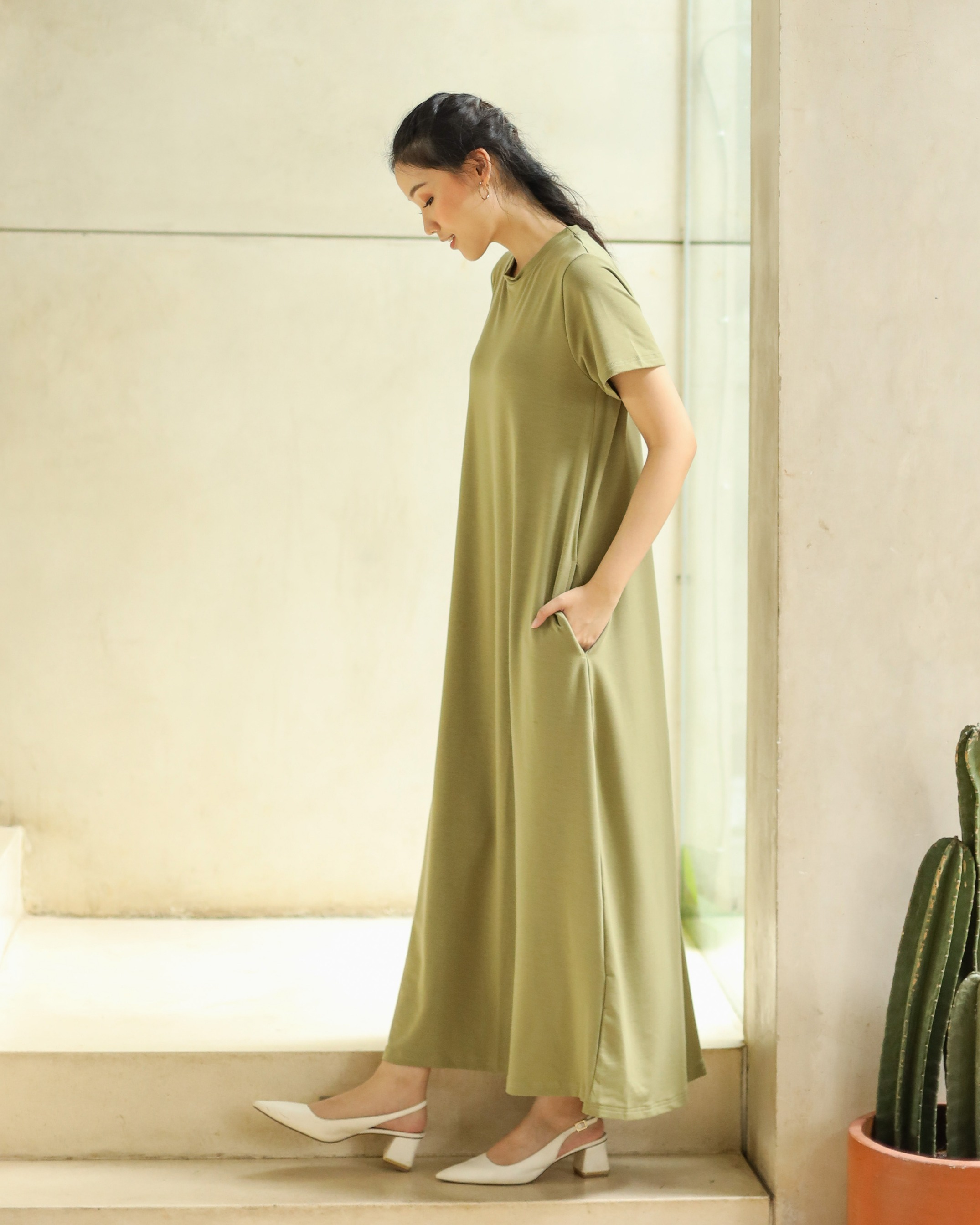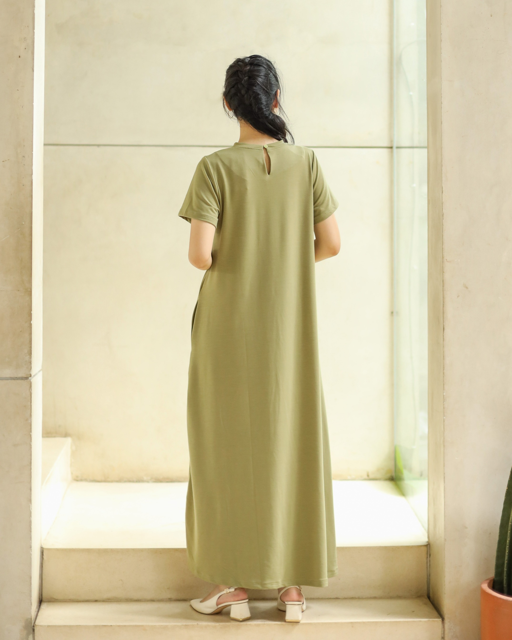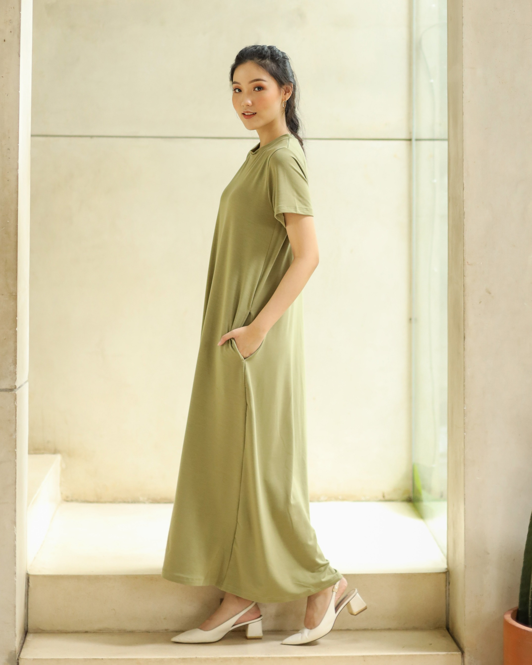 BASIC SHORT SLEEVE DRESS - GREENTEA