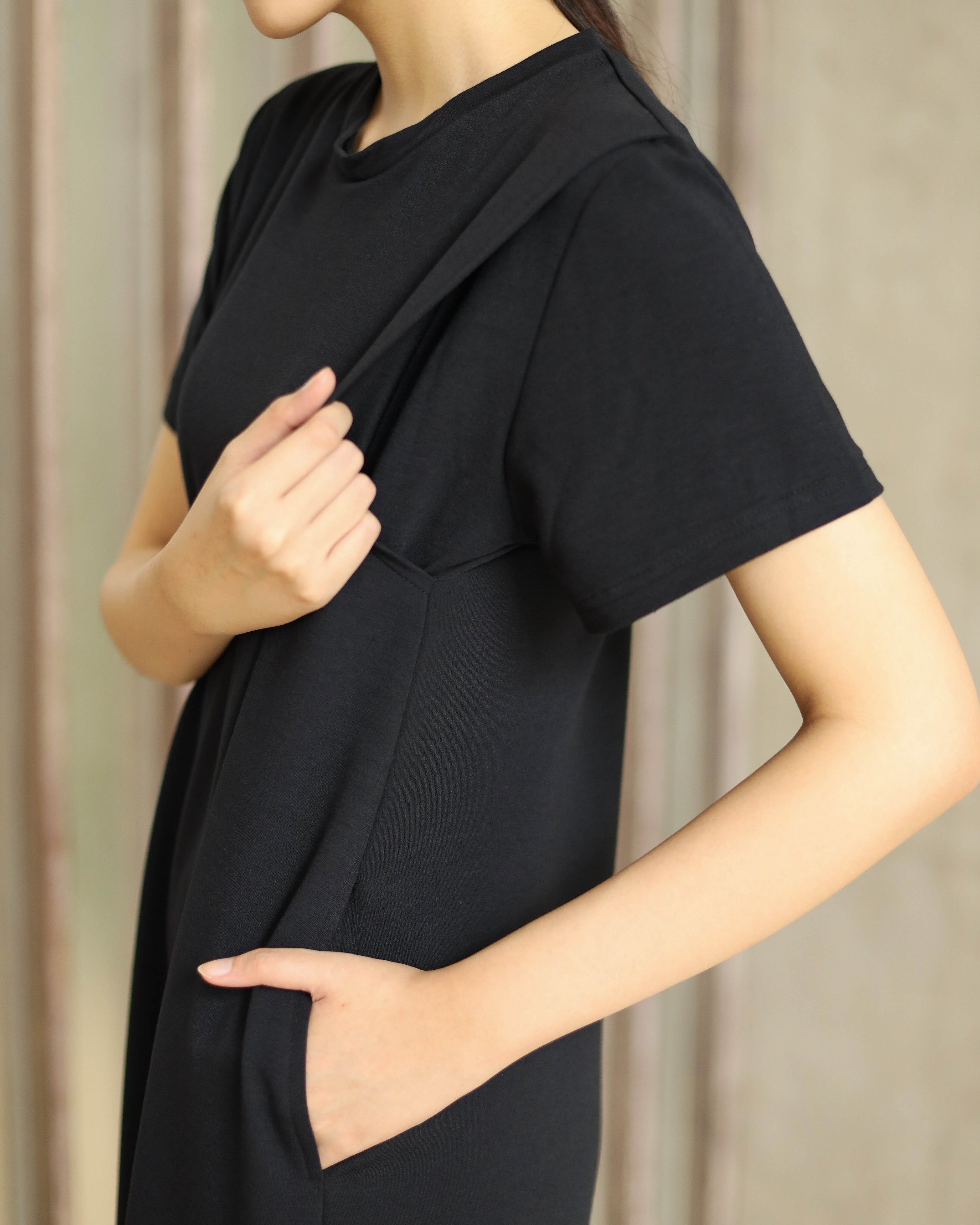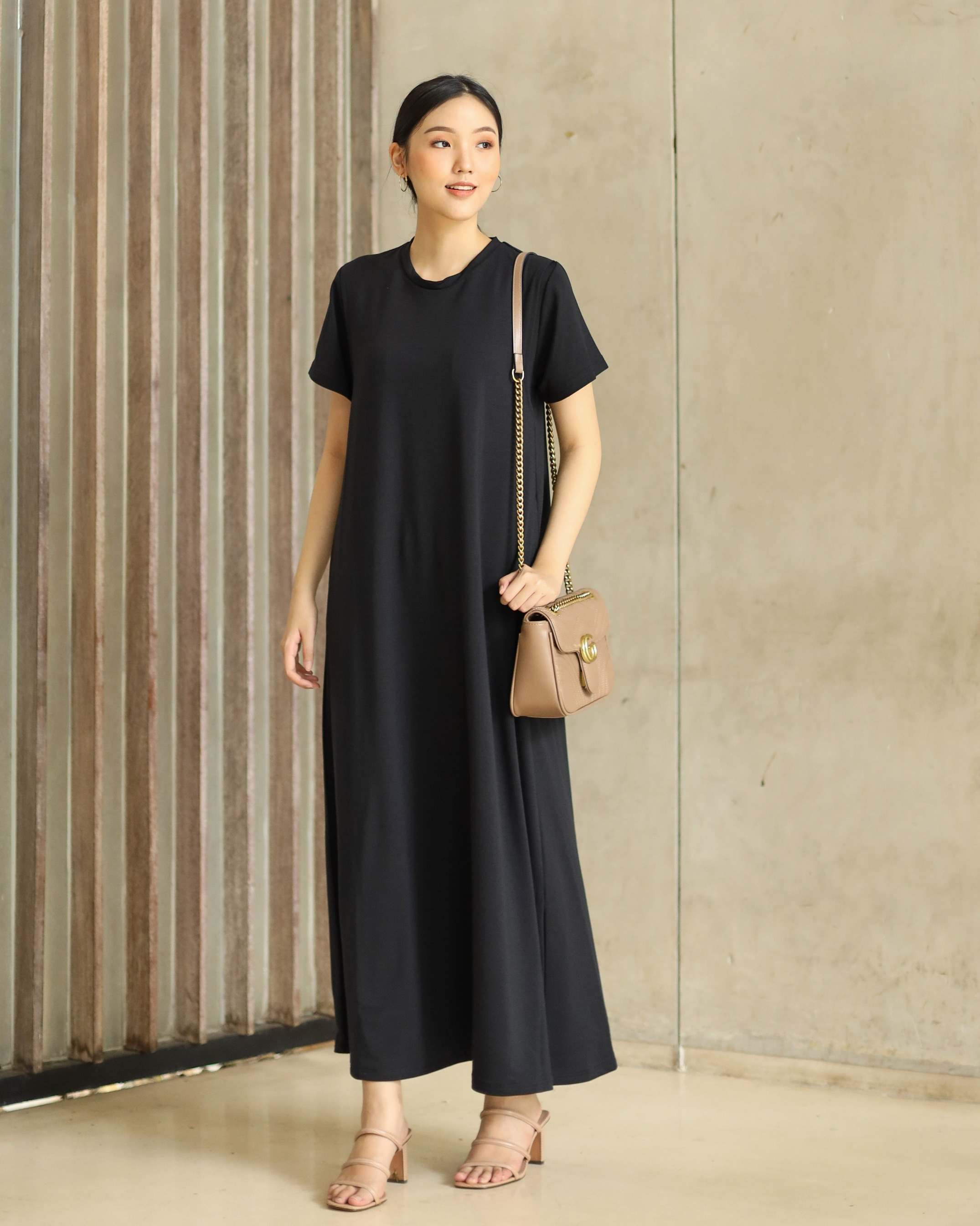 BUSUI BASIC SHORT SLEEVE DRESS BUSUI - BLACK