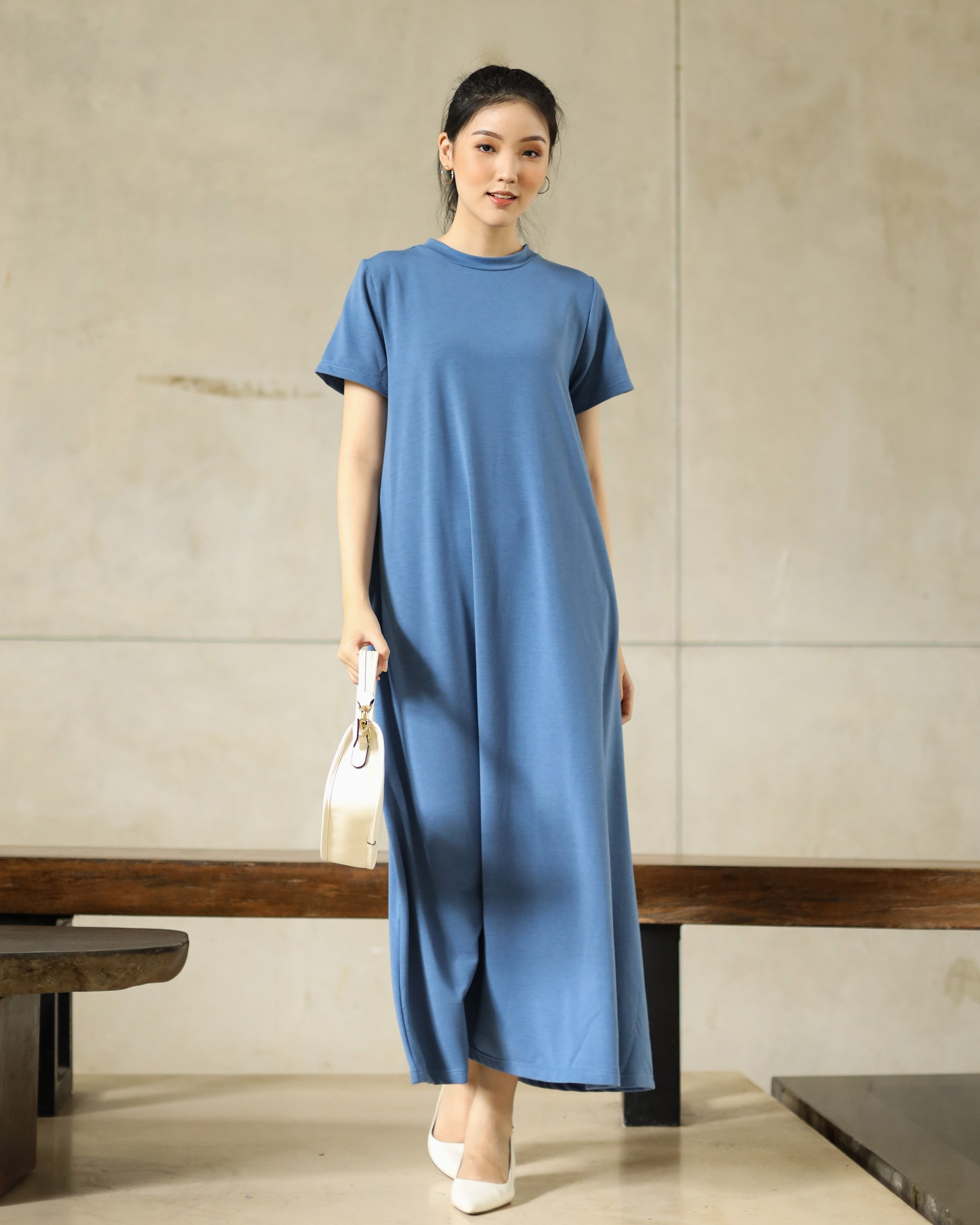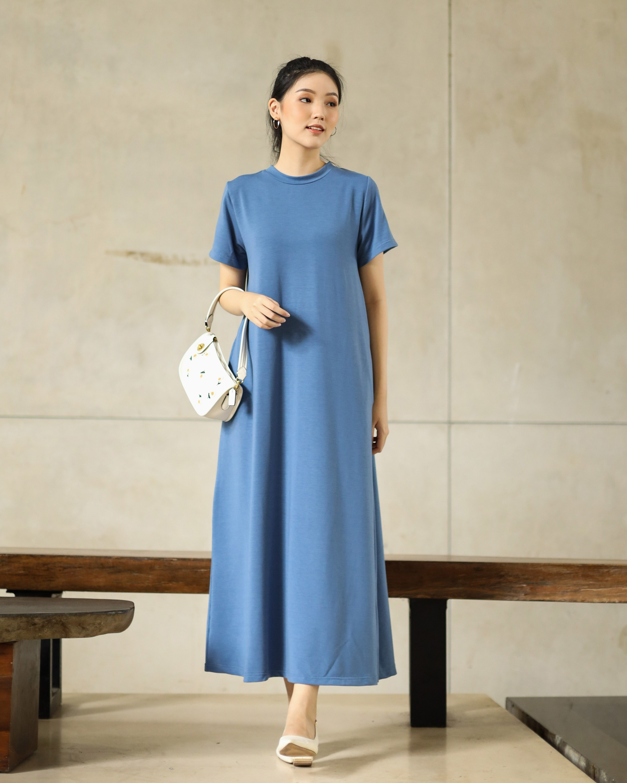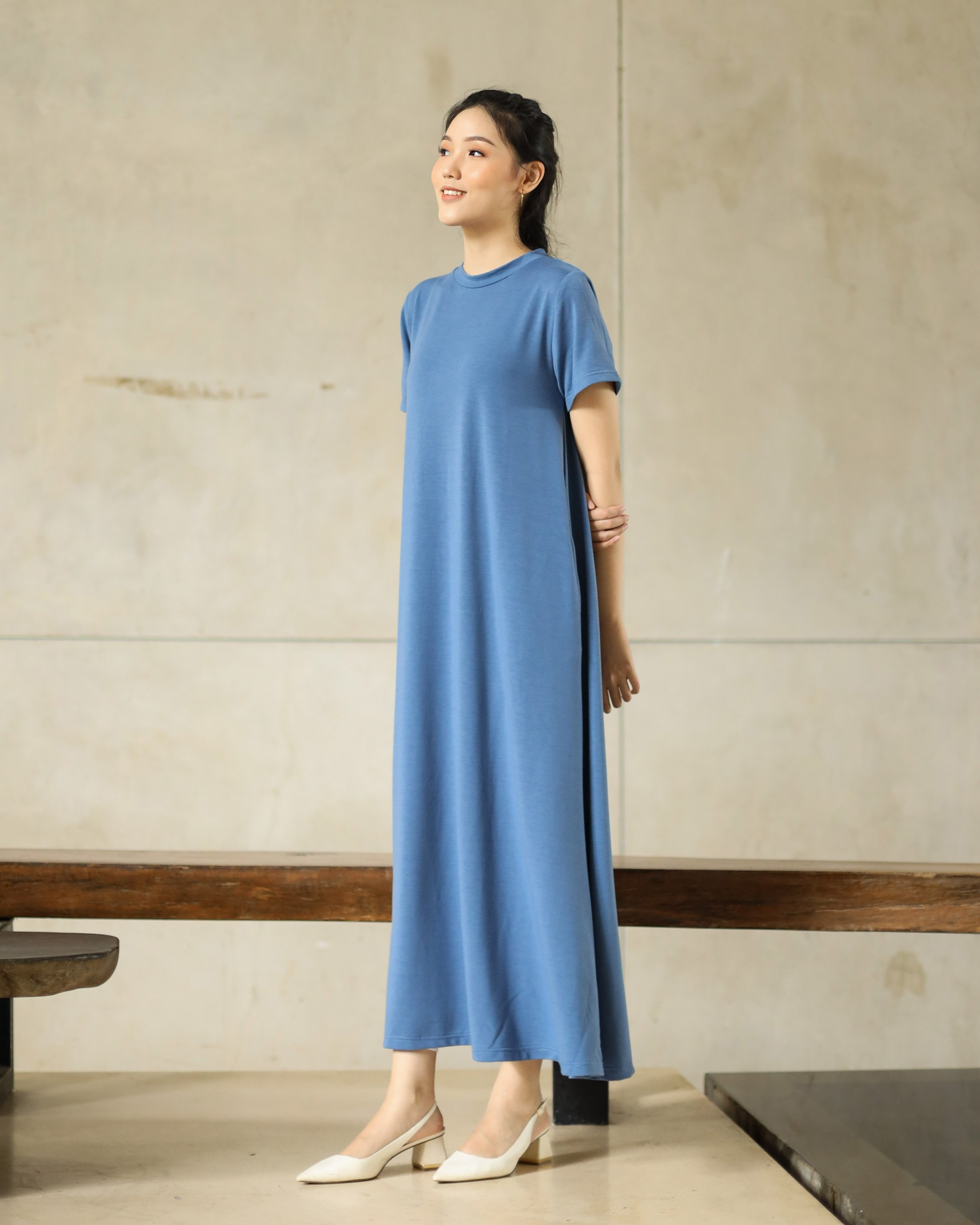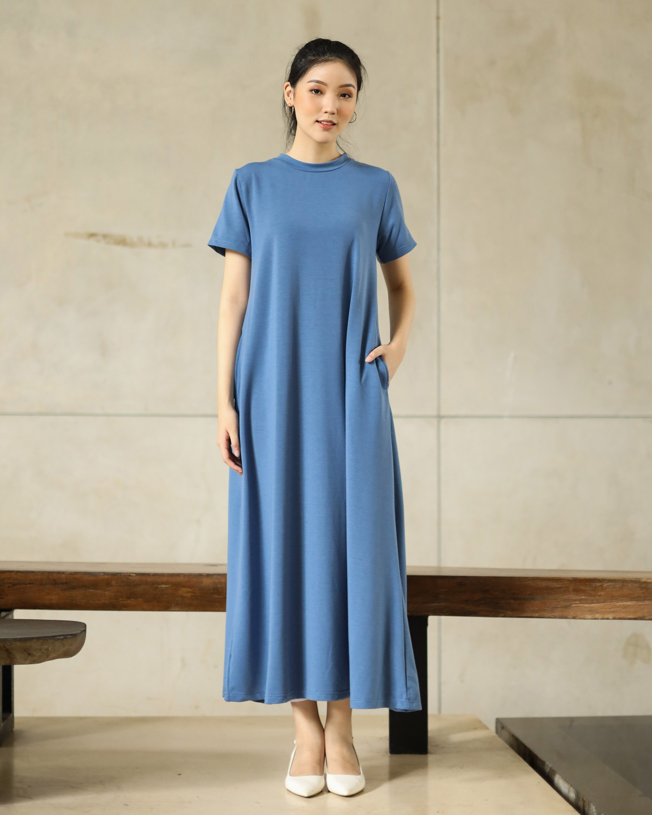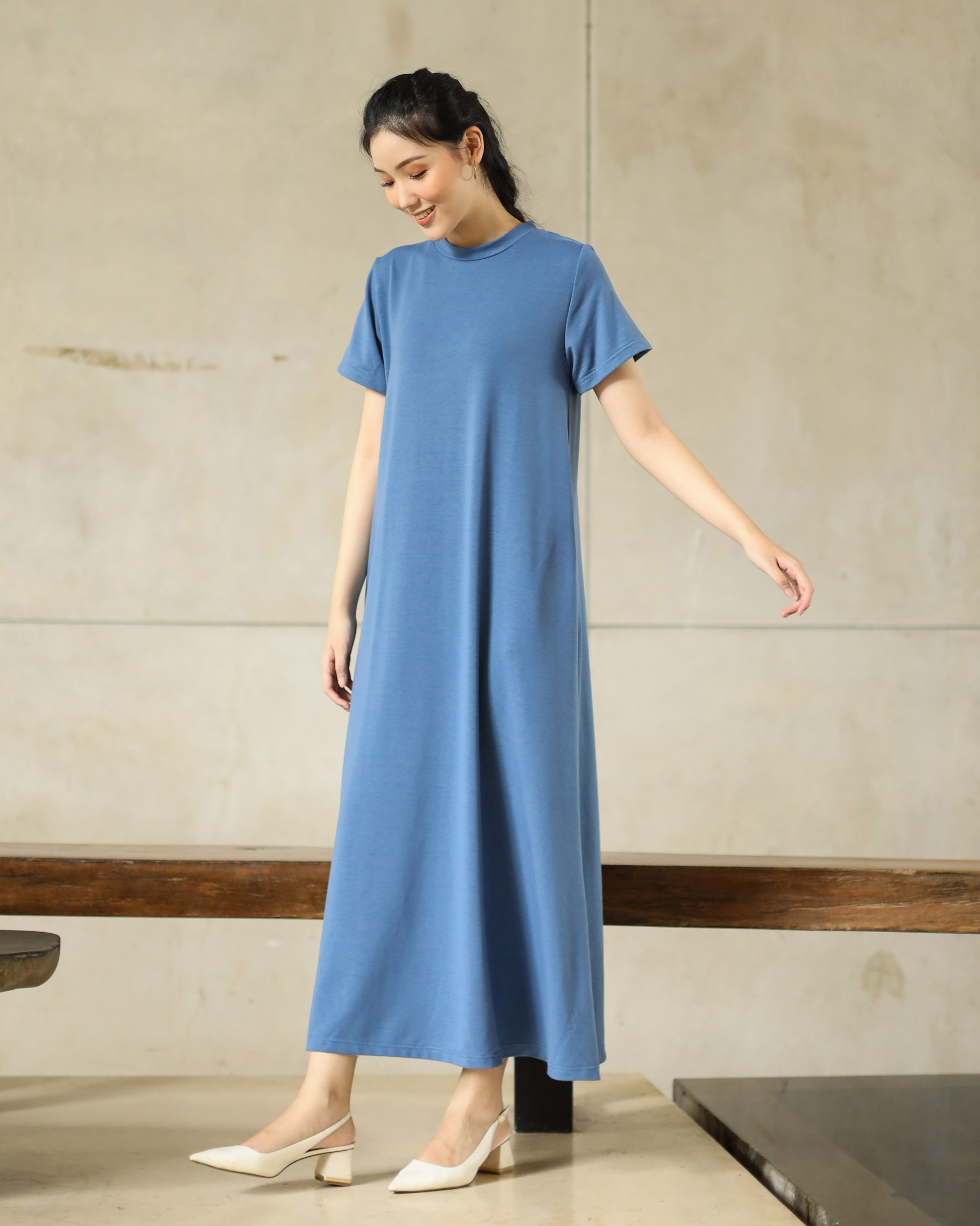 BASIC SHORT SLEEVE DRESS - DENIM