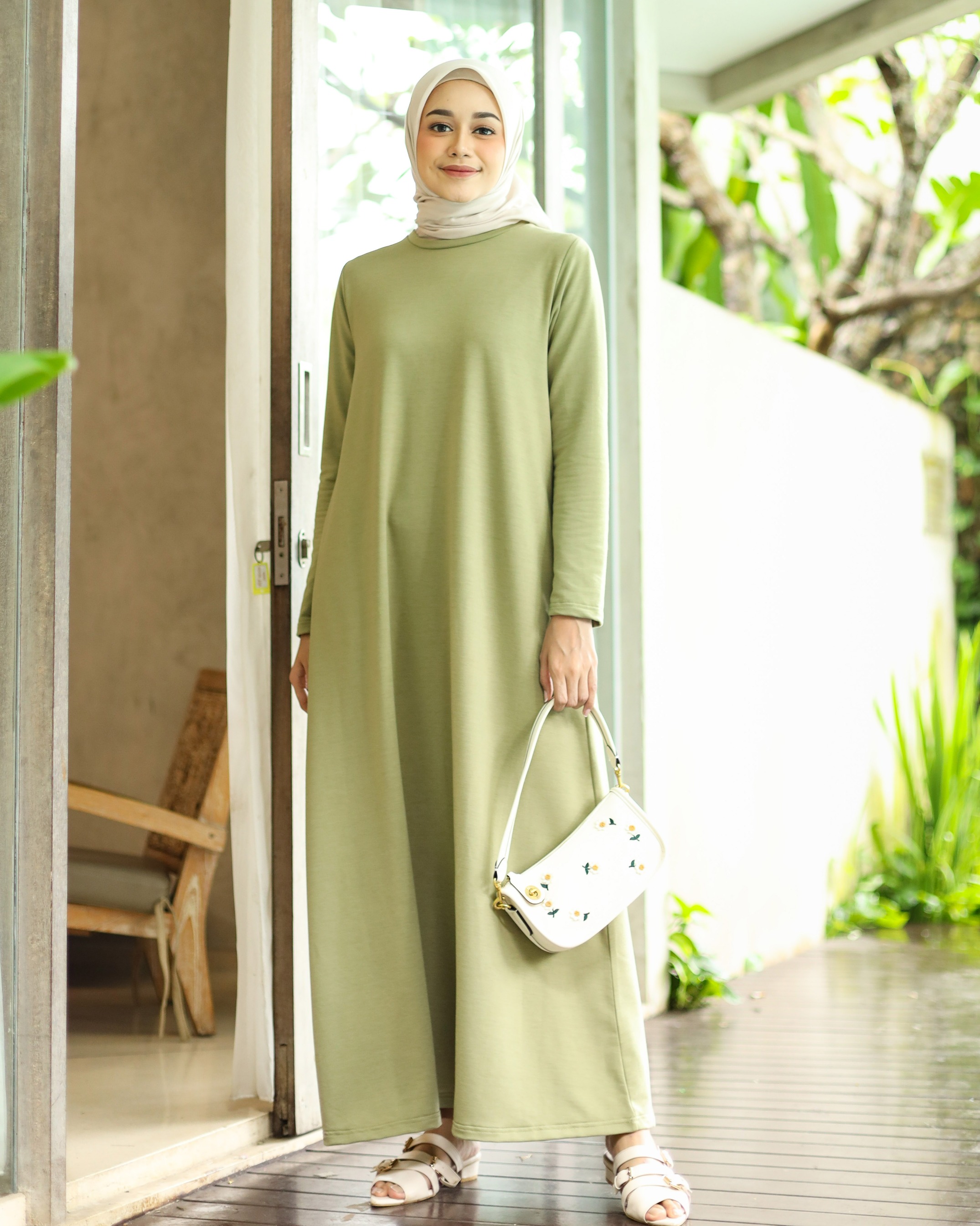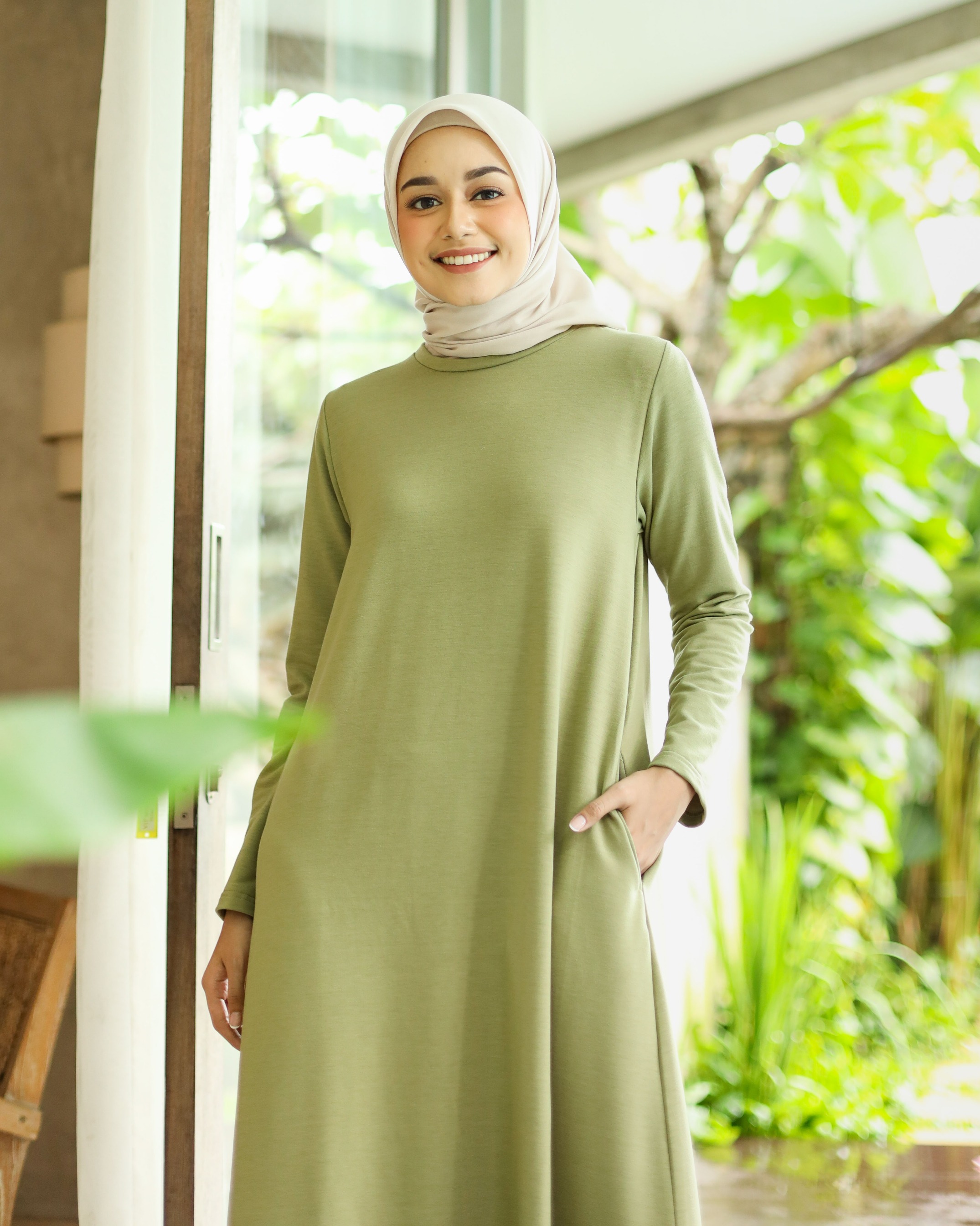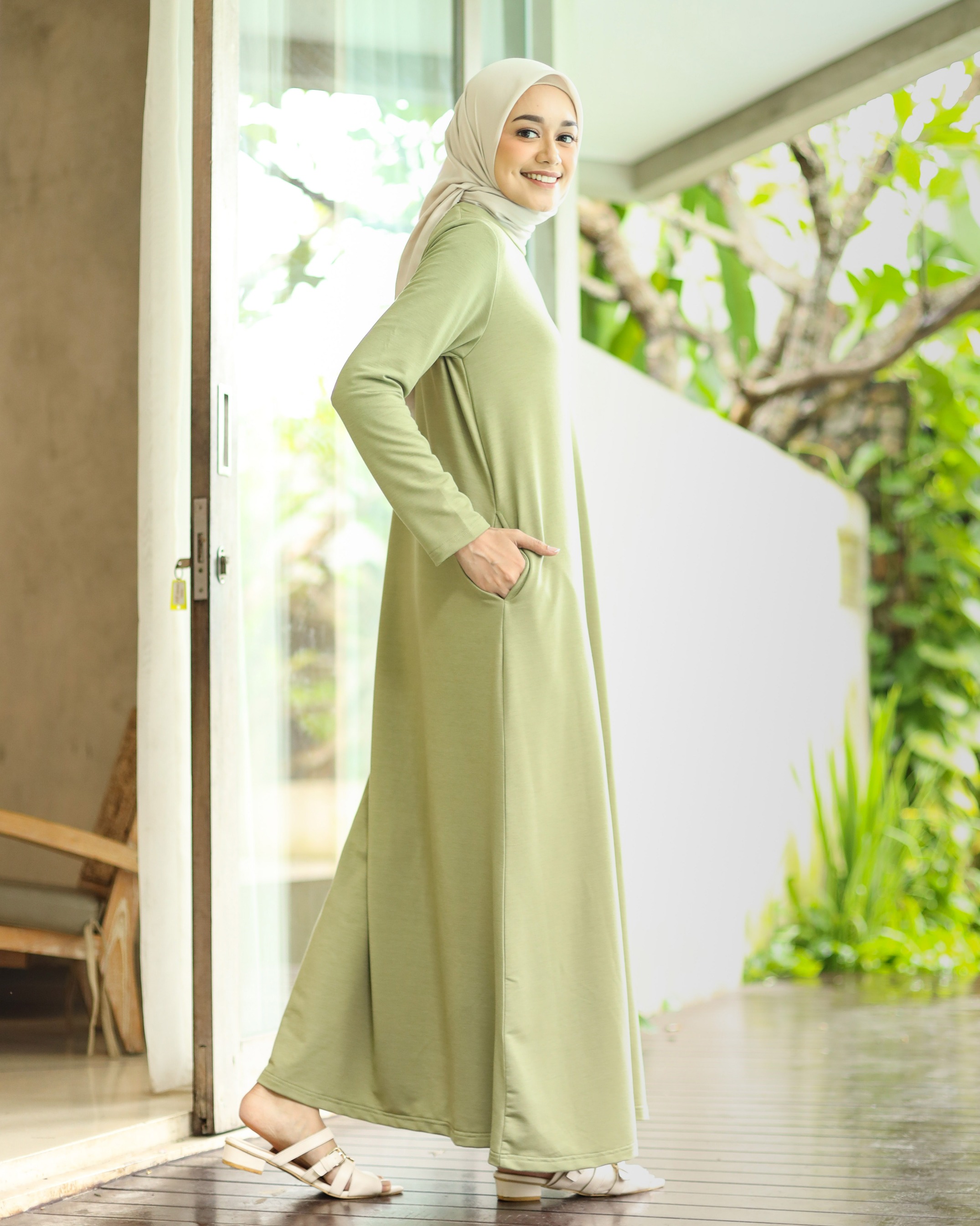 BASIC LONG SLEEVE DRESS - GREENTEA