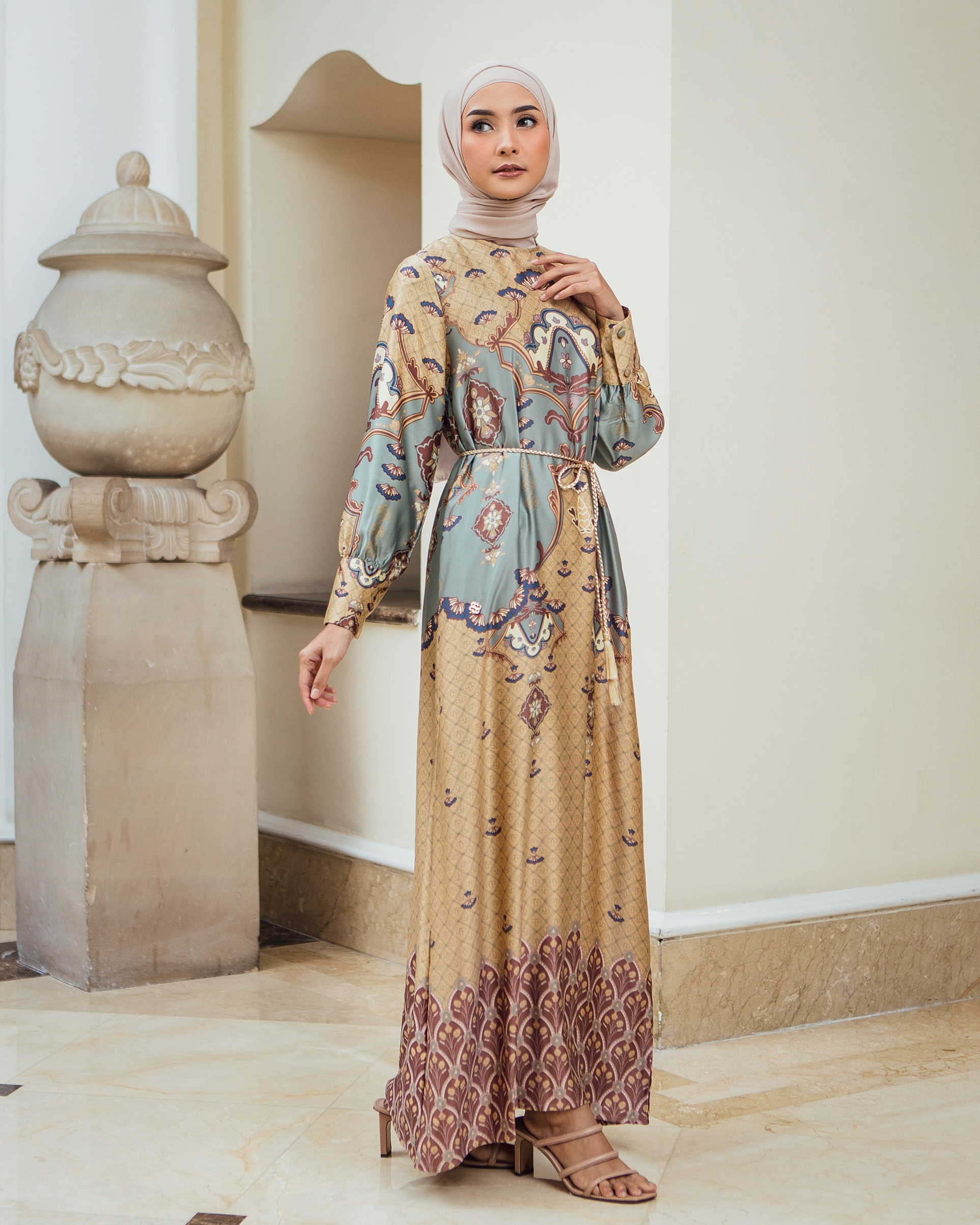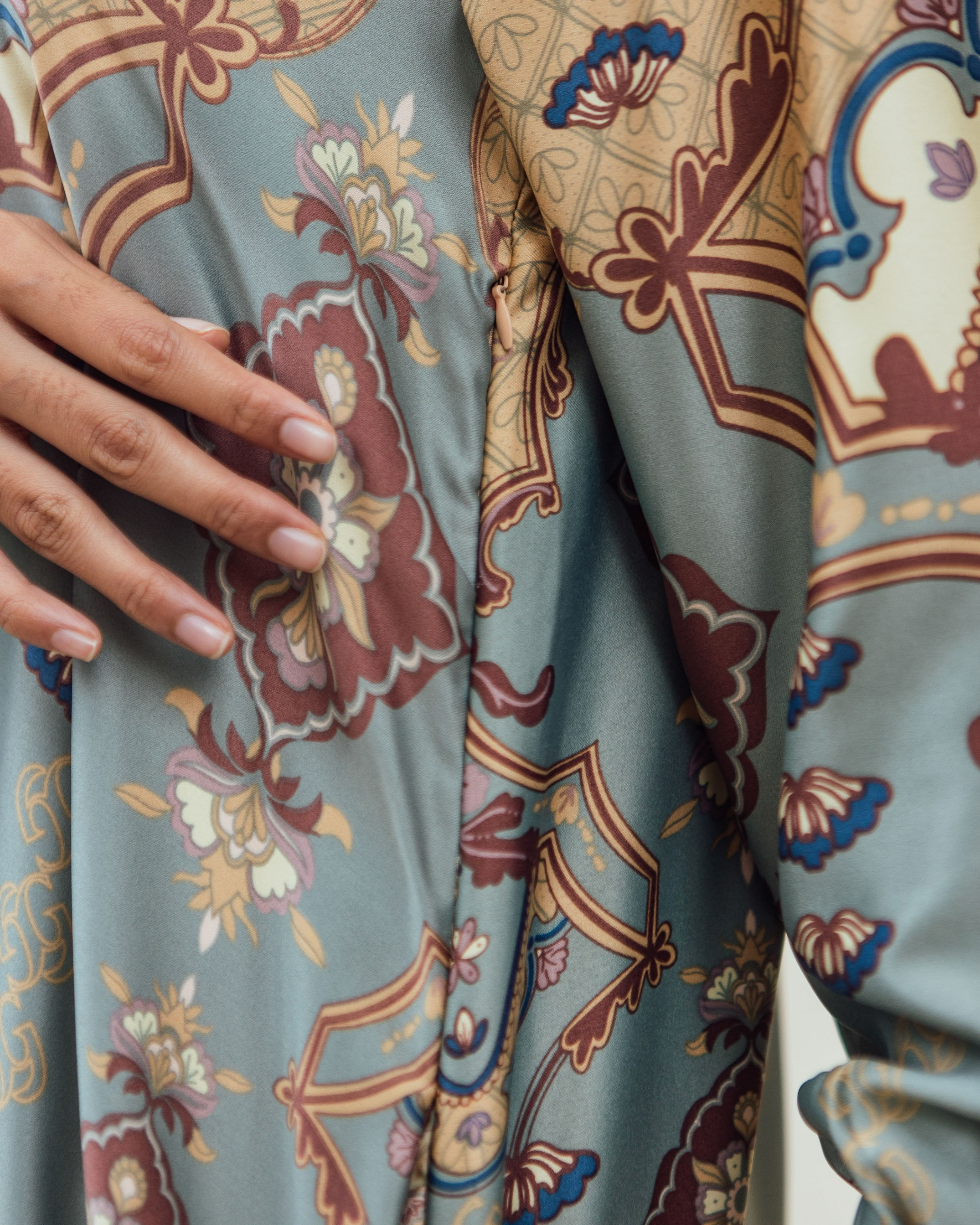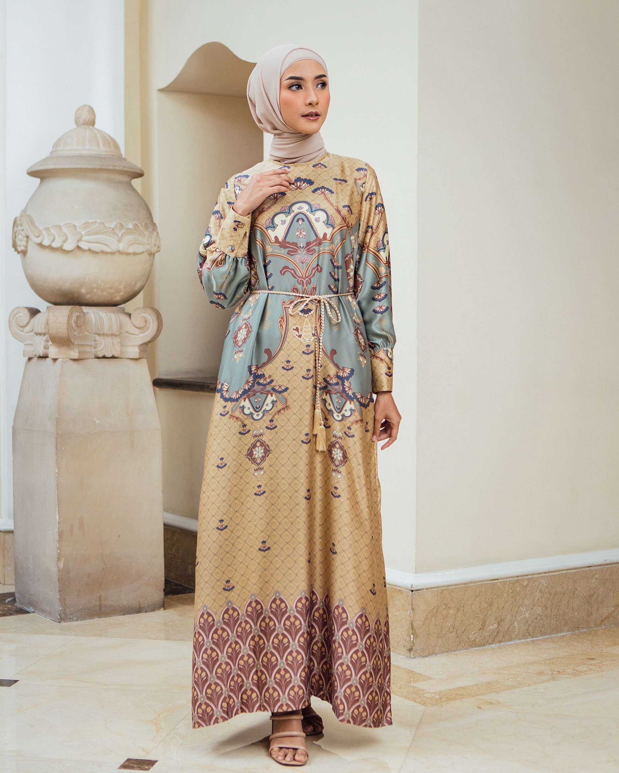 Pattern Exclusive printed di bahan Geulis Doff Silk. Tidak mengkilap berlebih, Nyaman, mewah & tidak kusut