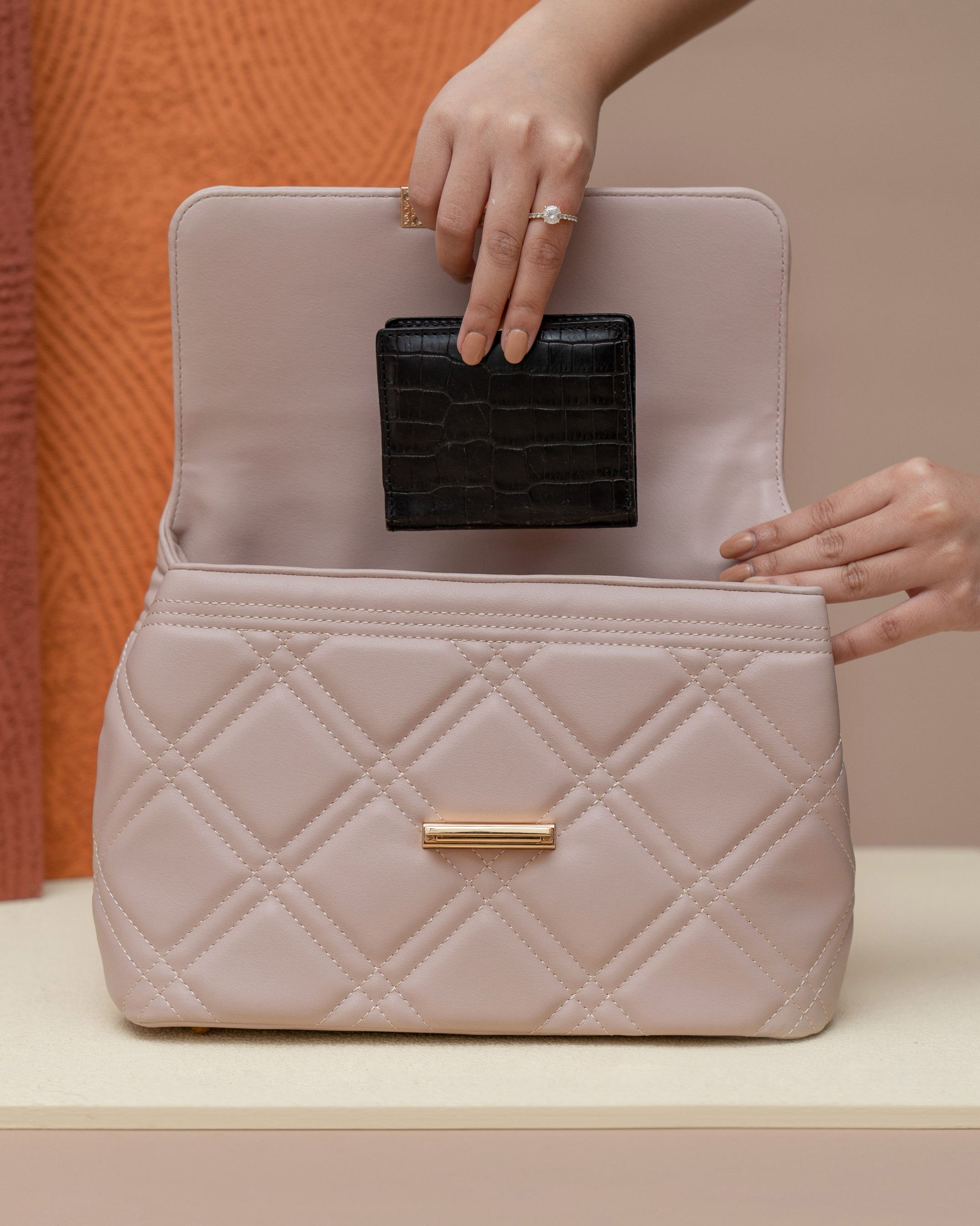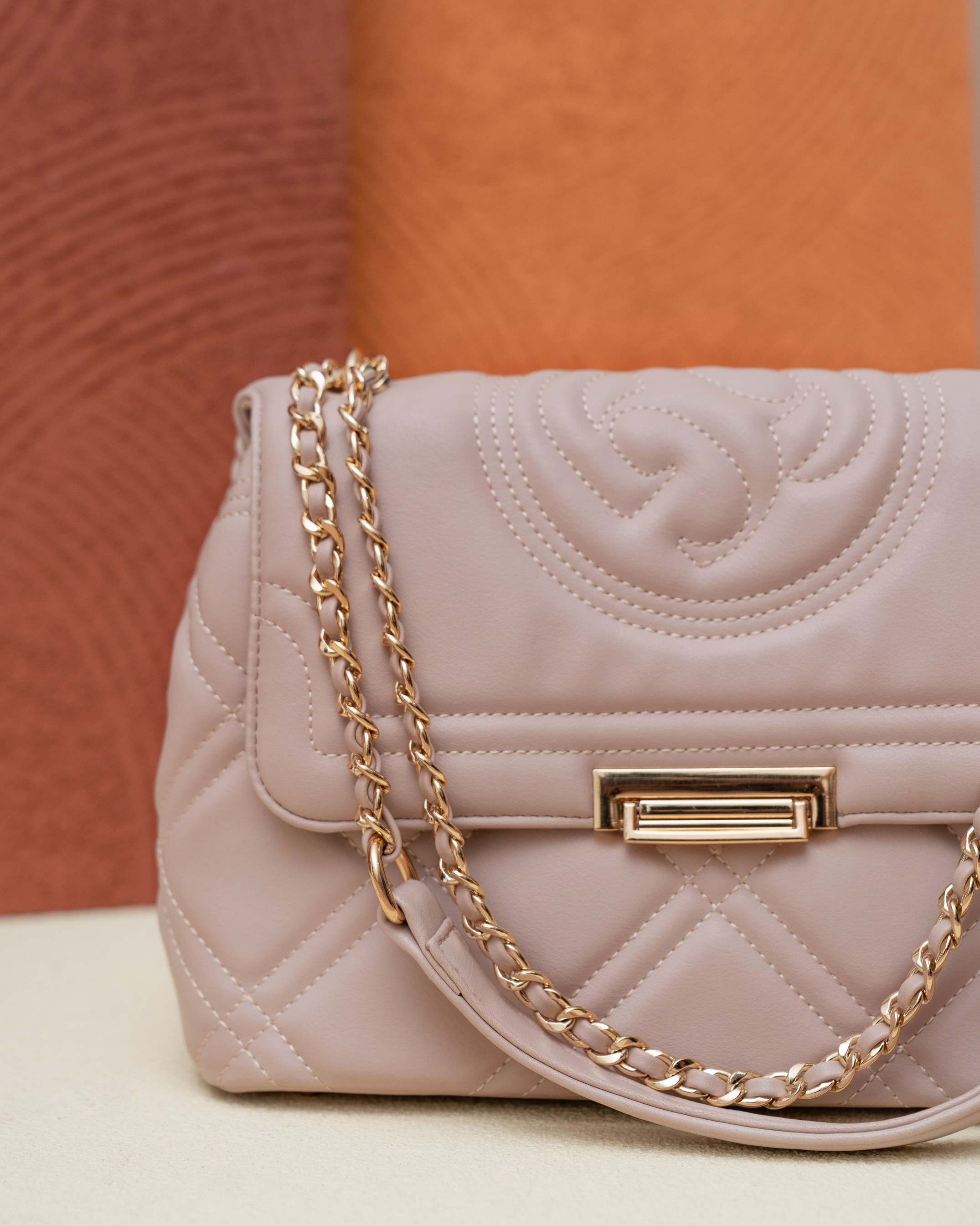 Bahan soft syntetic leather. Chain,Push lock opening using premium quality. Dalamnya di lapisin lining yang tebal.