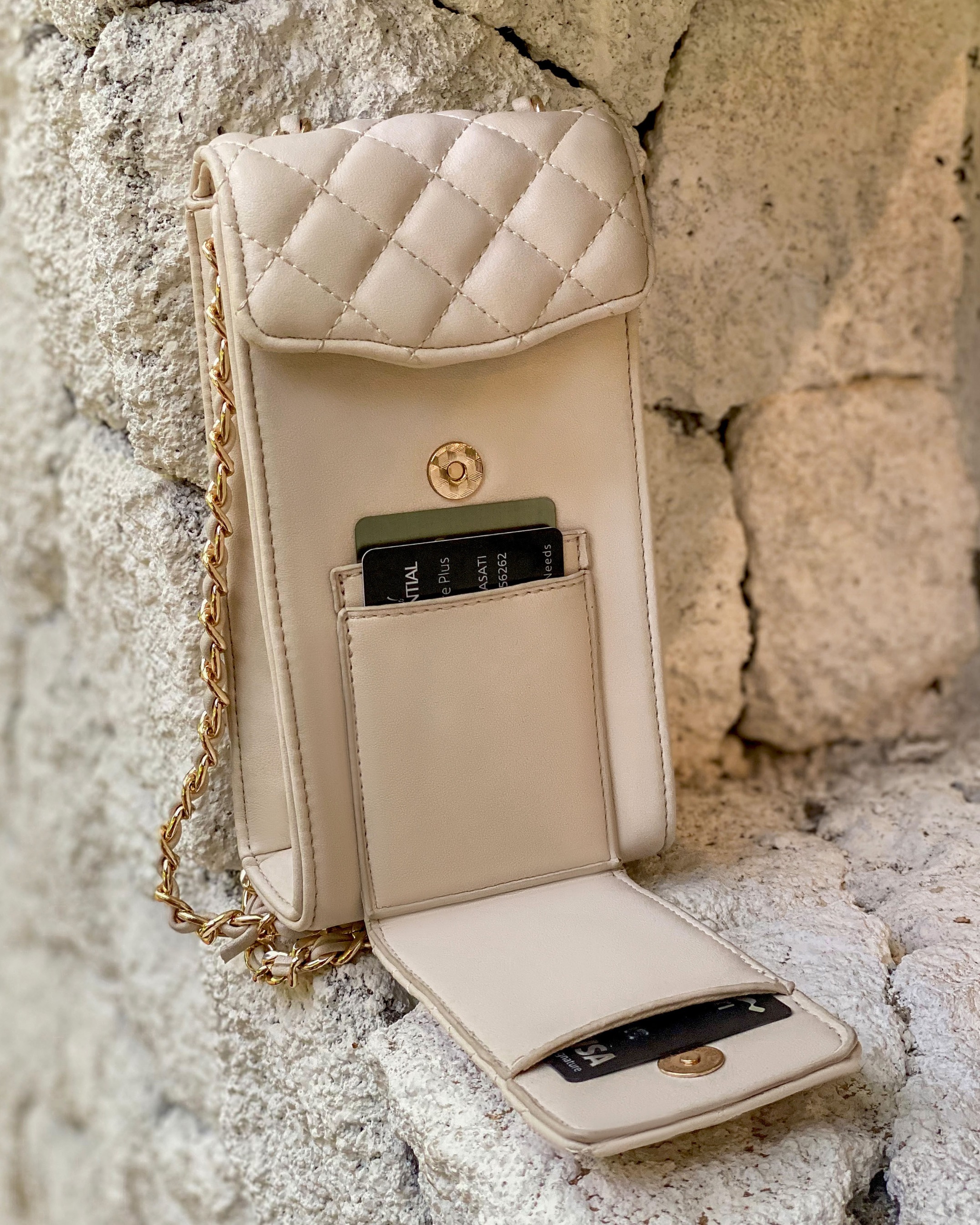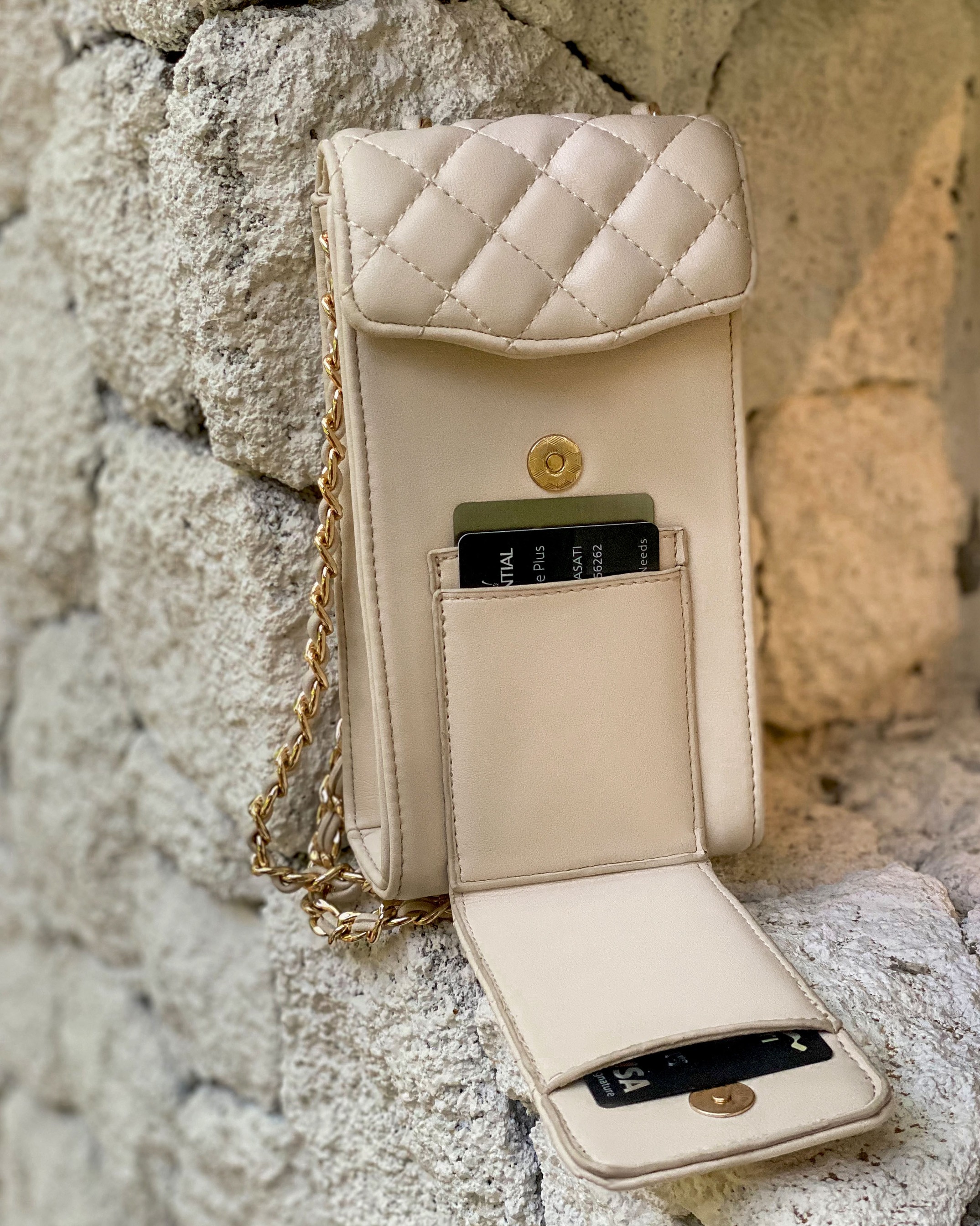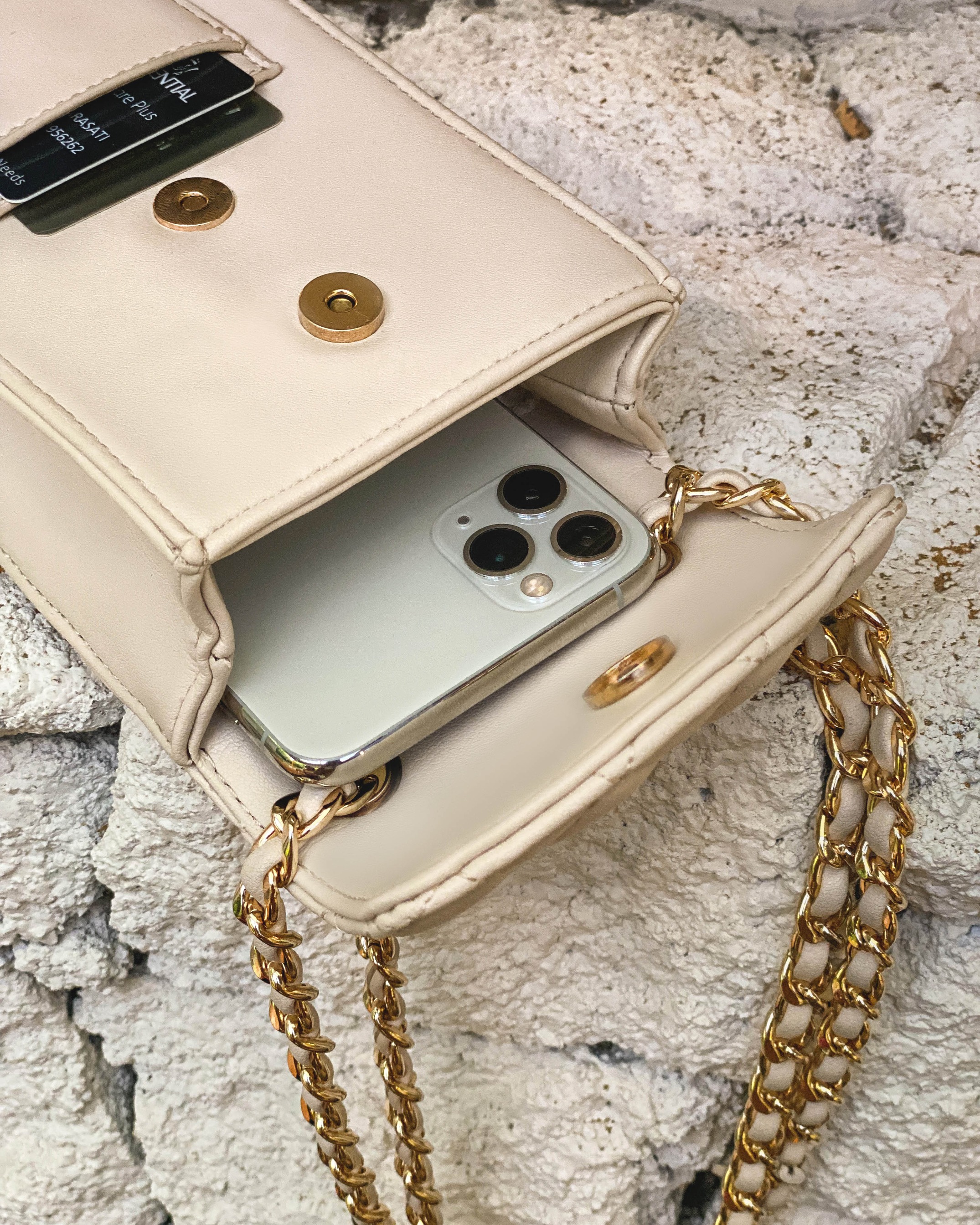 Bahan pebble leather. Chain, magnet lock using premium quality. Dalamnya di lapisin lining yang tebal.