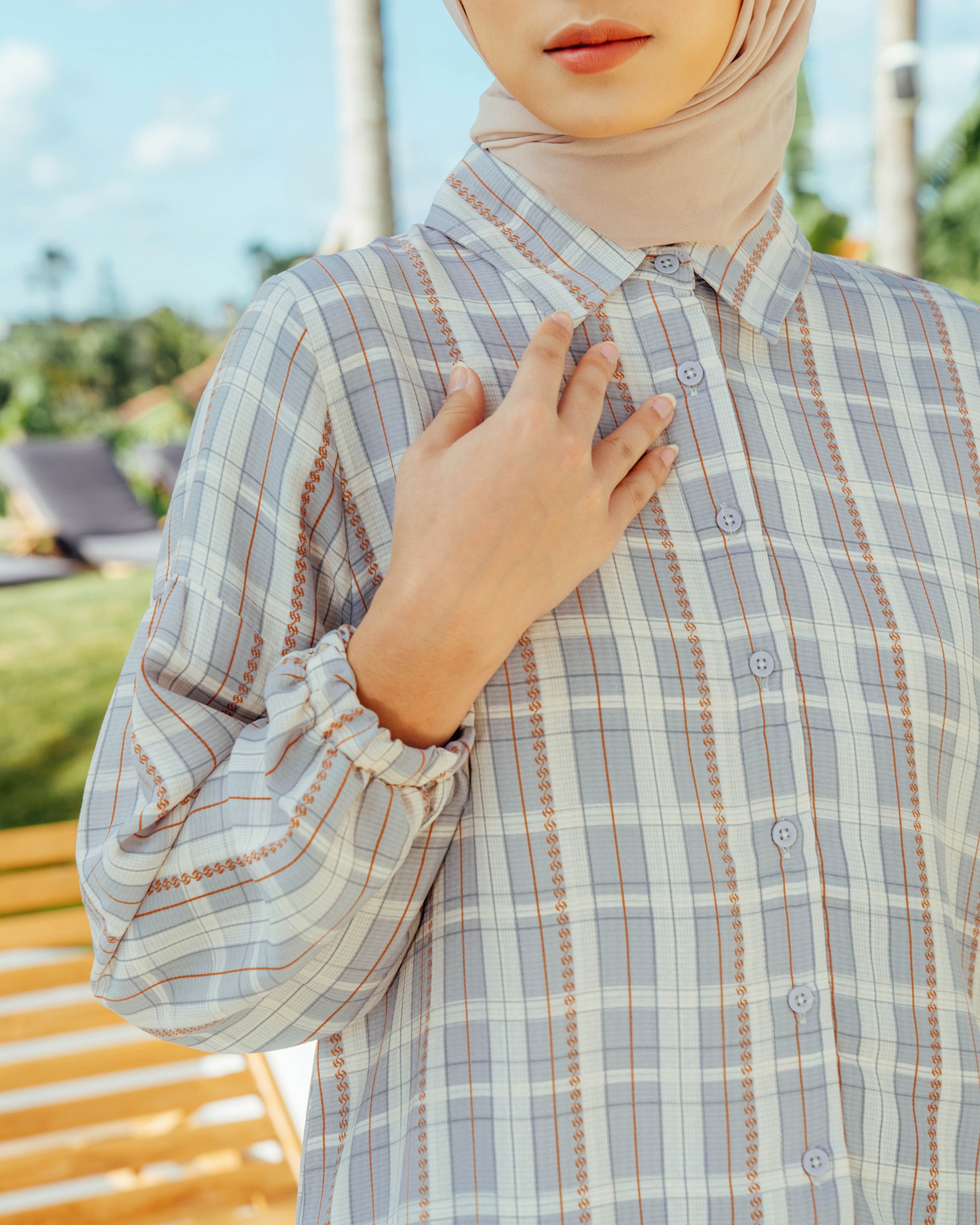 ✔️Terdapat cuttingan lengan yang memberi kesan feminine serta detail manset karet