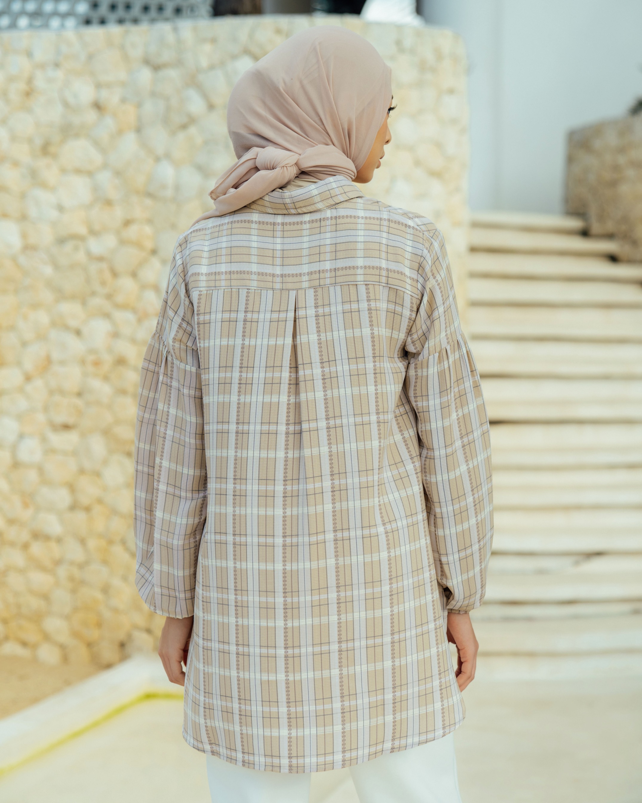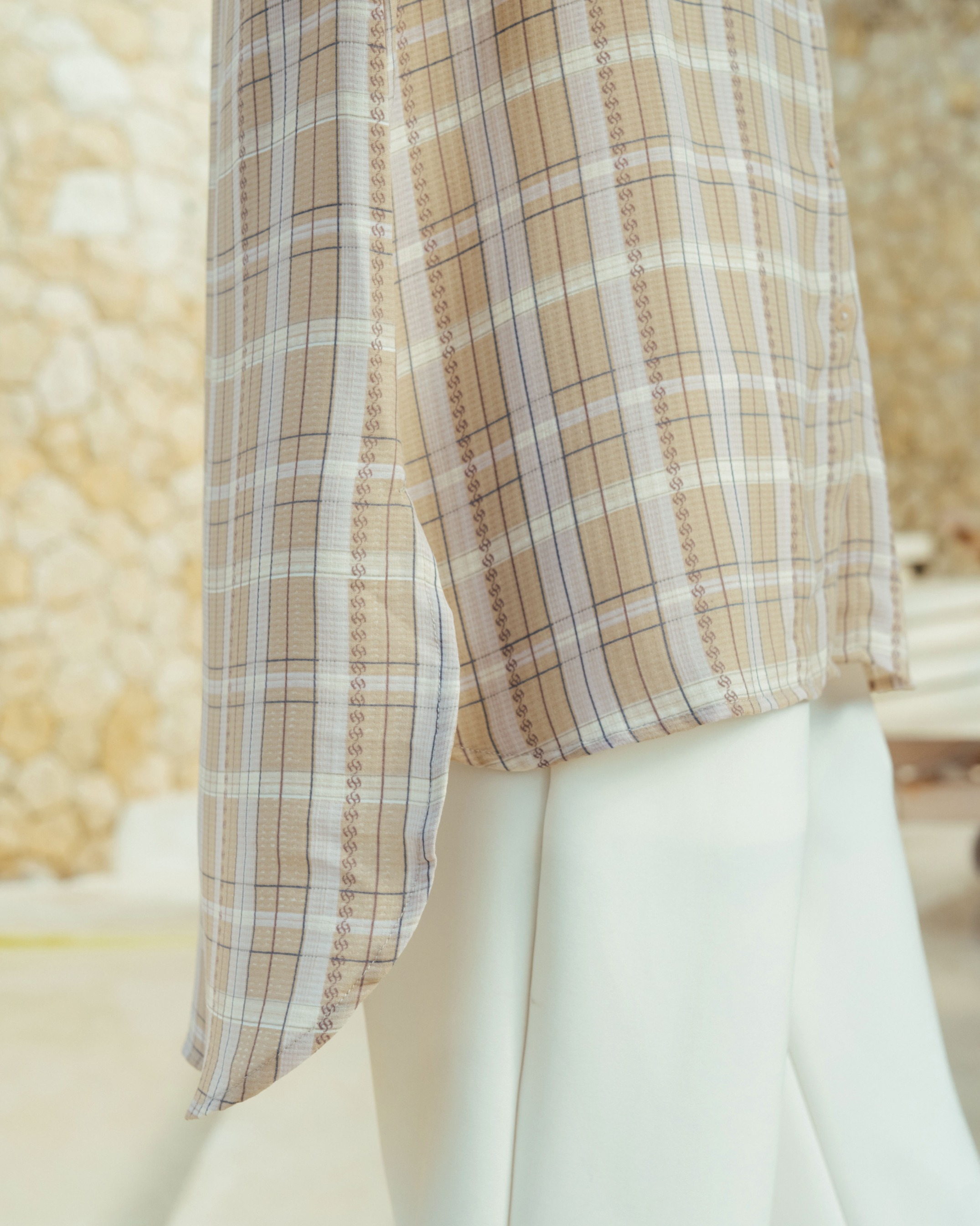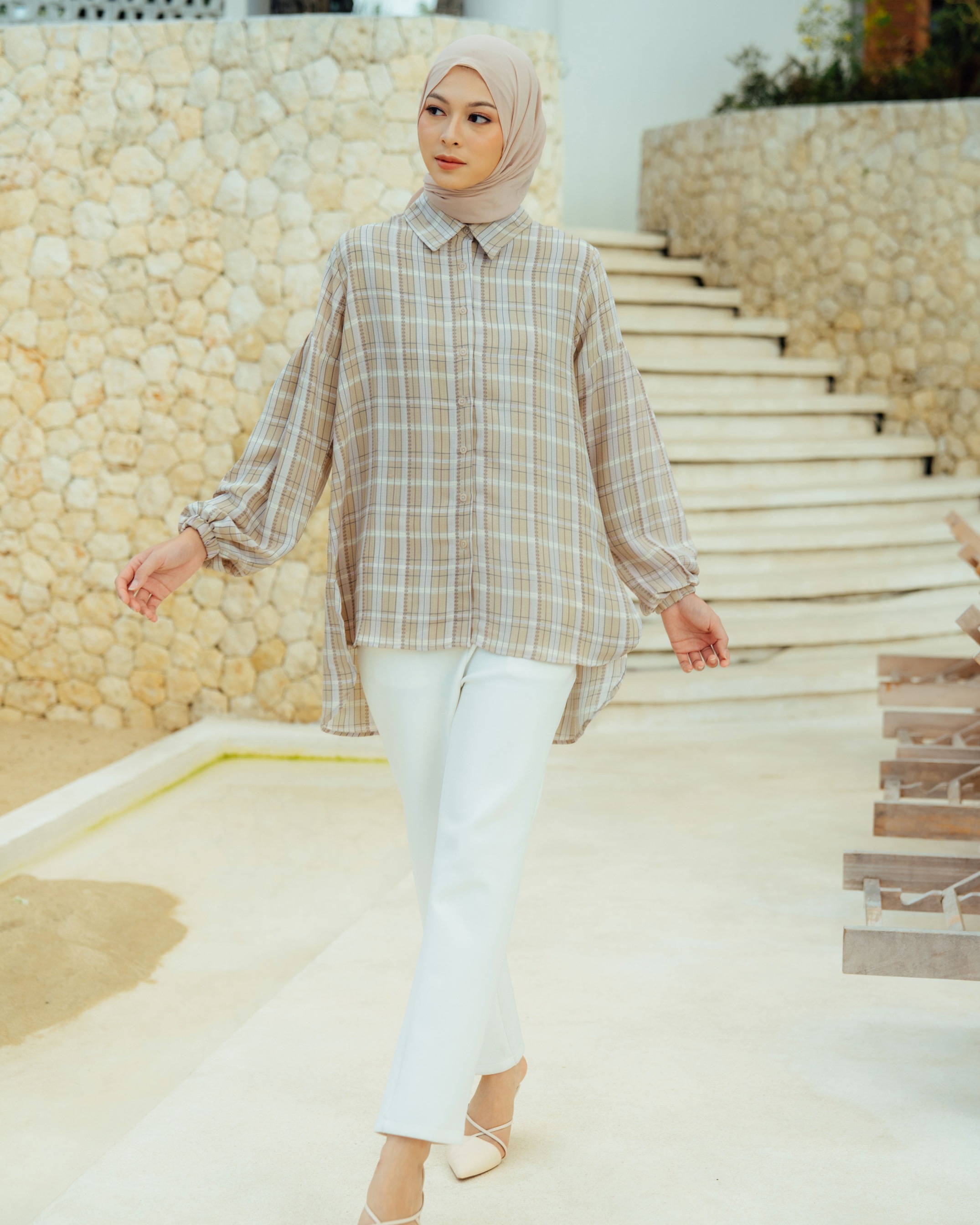 On model size S . Bahan poly cotton dobby high quality printed. Flowy, Berteksture ✔️Bahan sejuk saat digunakan ✔️Terdapat full kancing hidup ✔️Terdapat cuttingan lengan yang memberi kesan feminine serta detail manset karet Tersedia 4 warna dan size lengkap S M L XL Lingkar Dada : 98/104/110/120 Lingkar Kerung Lengan : 49/52/55/60 Panjang Top Depan : 72cm Panjang Top Belakang : 85cm