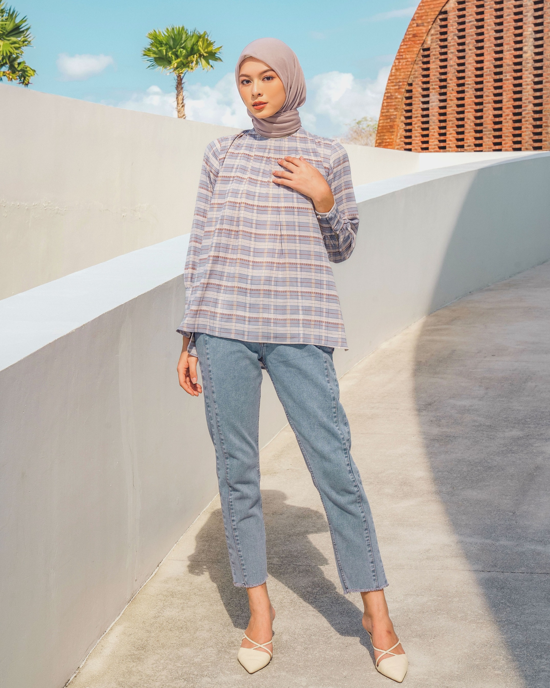 On model size S . Bahan poly cotton dobby high quality printed. Berteksture dan Flowy. Tidak bisa kusut ✔️Bahan sejuk saat digunakan ✔️Terdapat kancing manset, wudhu friendly ✔️ Terdapat kancing belakang untuk bukaan Tersedia 4 warna cantik dan size lengkap XS S M L XL XXL Lingkar Dada : 90/94/98/104/110/120 Lingkar Kerung Lengan : 45/47/49/52/55/60 Panjang Top Depan : 70cm Panjang Top Belakang : 75cm
