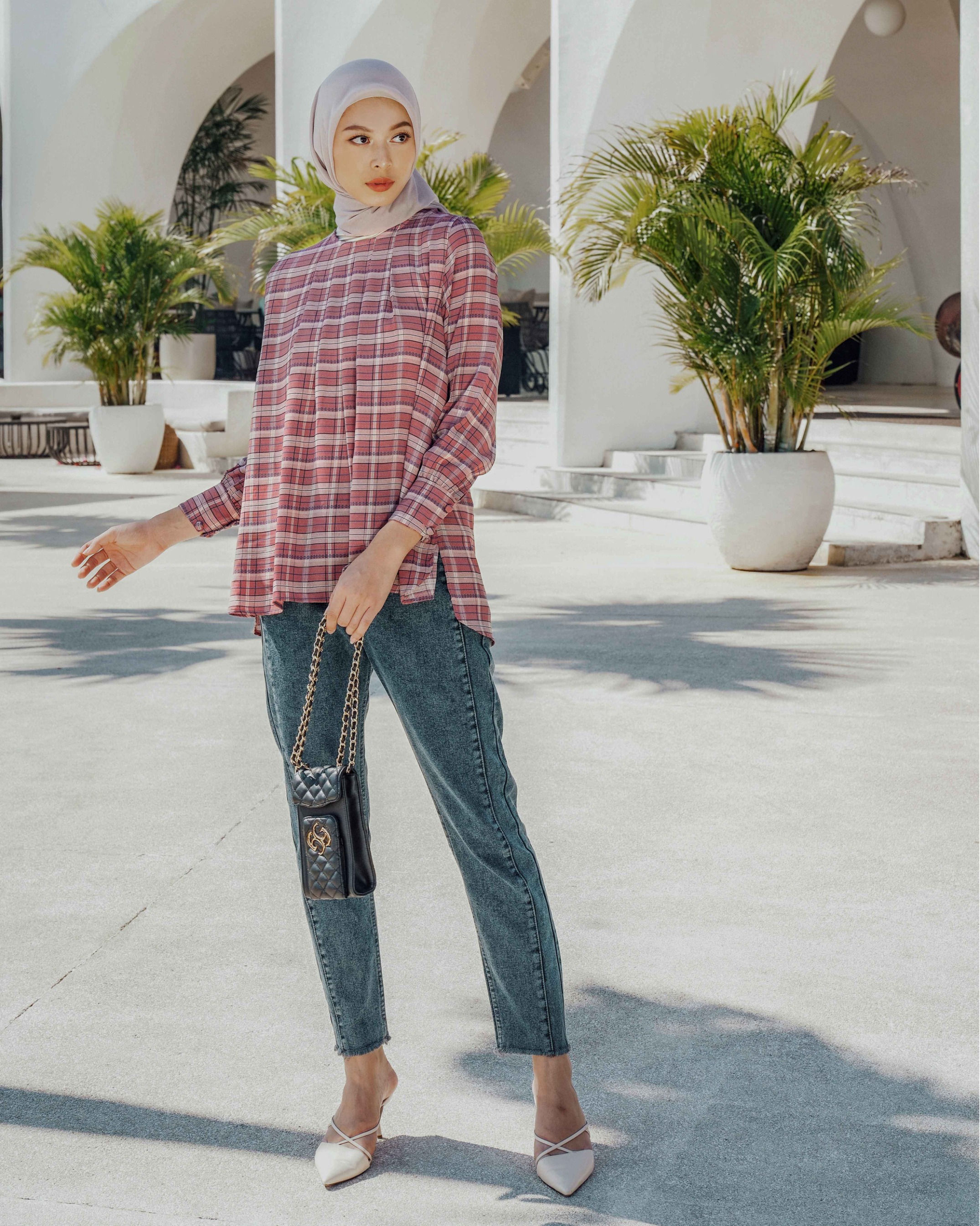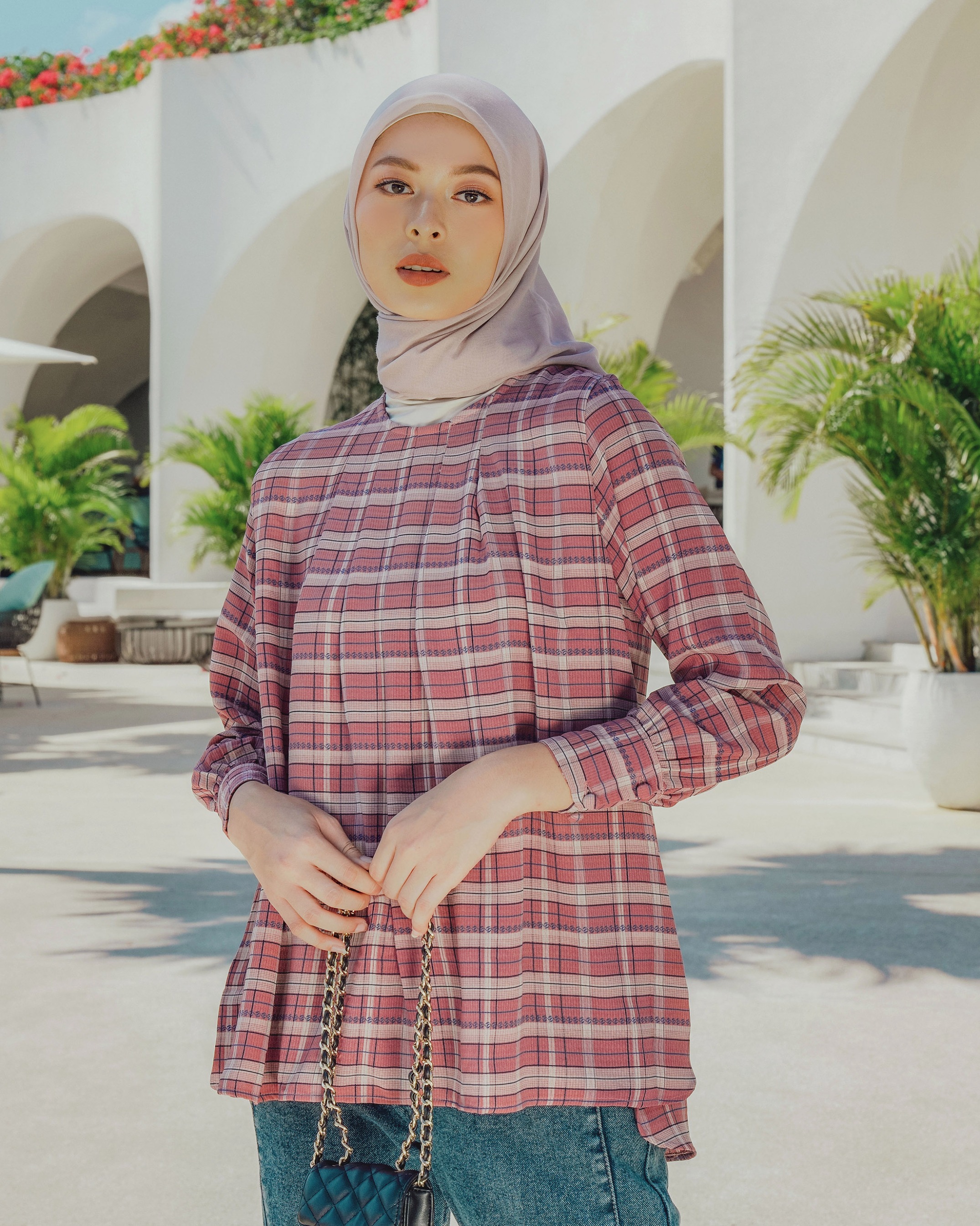 On model size S . Bahan poly cotton dobby high quality printed. Berteksture dan Flowy. Tidak bisa kusut ✔️Bahan sejuk saat digunakan ✔️Terdapat kancing manset, wudhu friendly ✔️ Terdapat kancing belakang untuk bukaan Tersedia 4 warna cantik dan size lengkap XS S M L XL XXL Lingkar Dada : 90/94/98/104/110/120 Lingkar Kerung Lengan : 45/47/49/52/55/60 Panjang Top Depan : 70cm Panjang Top Belakang : 75cm