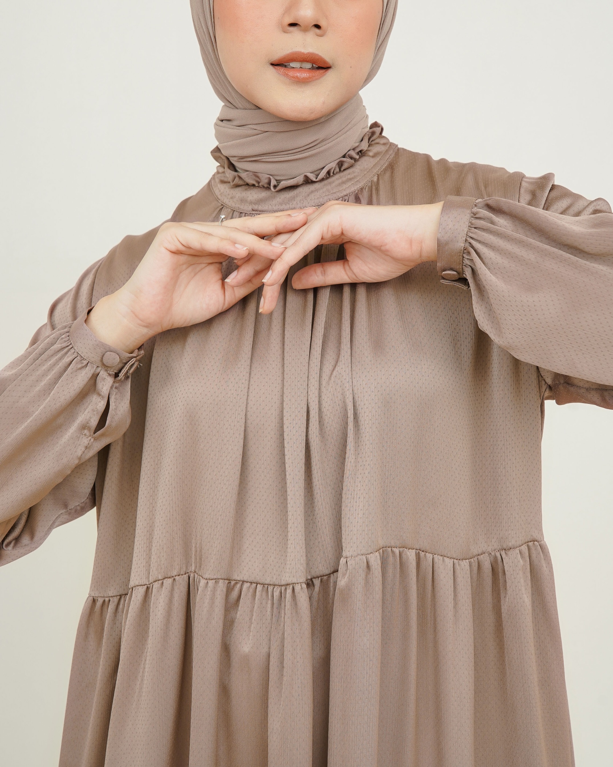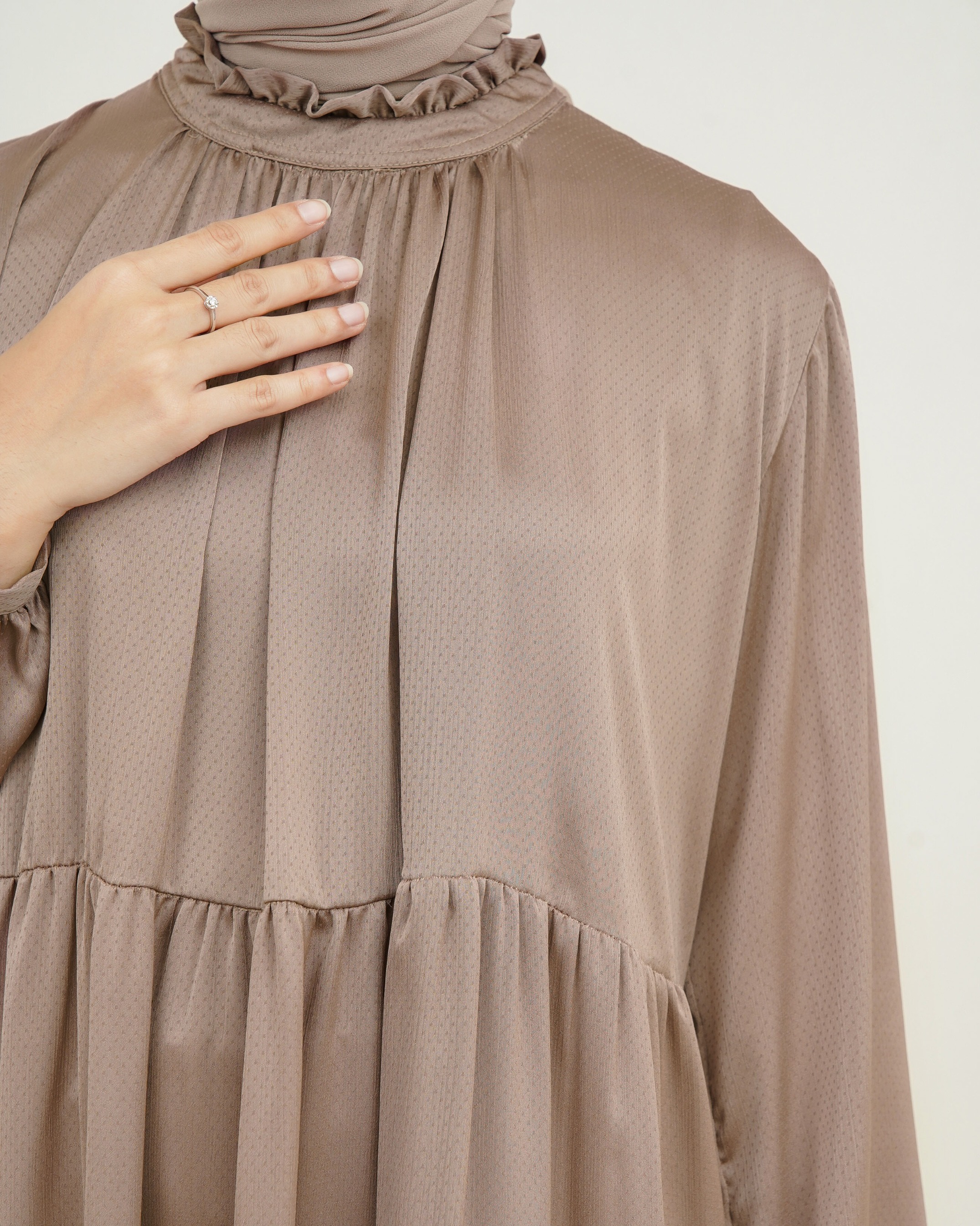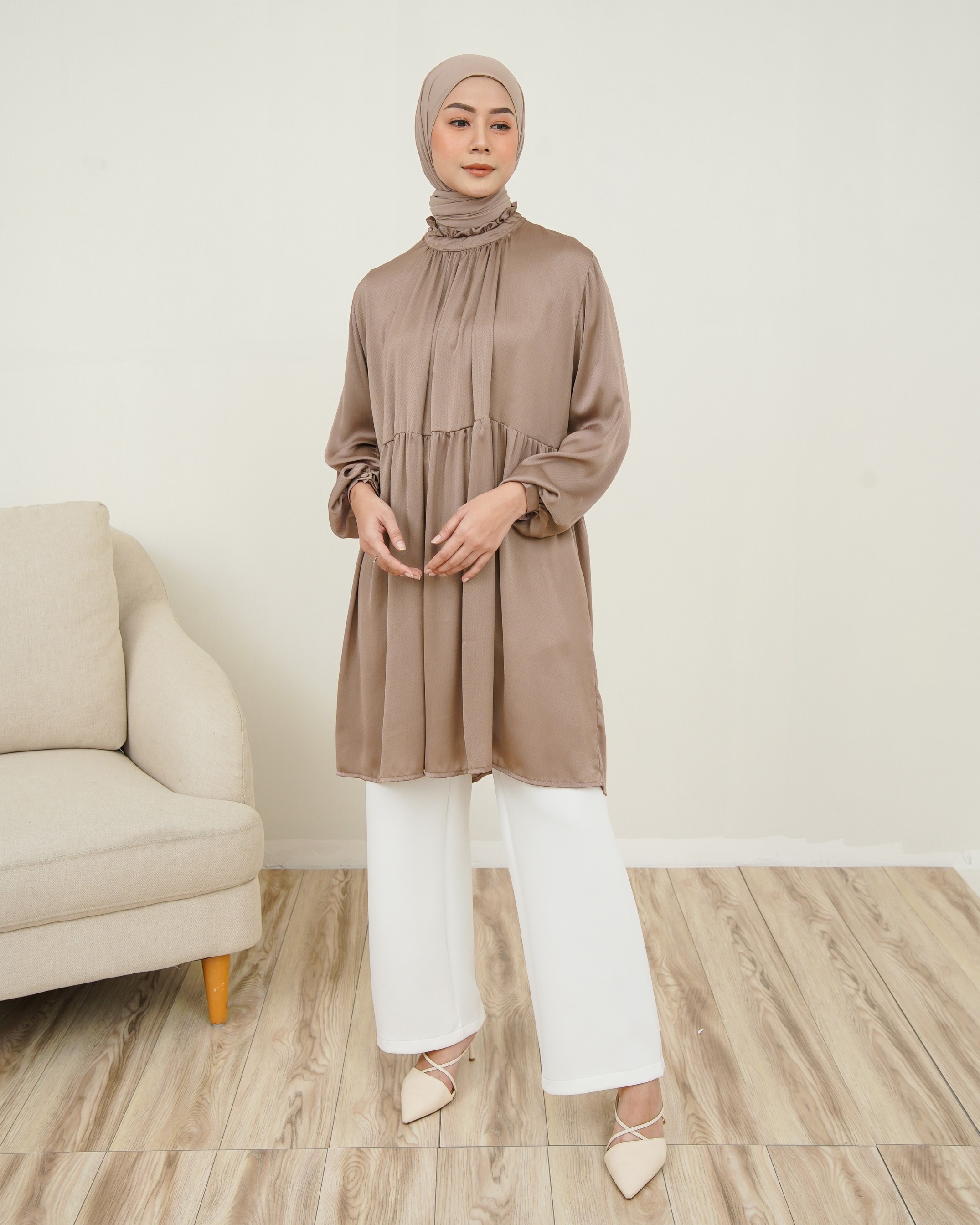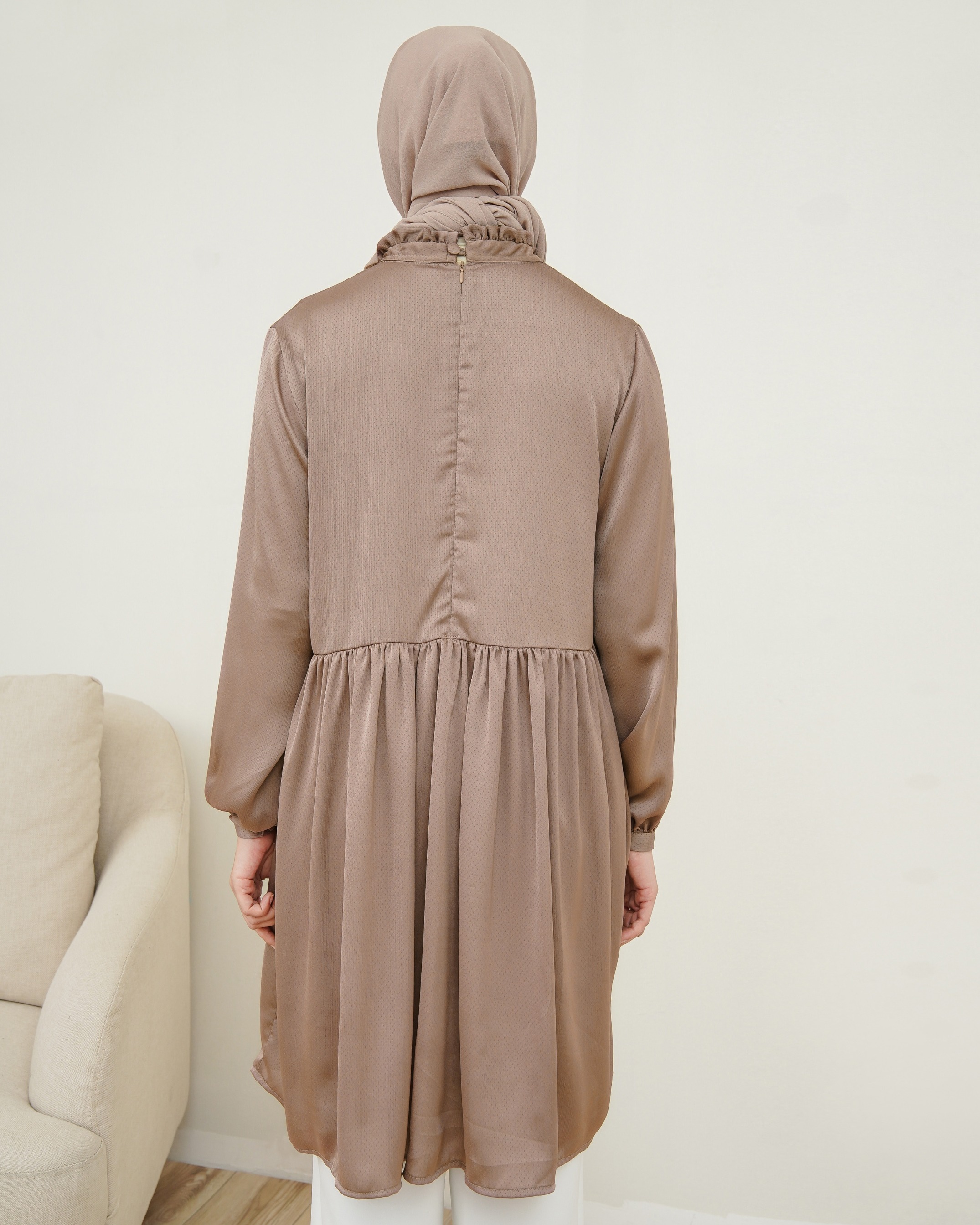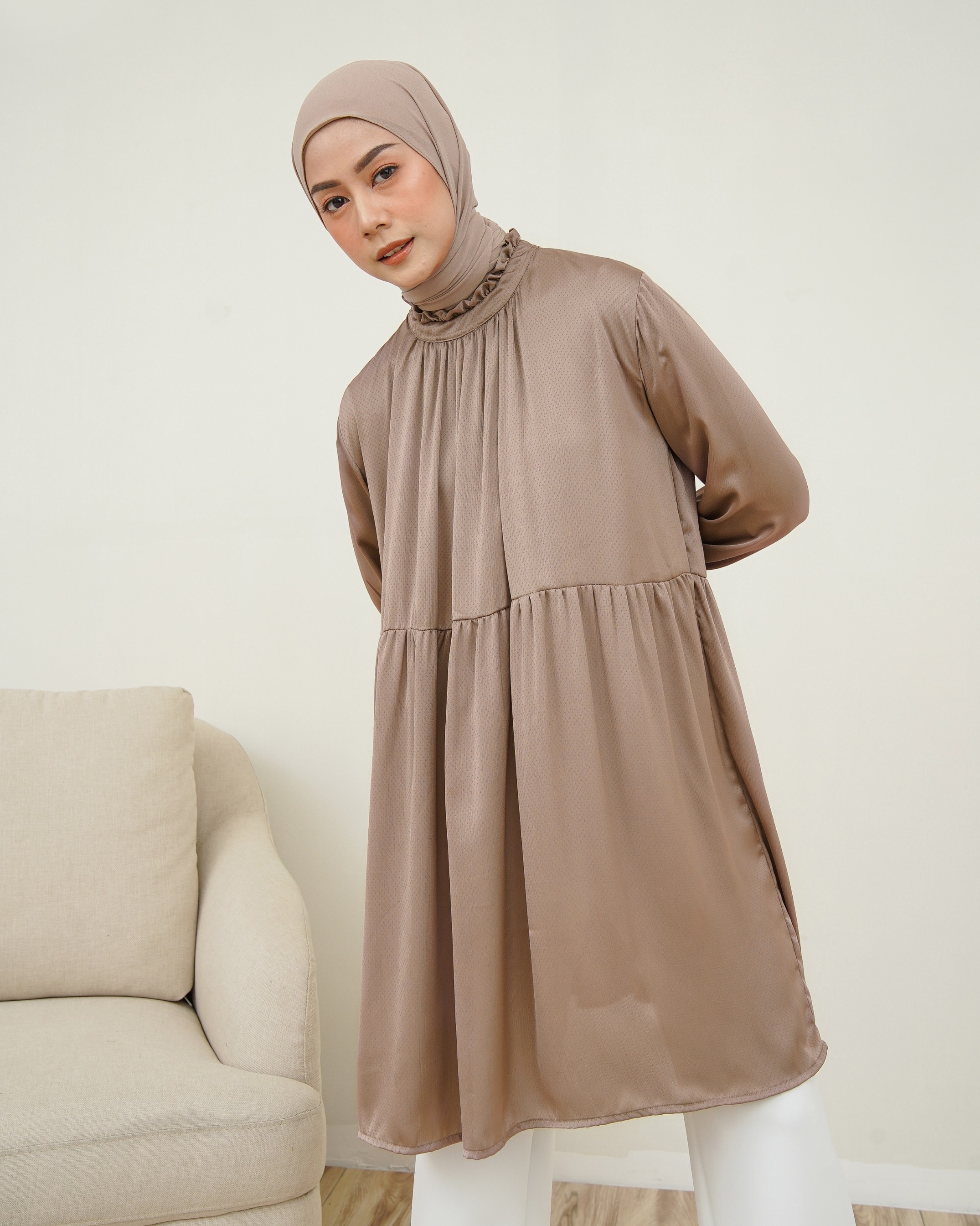 On model size S Material : Poly Silk, zipper dibagian belakang. Comes in 4 colours Size XS S M L XL XXL Lingkar Dada : 90/94/98/104/110/120 Lingkar Kerung Lengan : 57-58cm Panjang Tunic : 95cm