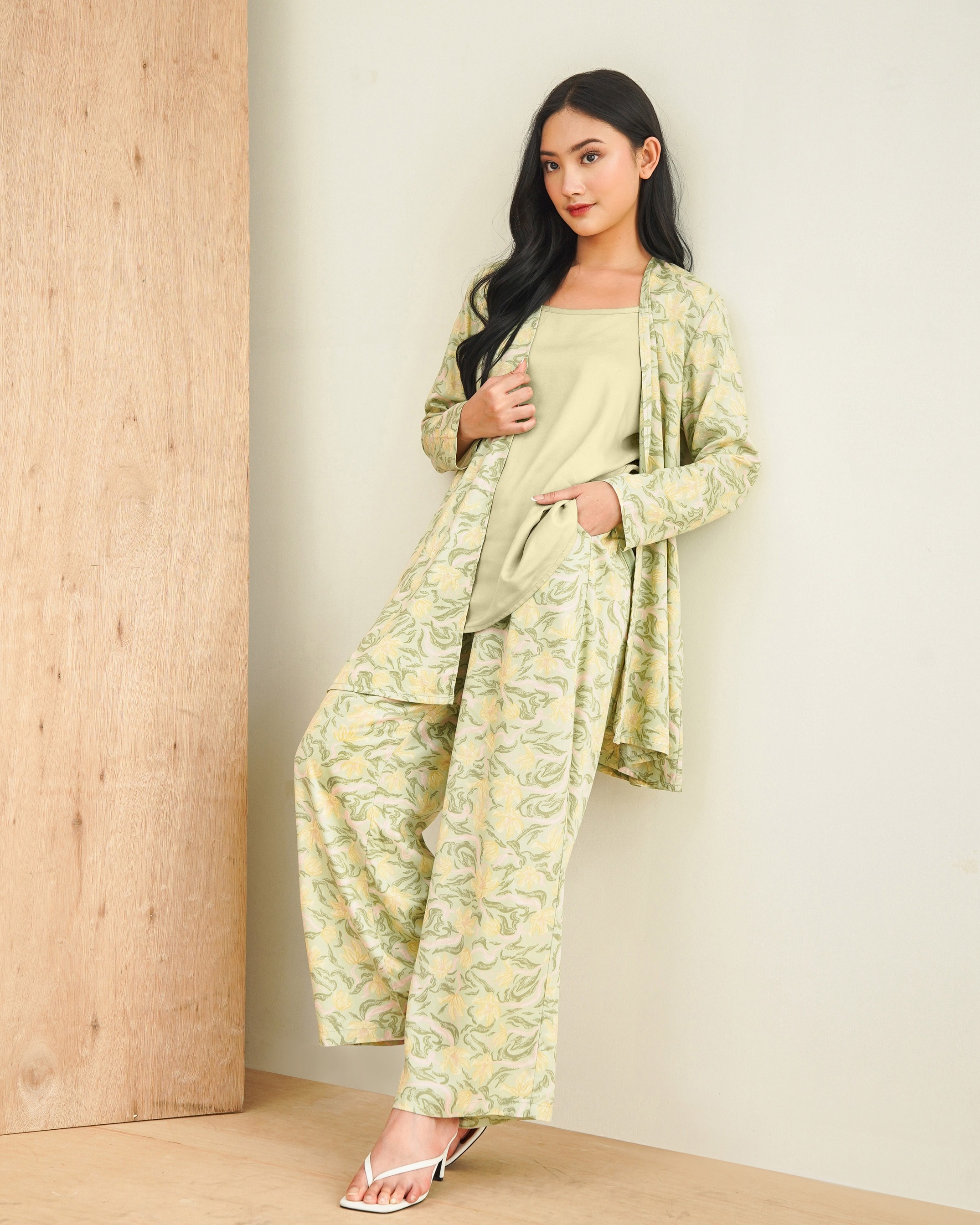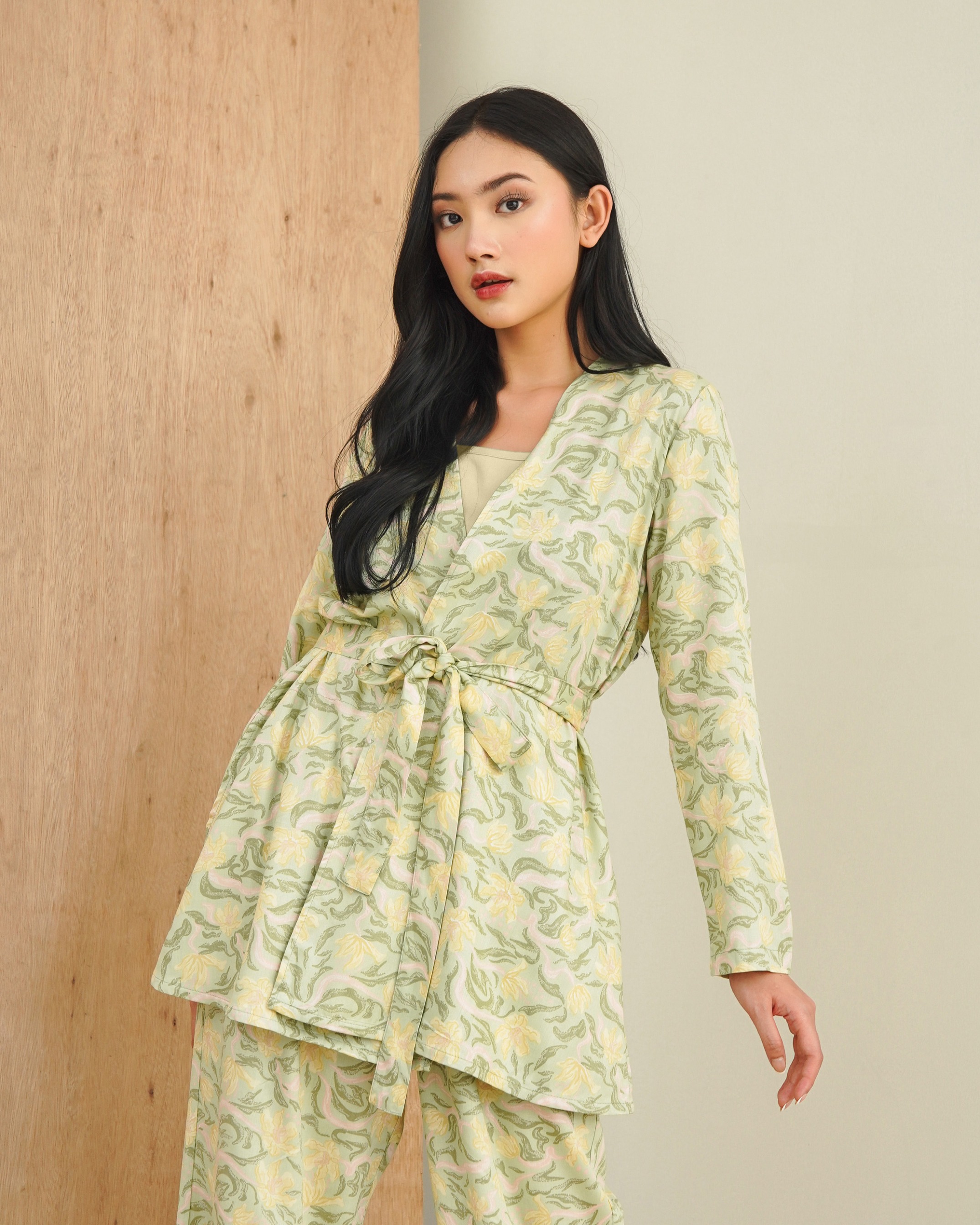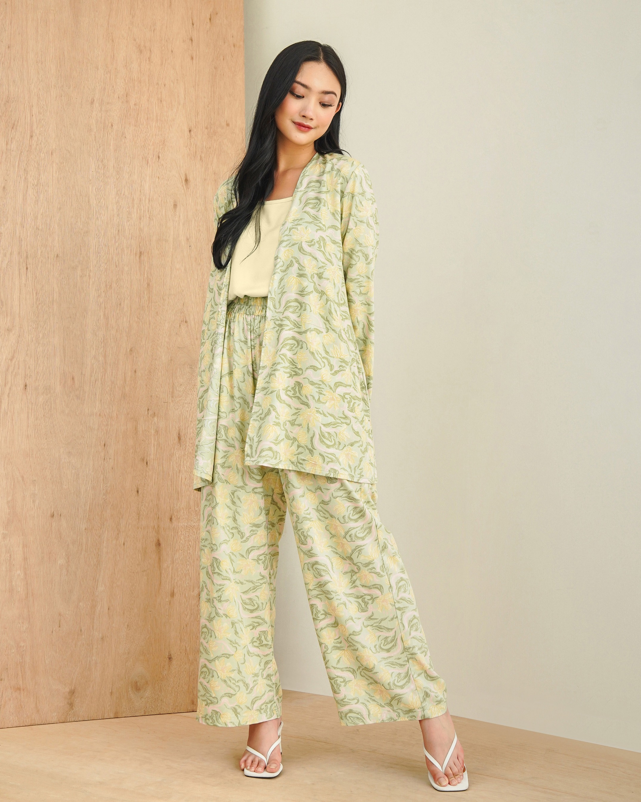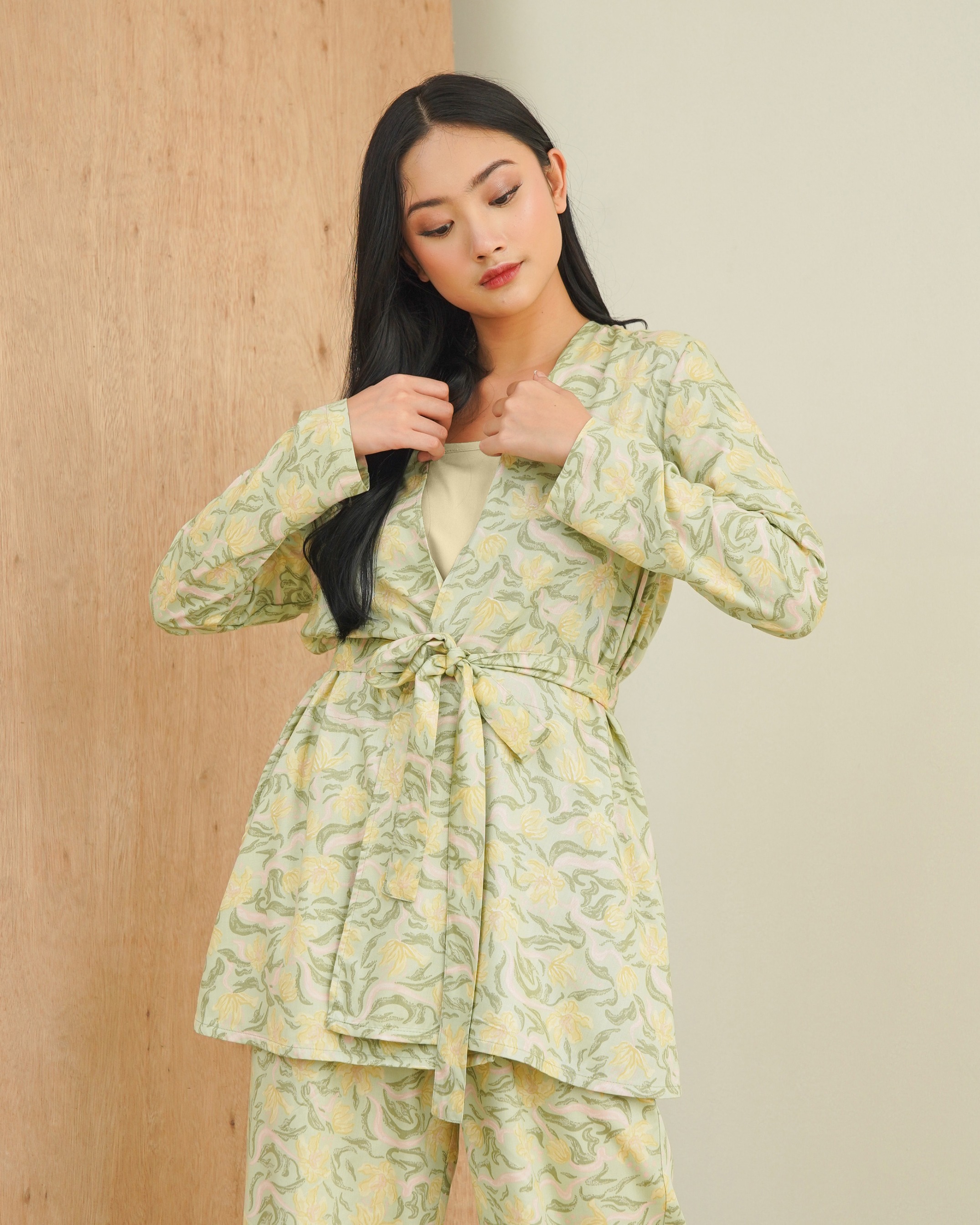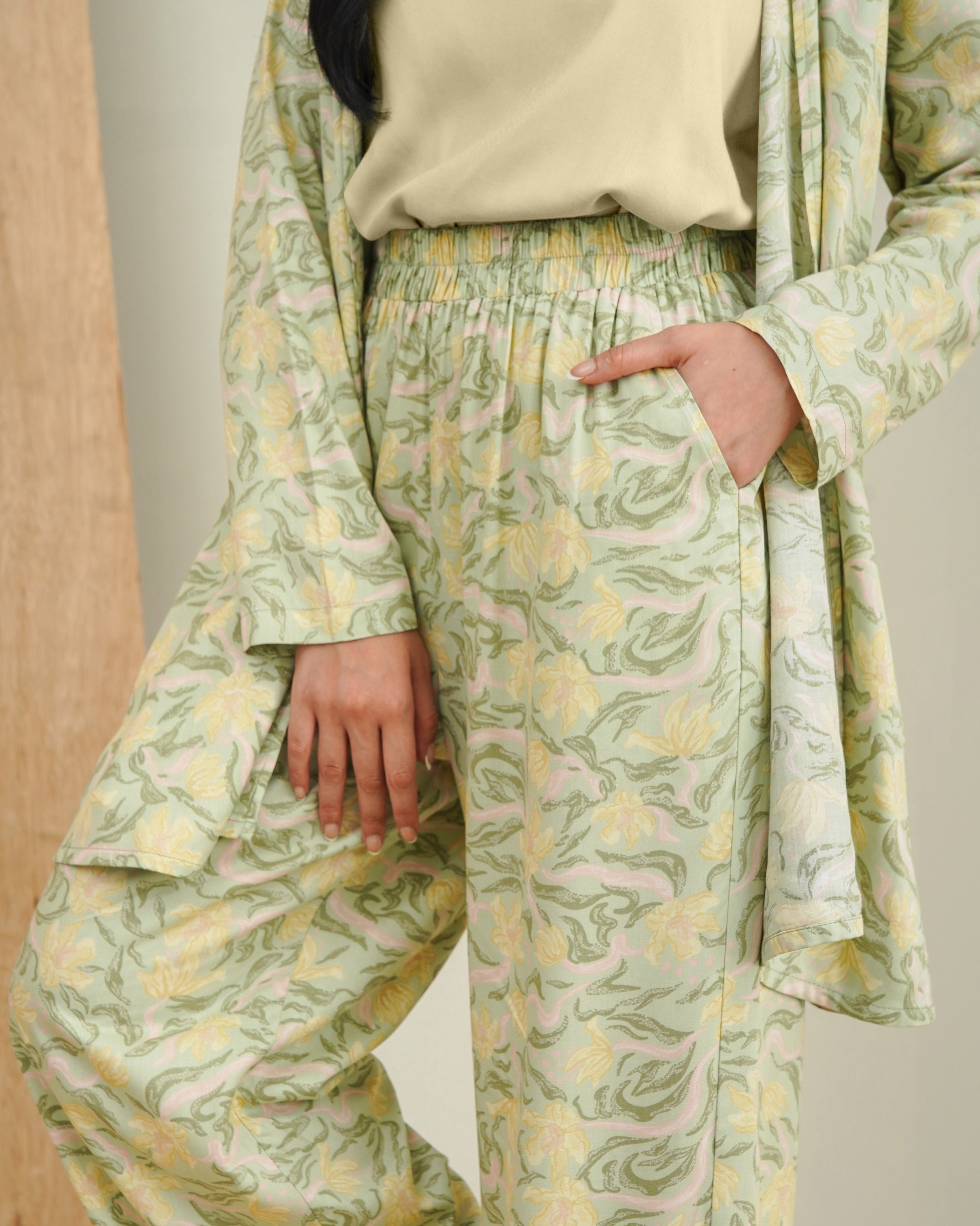 Material : rayon viscose printed, terdapat pocket sisi kanan-kiri pada kimono maupun pants. terdapat tali pinggang