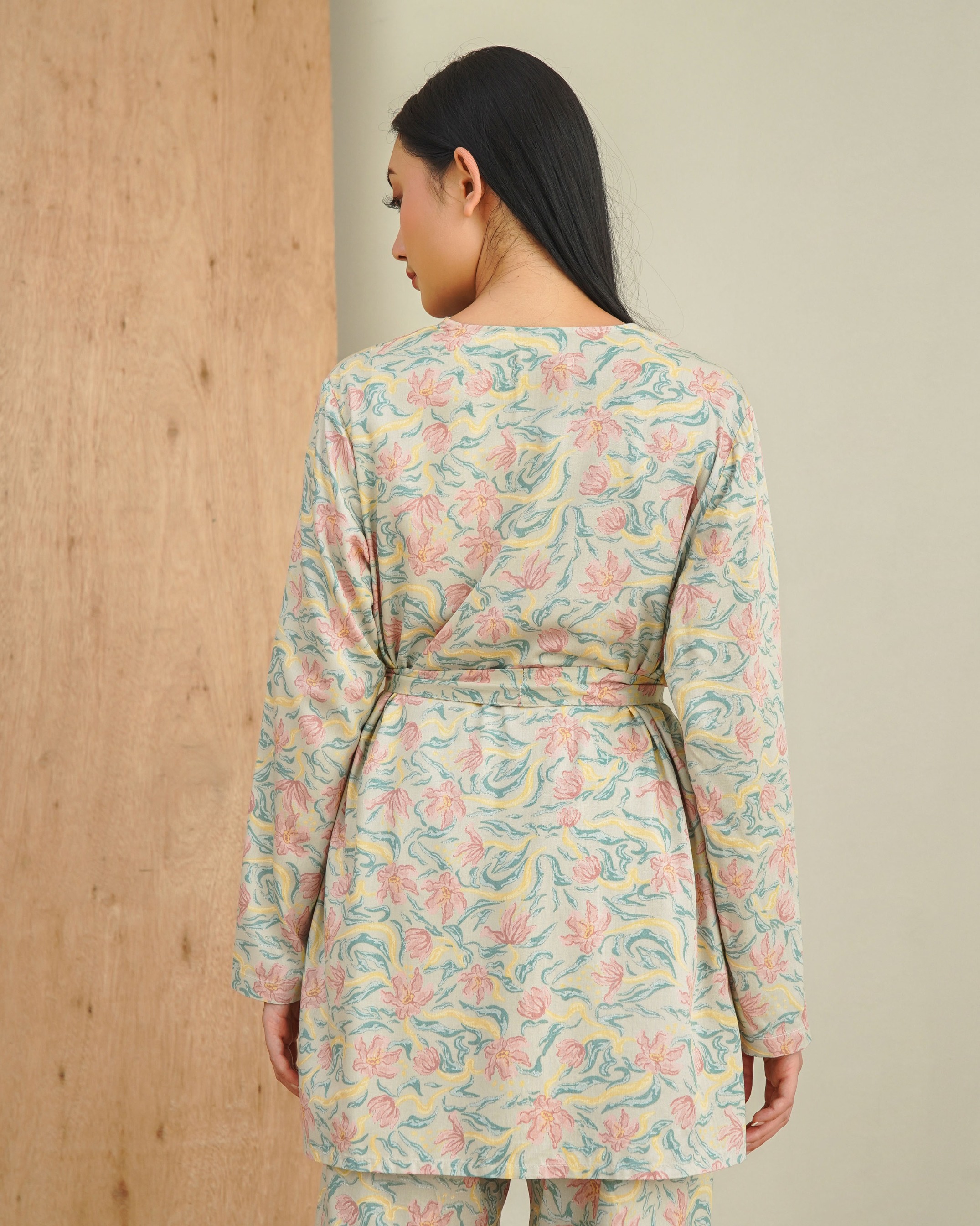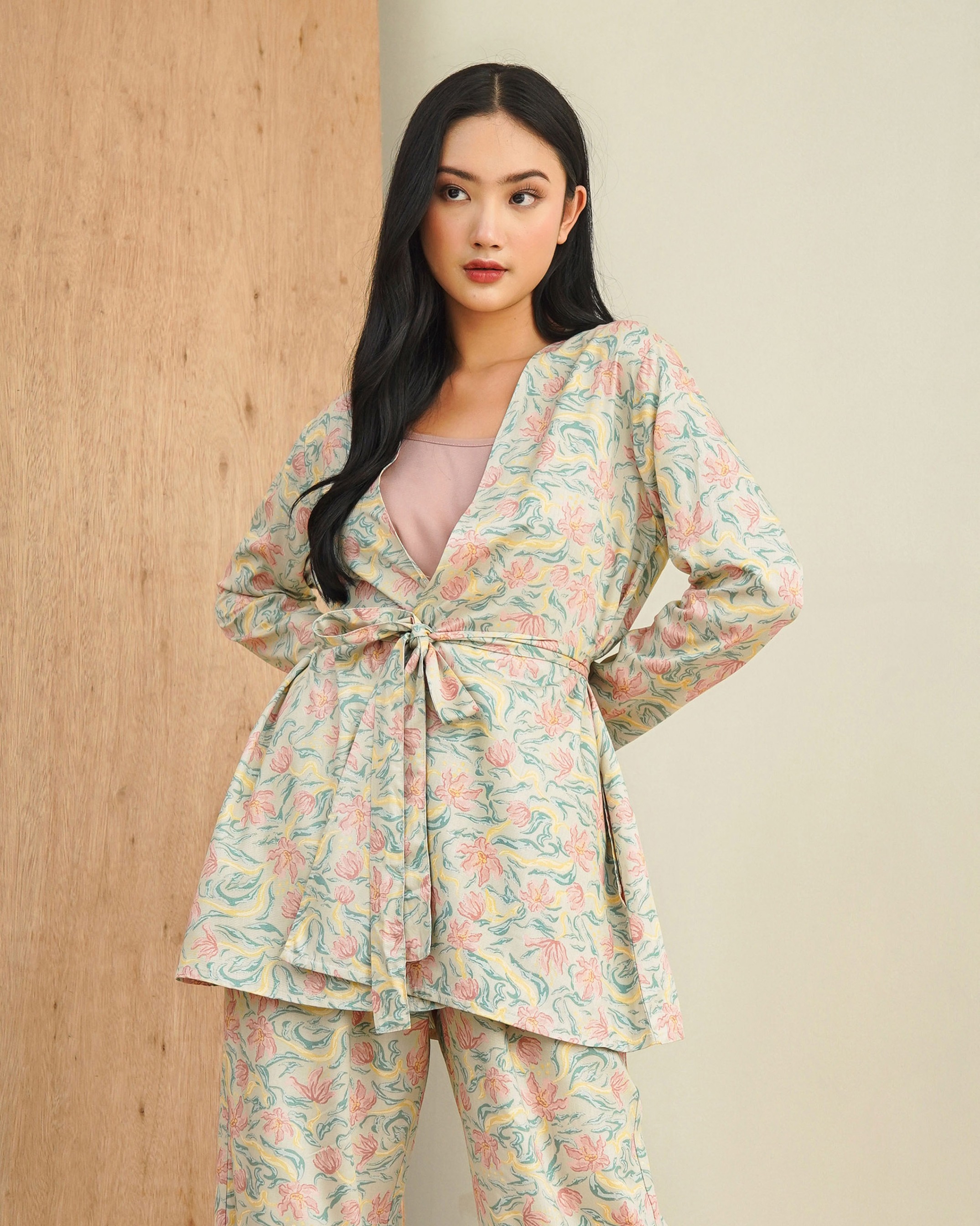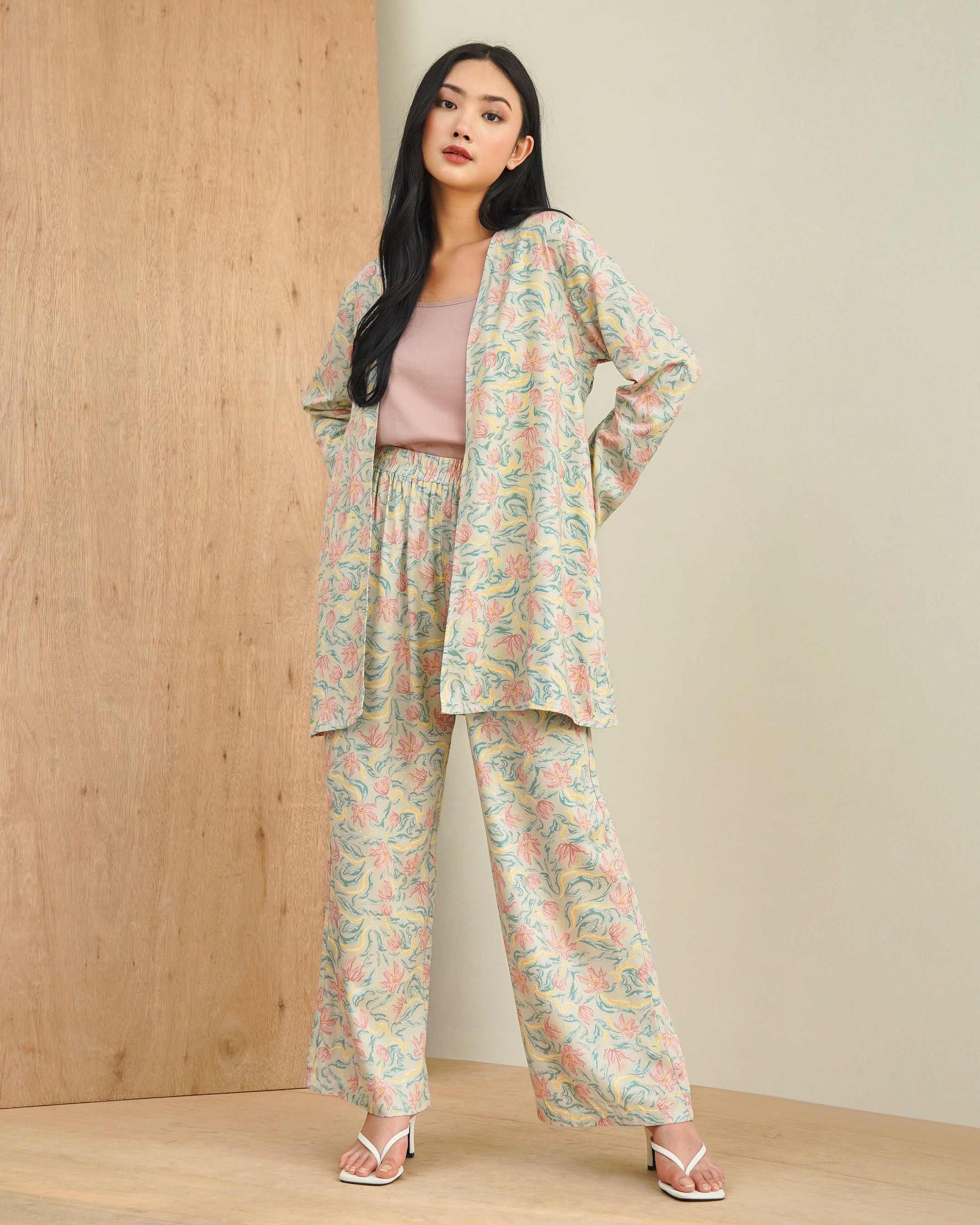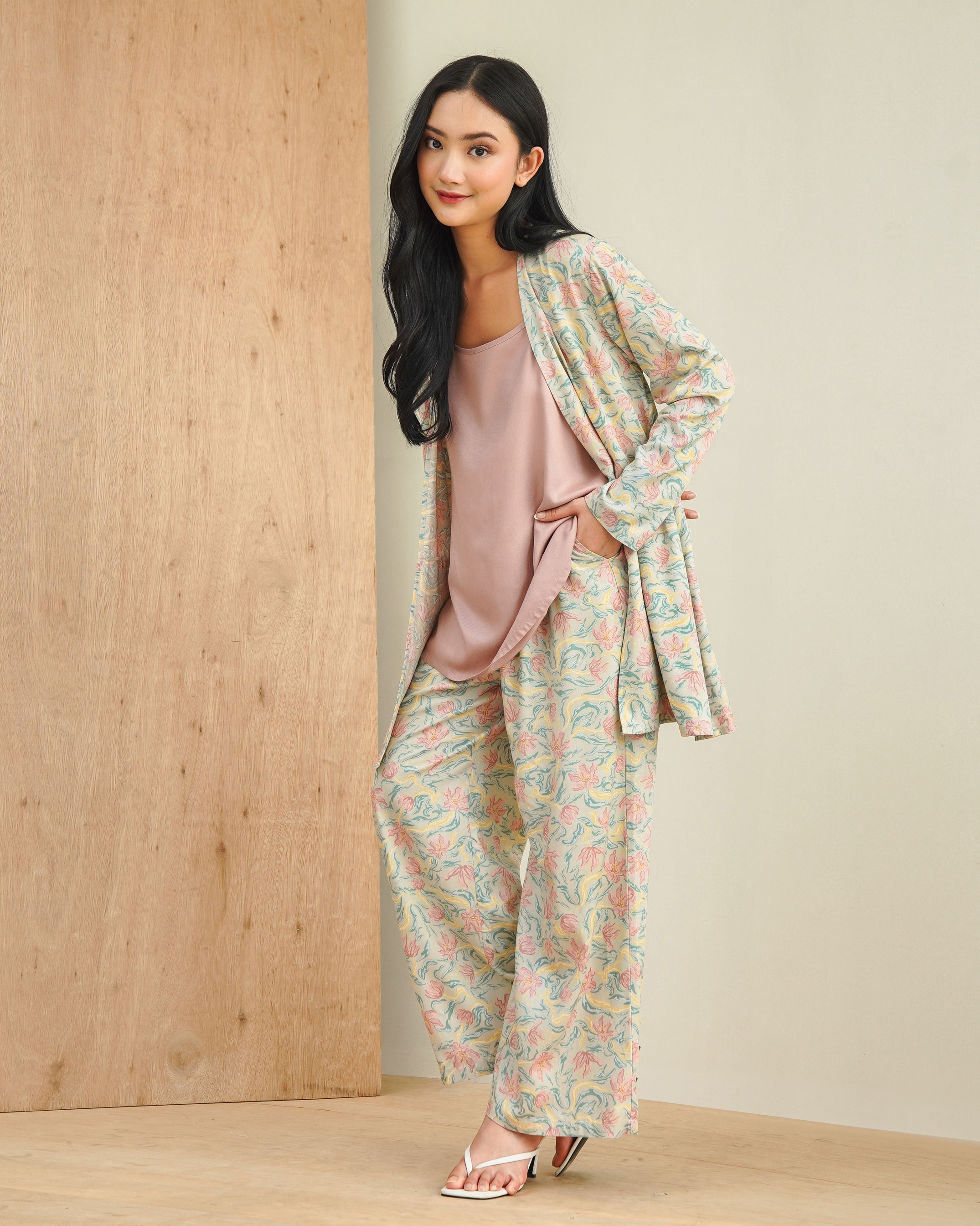 Material : rayon viscose printed, terdapat pocket sisi kanan-kiri pada kimono maupun pants. terdapat tali pinggang