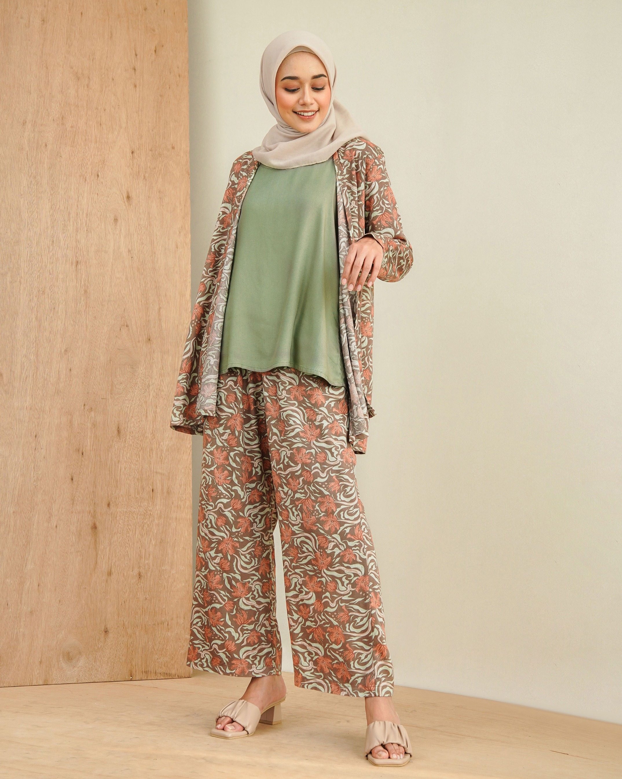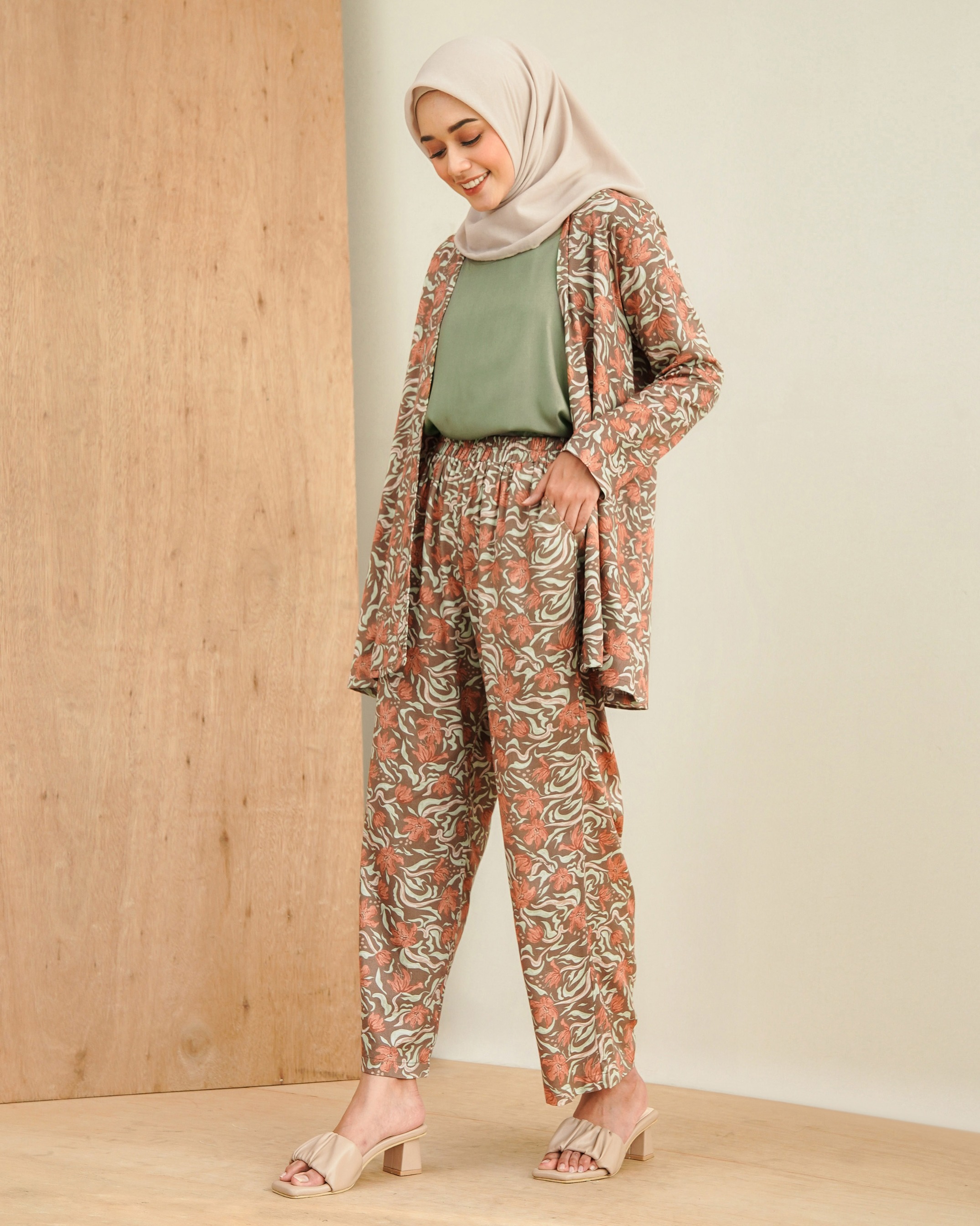 Material : rayon viscose printed, terdapat pocket sisi kanan-kiri pada kimono maupun pants. terdapat tali pinggang