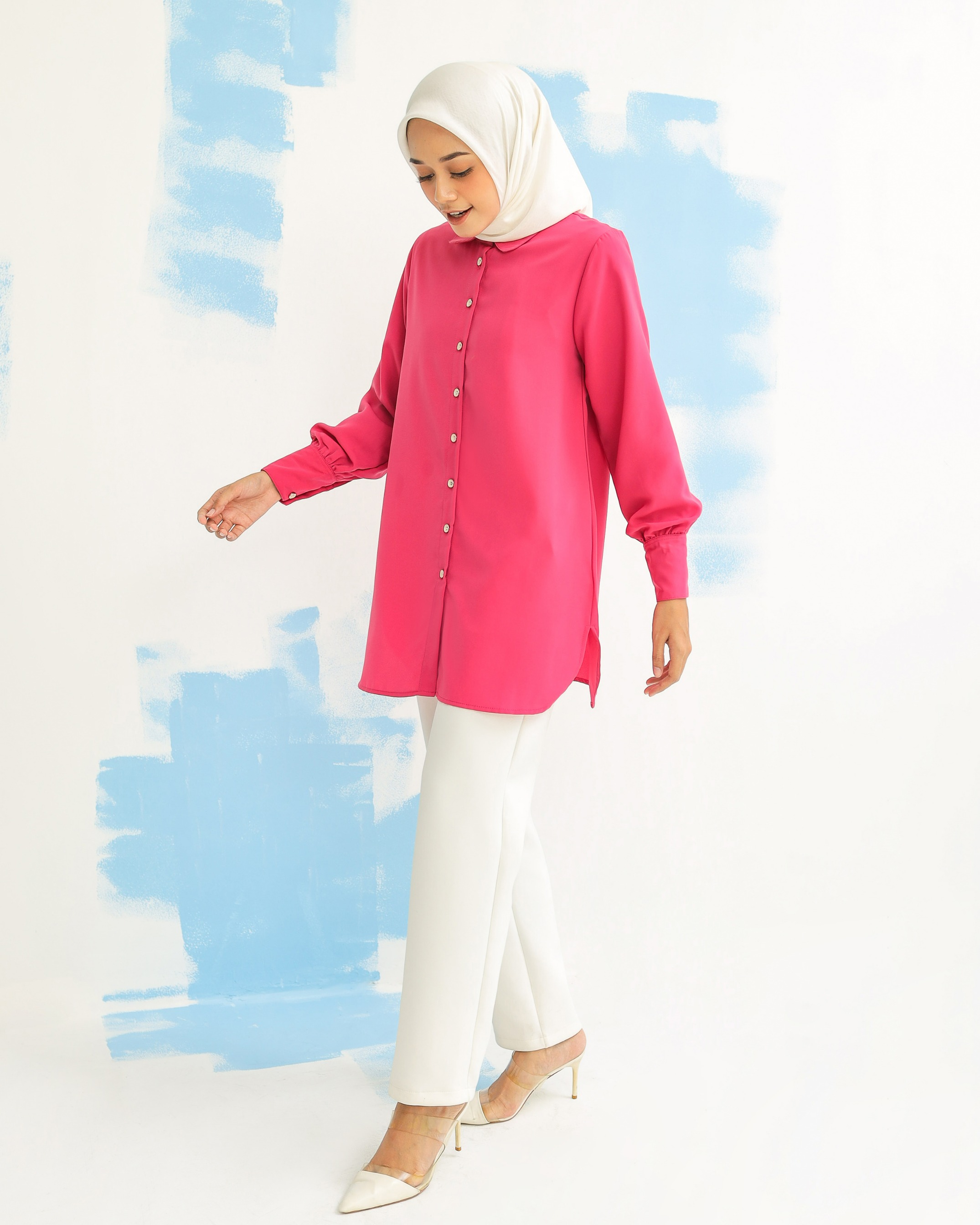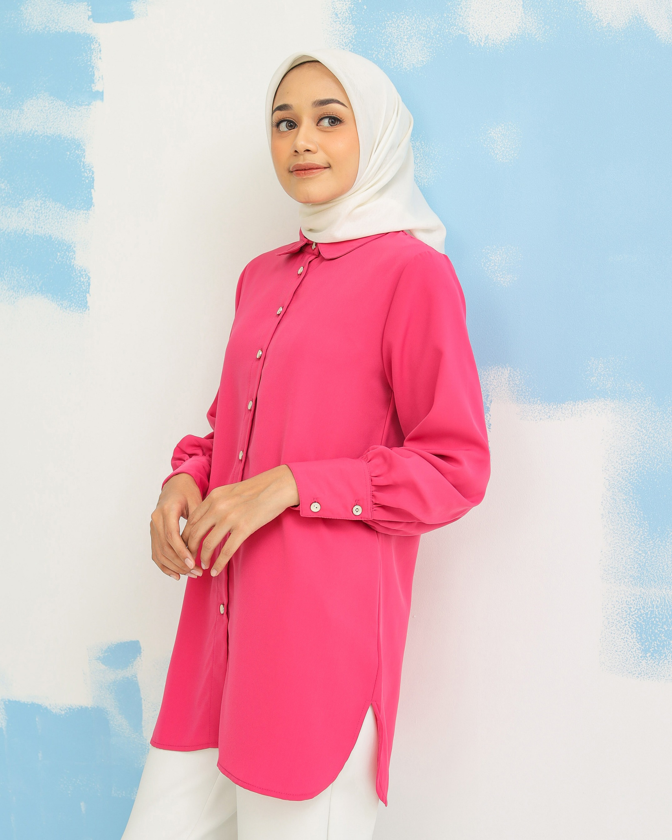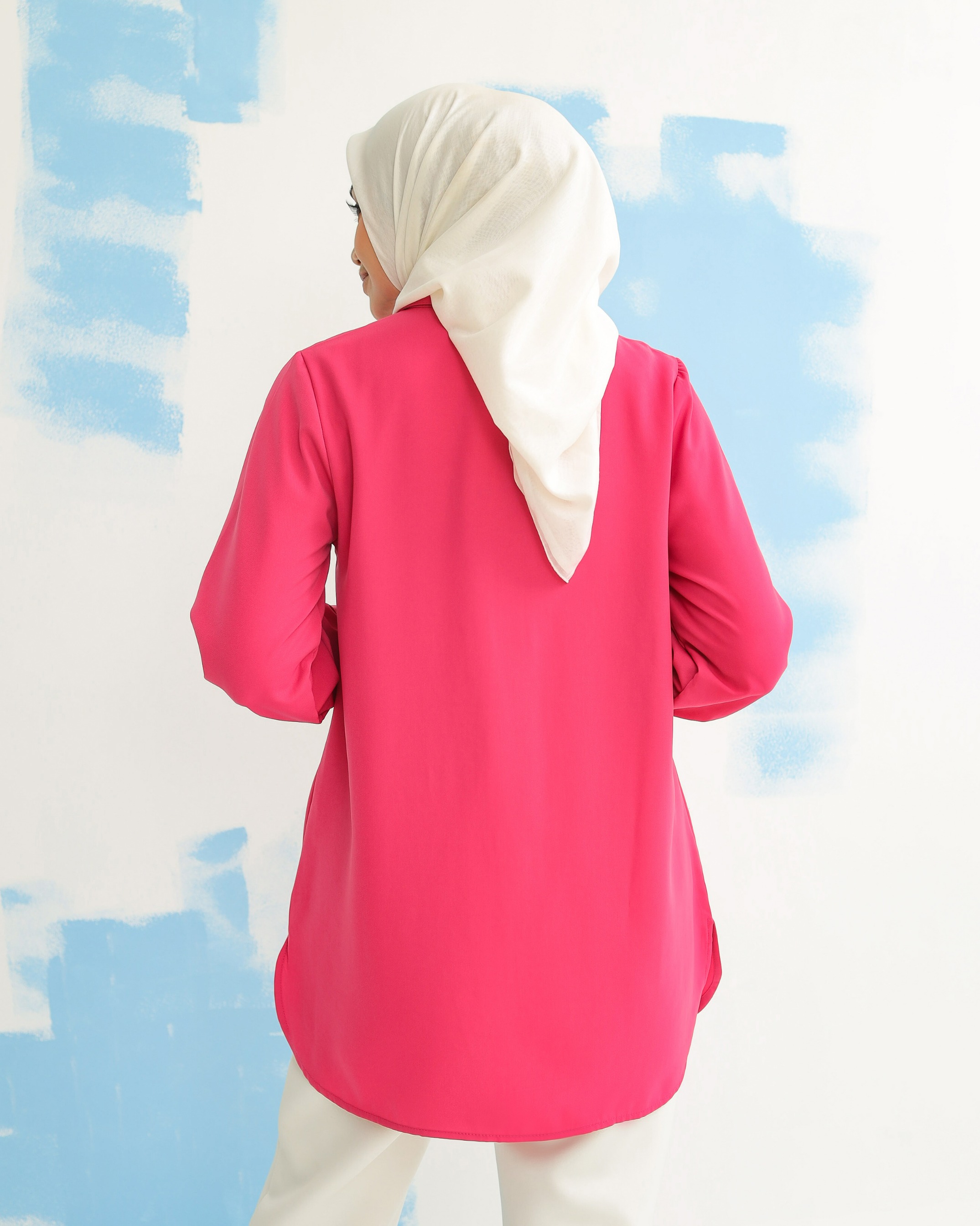 on model size M Materials : fine polyester, tebal, flowy, tidak mudah kusut. comes with 4 colors size XS/S/M/L/XL/XXL Lingkar Dada: 90/94/98/104/110/120 Kerung Lengan: 45/47/49/52/55/60 Panjang Lengan: 57-58 cm Panjang Top: 80-82cm