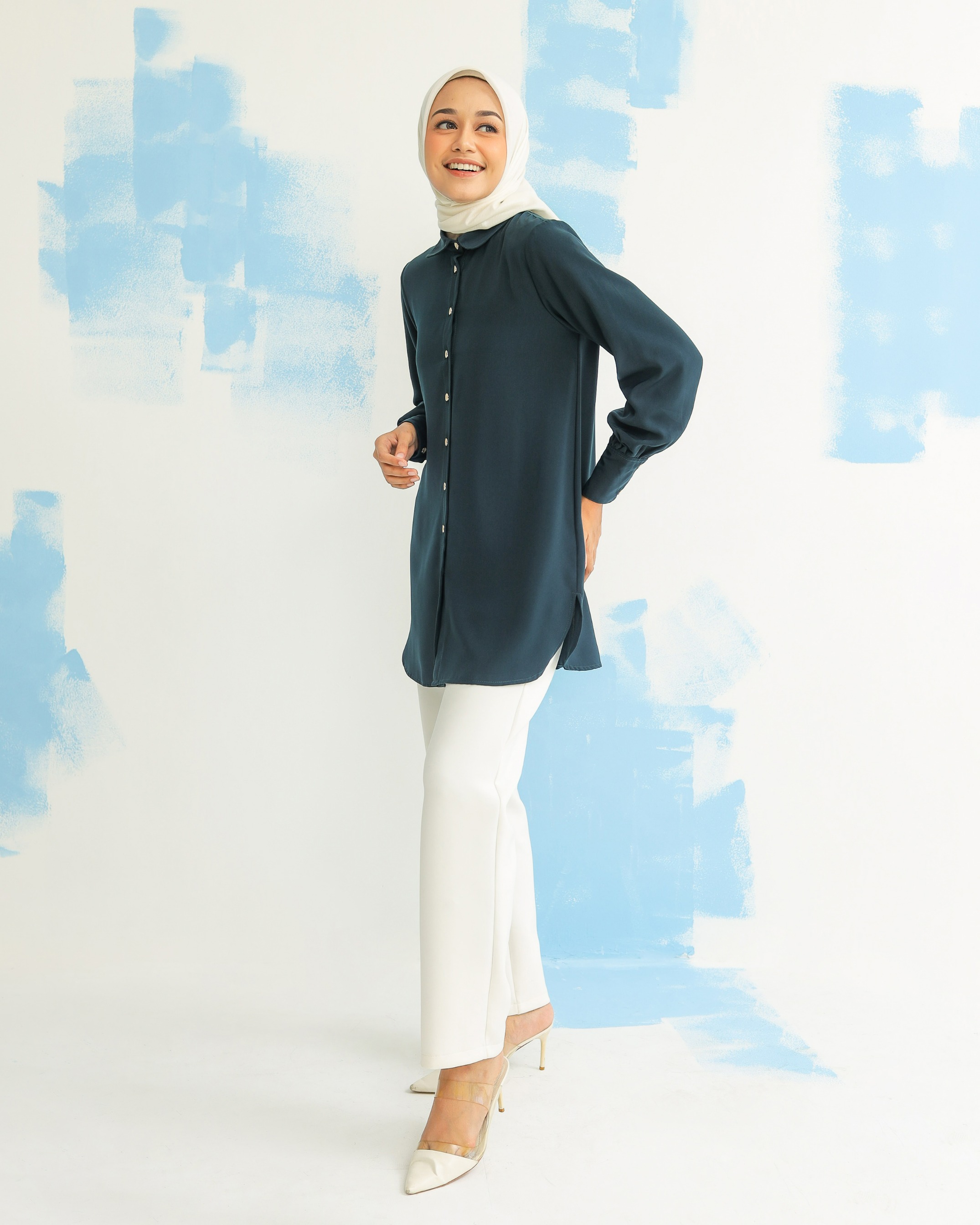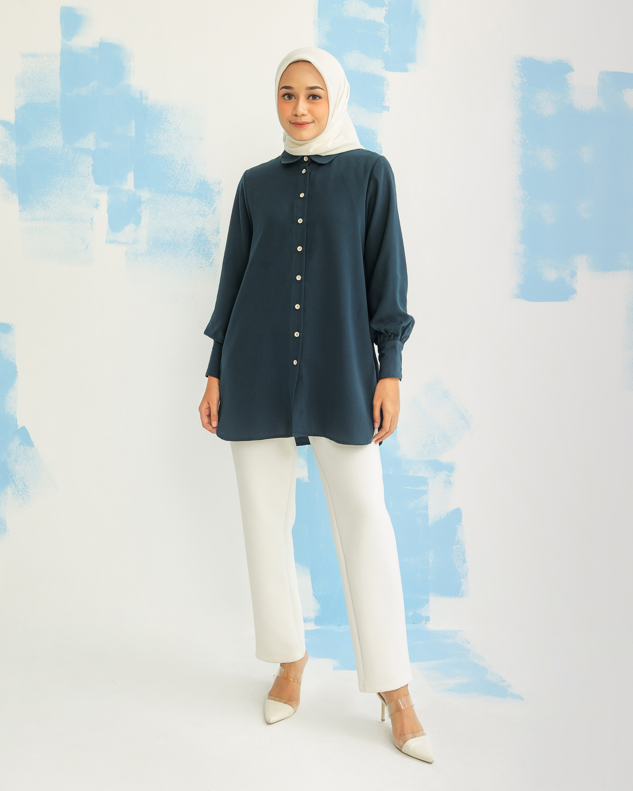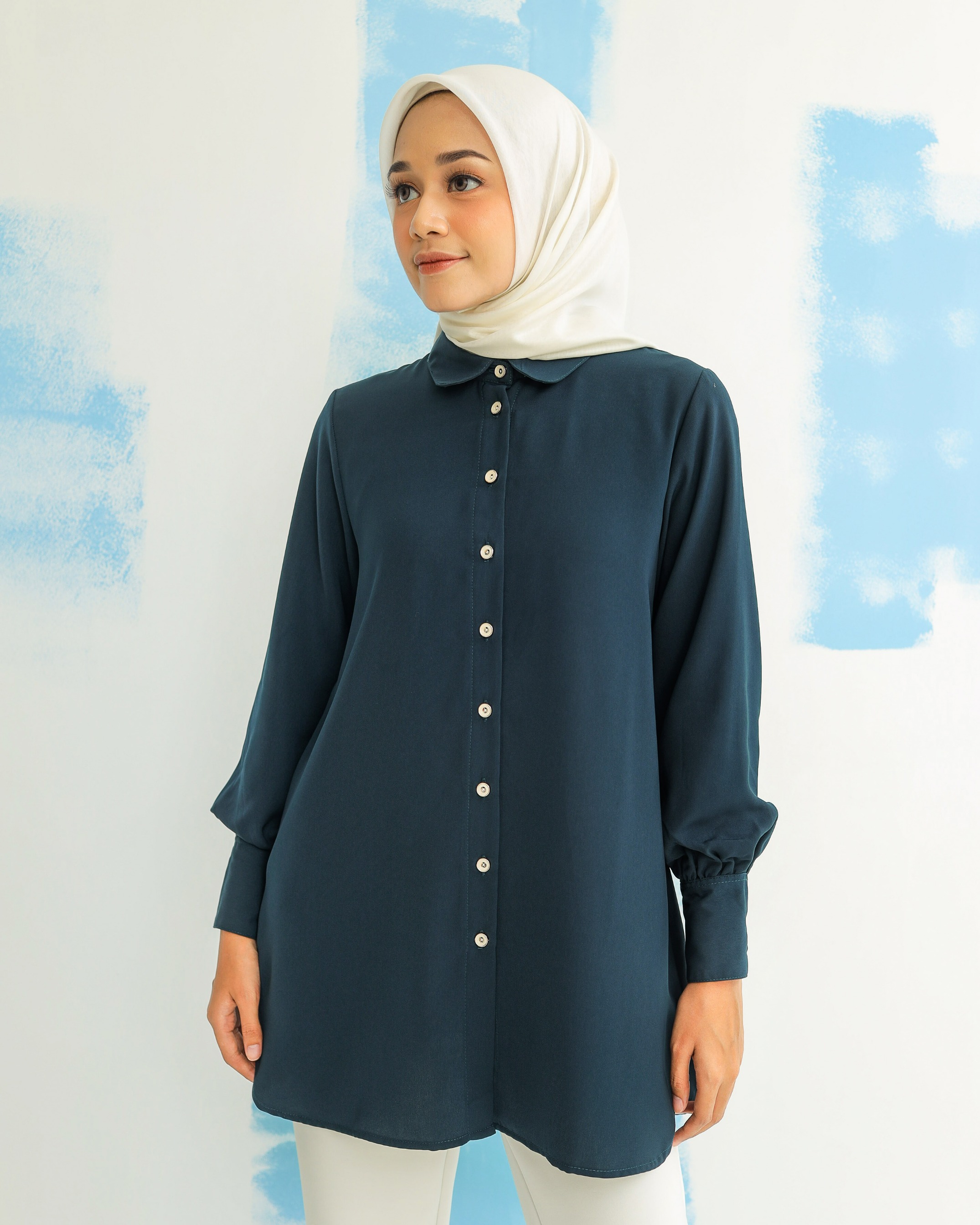 on model size M Materials : fine polyester, tebal, flowy, tidak mudah kusut. comes with 4 colors size XS/S/M/L/XL/XXL Lingkar Dada: 90/94/98/104/110/120 Kerung Lengan: 45/47/49/52/55/60 Panjang Lengan: 57-58 cm Panjang Top: 80-82cm