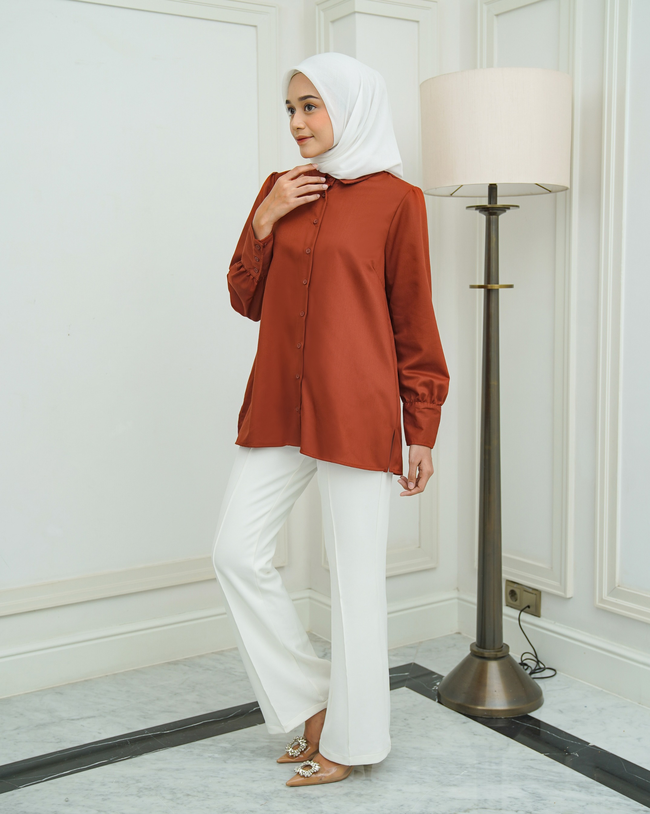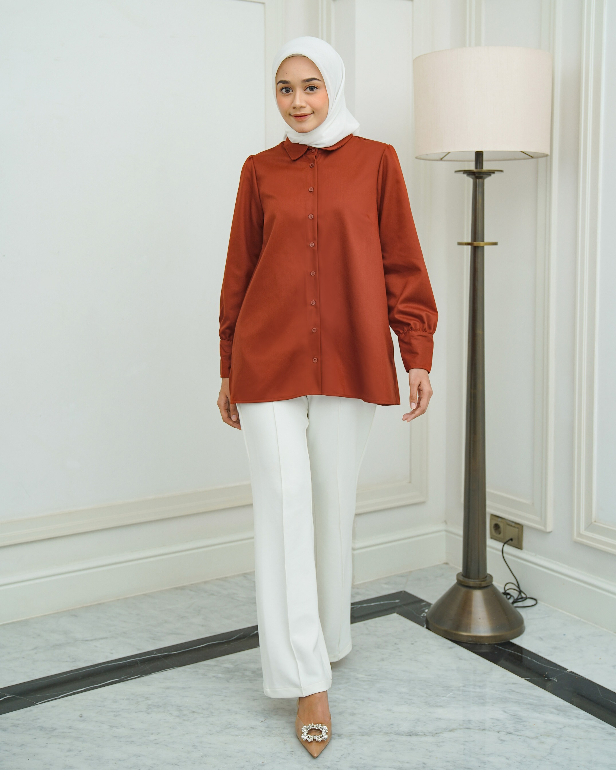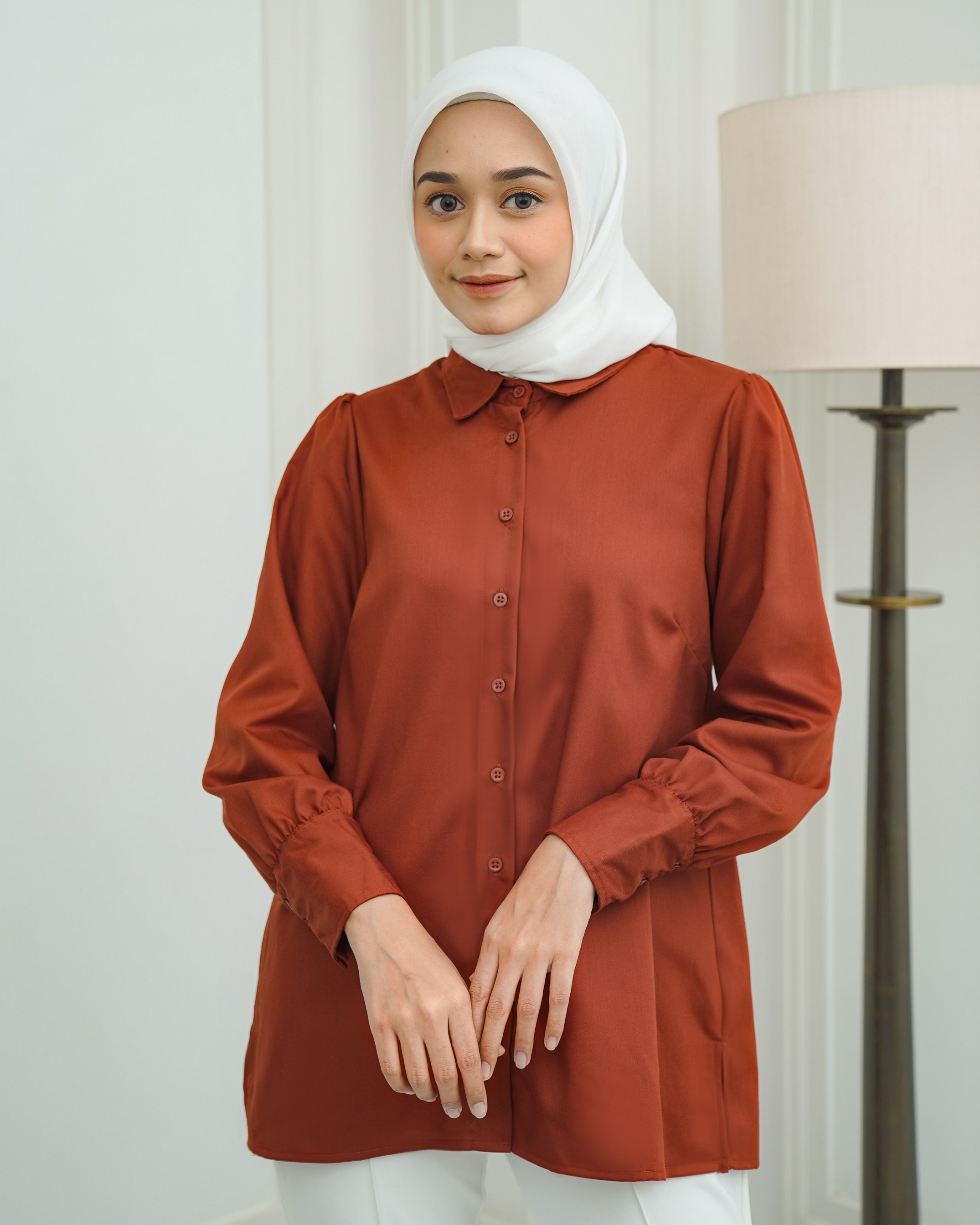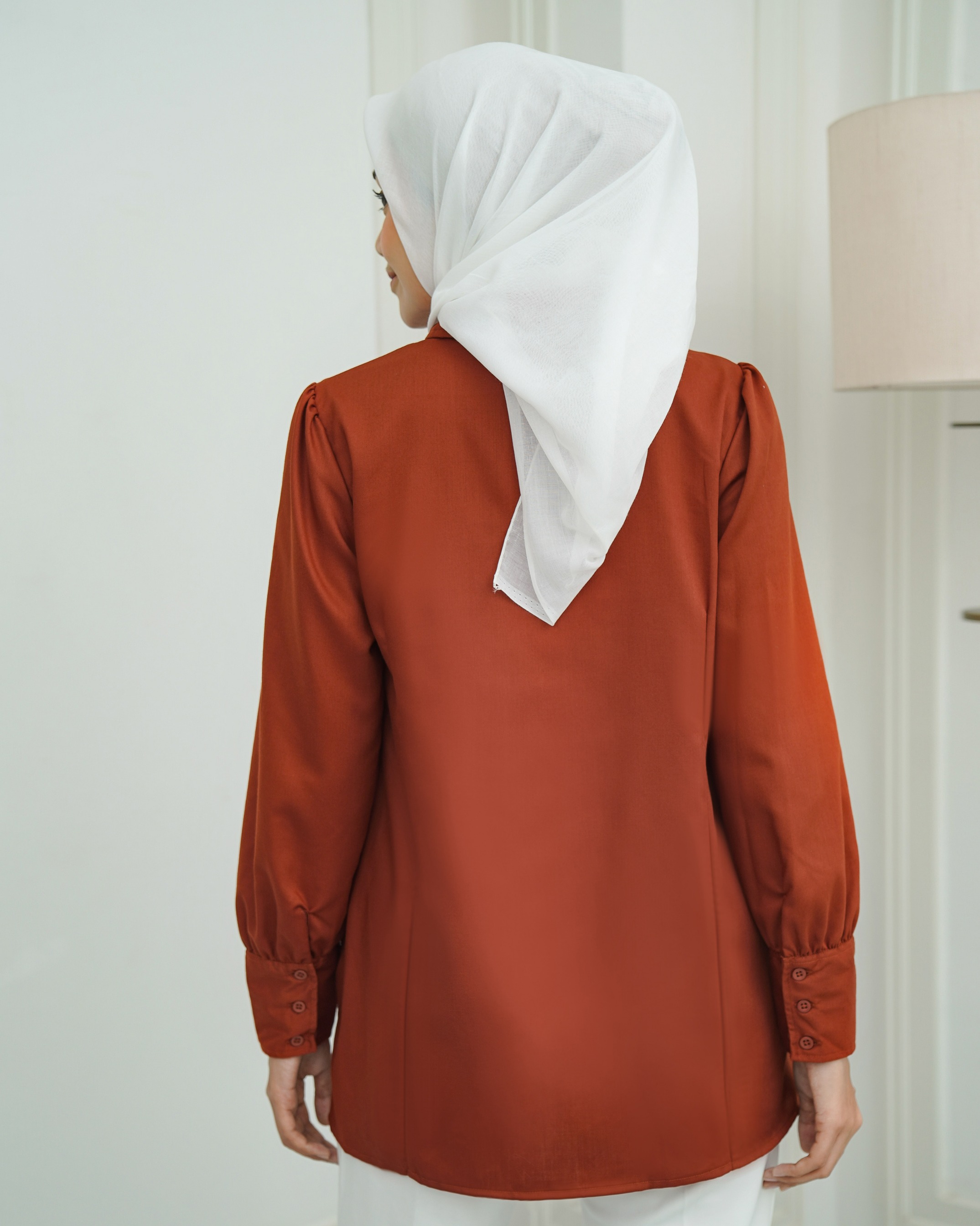 On model pakai size M • Materials : Katun ANTIKUSUT, cuttingan daily dengan details puff dibagian pundak. Bukaan full kancing depan, manset adjustable. Comes with 5 colors Size XS S M L XL XXL Lingkar Dada : 90/94/98/104/110/120 Kerung Lengan : 45/47/49/52/55/60 Panjang Lengan : 61 - 62 cm Panjang Top : 72 - 75 cm