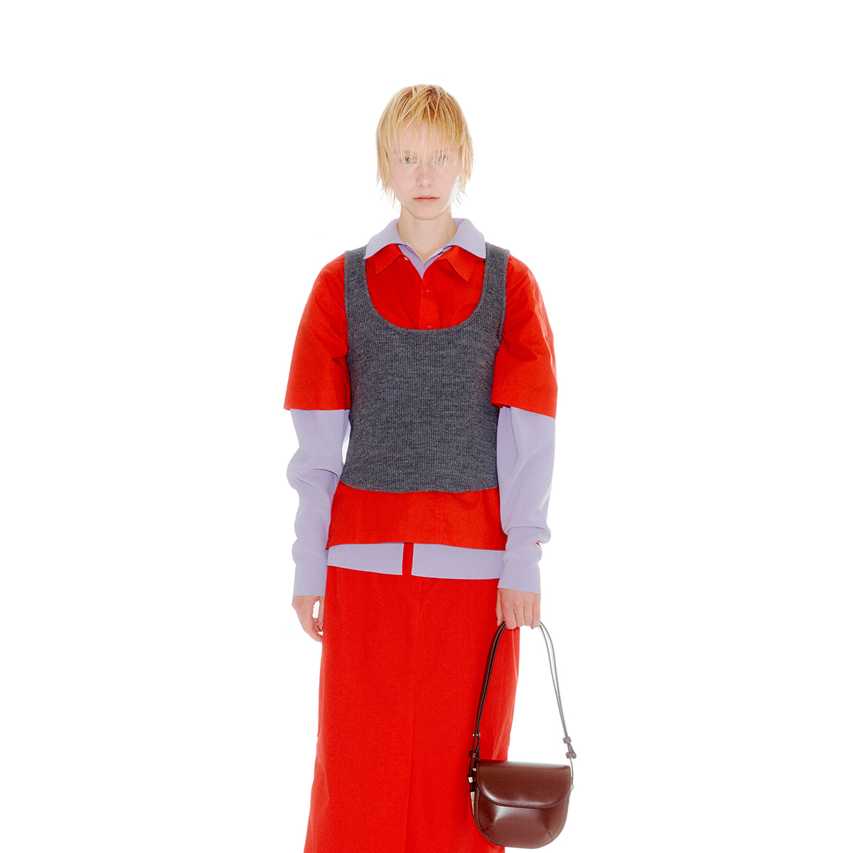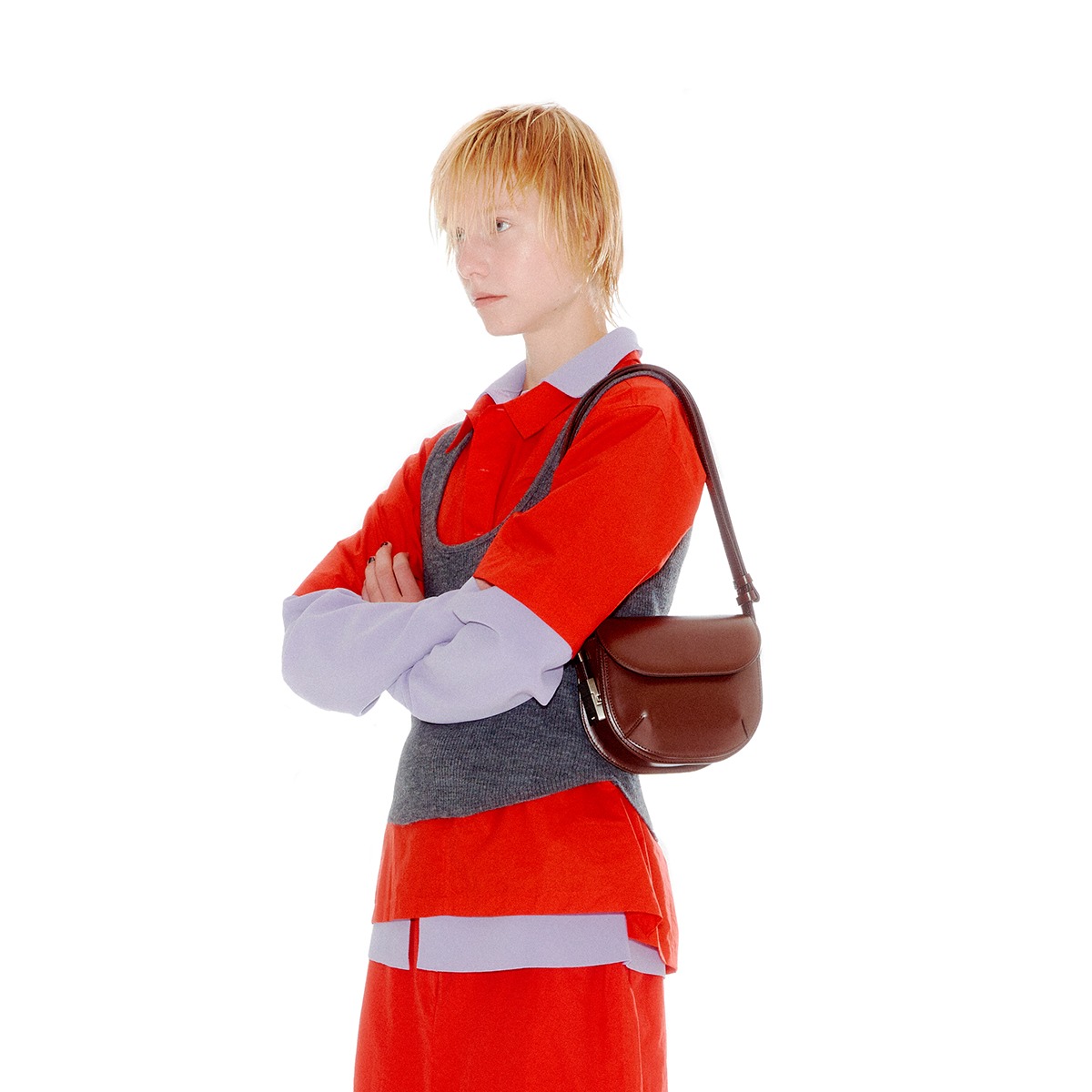 Minimal, modern form, robust, and practical top-and-bottom hardware "BAU" is a self-designed and developed OSOI decoration for a complete product.CUBBY uses a smooth leather material in a round shape, and the stitch line on the front gives a point to the