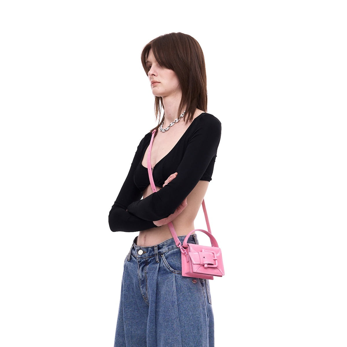 It is a compact square-shaped MICRO BAG with a developed design based on the main hardware of the BROCLE series, "Buckle."The buckle, which accents the image as if it were a belt, is the signature decoration of the BROCLE series.The card slot and pocket o