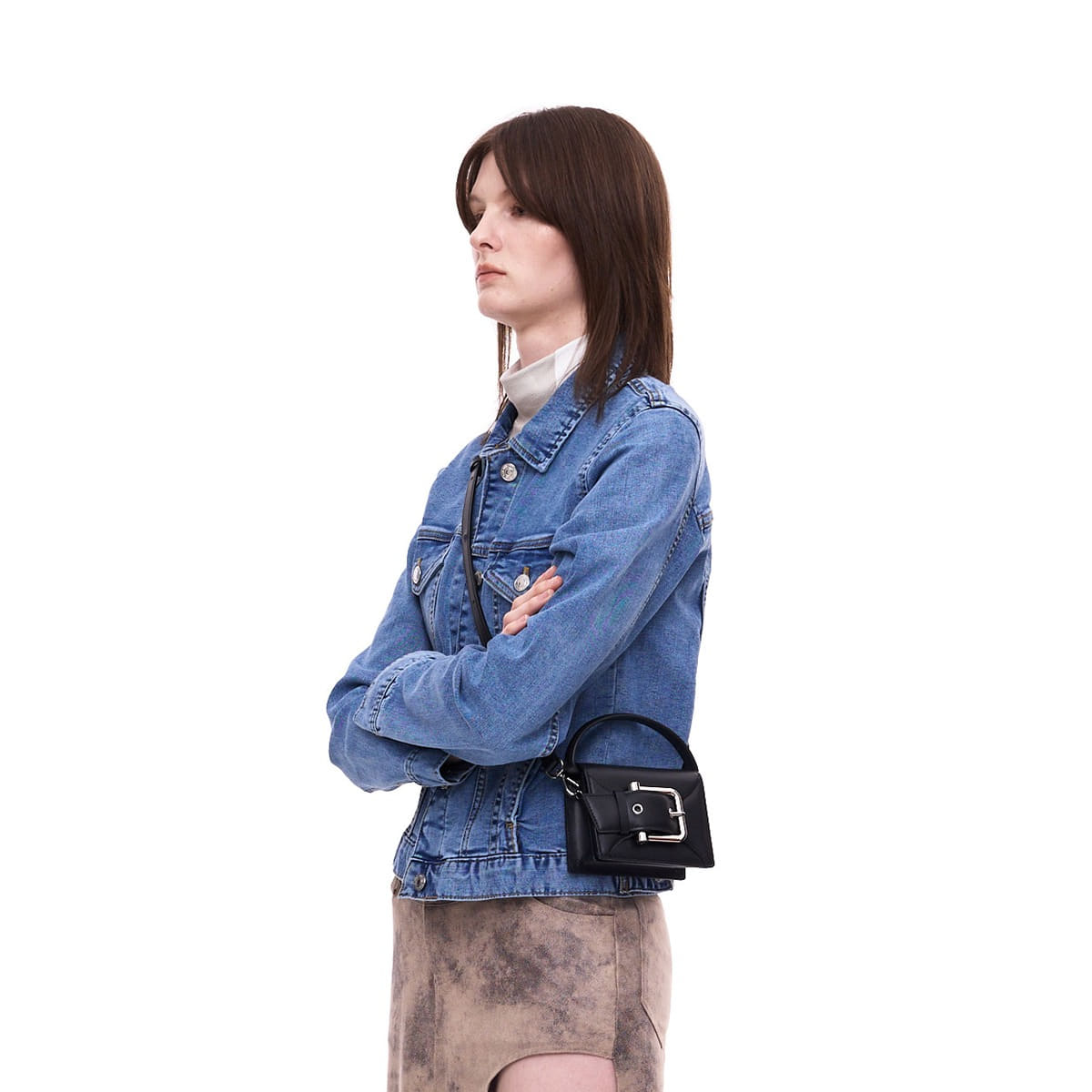 It is a compact square-shape MICRO BAG with a developed design based on "Buckle," the main hardware of the BROCLE series.The buckle with an accent on the image as if it were a belt is the signature decoration of the BROCLE series.The card slots and pocket