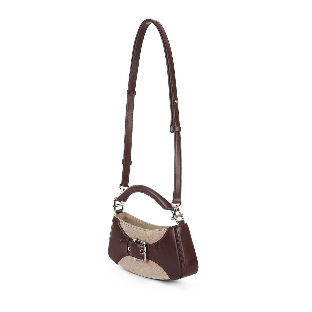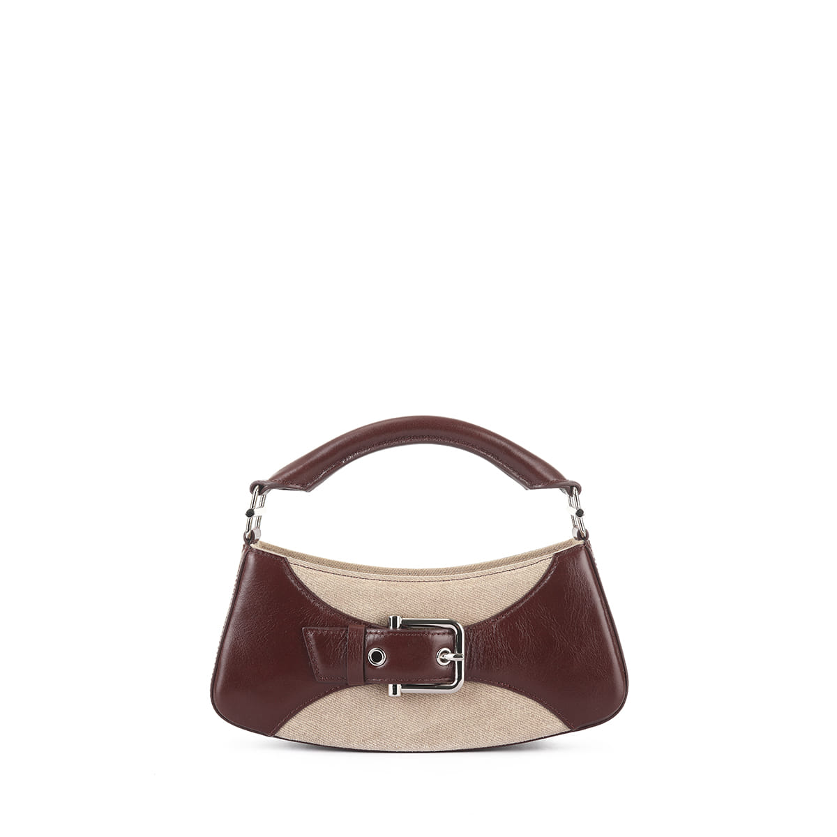 It is a mini bag with a round square shape that feels solid and stable with a design developed based on the main hardware of the BROCLE series, the "buckle". The buckle, which adds an accent to the image of a belt, is the signature decoration of the BROCL