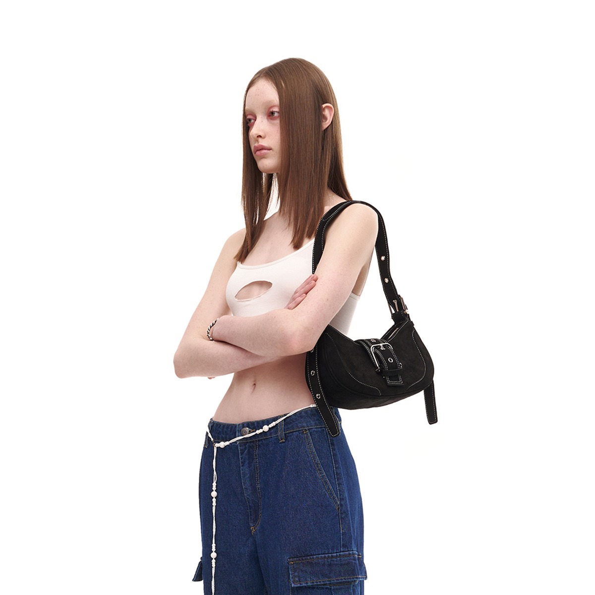 Based on the "buckle", the main hardware of the BROCLE series, the design was developed and perforated details were added to capture the personality of OSOI. The wide belt design on the front and the strap that falls naturally become the point, and the le