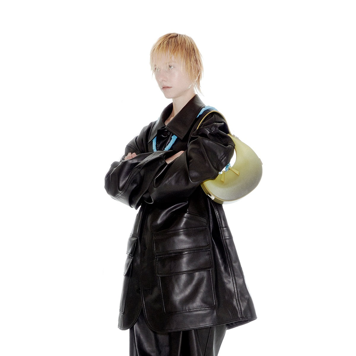Minimal, modern form, robust, and practical top-and-bottom hardware "BAU" is a self-designed and developed OSOI decoration for a complete product.It's a wearable bag with a curved silhouette and a three-dimensional feel.It's compact and can be lifted ligh