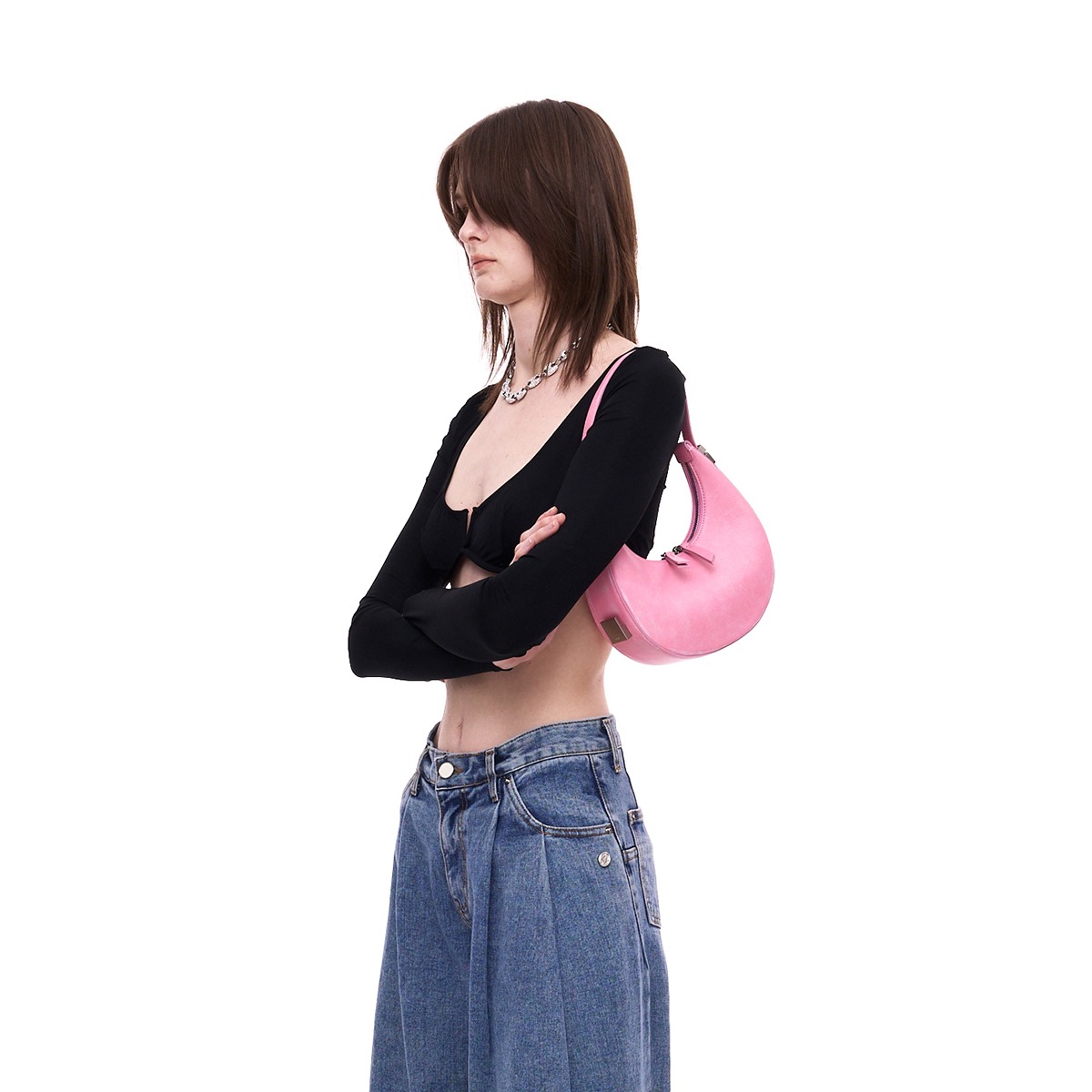 Minimal, modern form, robust, and practical top-and-bottom hardware "BAU" is a self-designed and developed OSOI decoration for a complete product.It's a wearable bag with a curved silhouette and a three-dimensional feel.It's compact and can be lifted ligh
