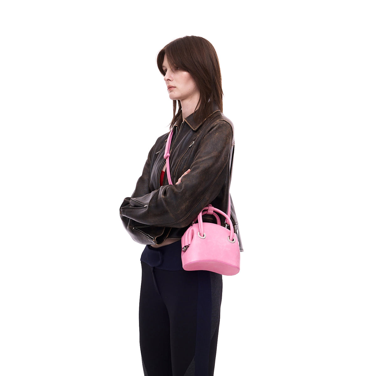 We reconstructed it into MINI BAG by utilizing the shape and details of the existing CIRCLE BROT.It is a product with an irregular but natural crack-like texture.It can be worn as a cross-body with a detachable long strap or as a light tote.*CIRCLE BROT i