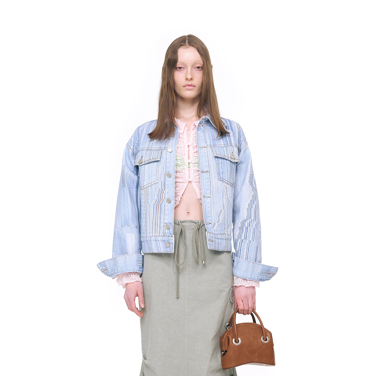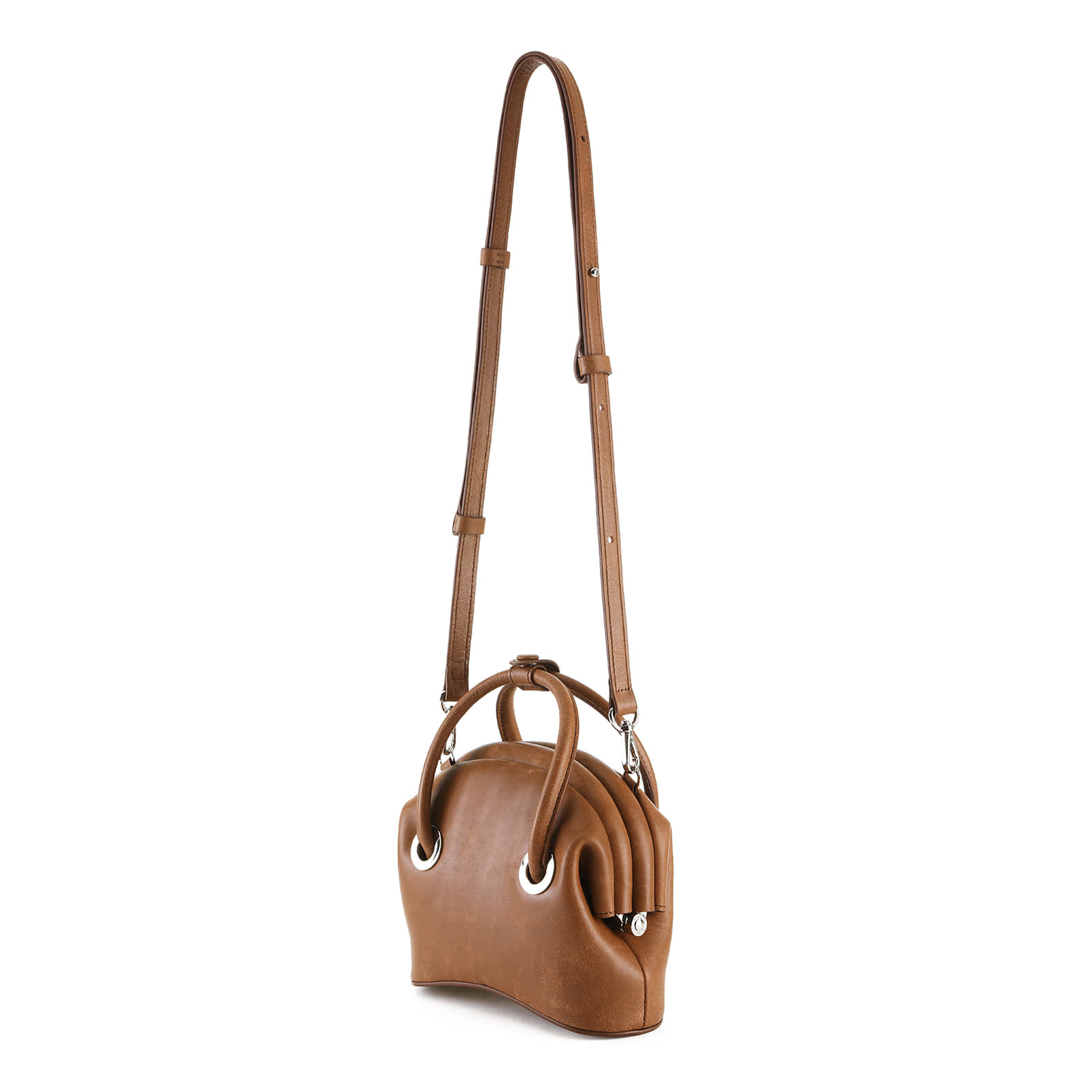 We reconstructed it into MINI BAG by utilizing the shape and details of the existing CIRCLE BROT.It is a product with an irregular but natural crack-like texture.It can be worn as a cross-body with a detachable long strap or as a light tote.*CIRCLE BROT i
