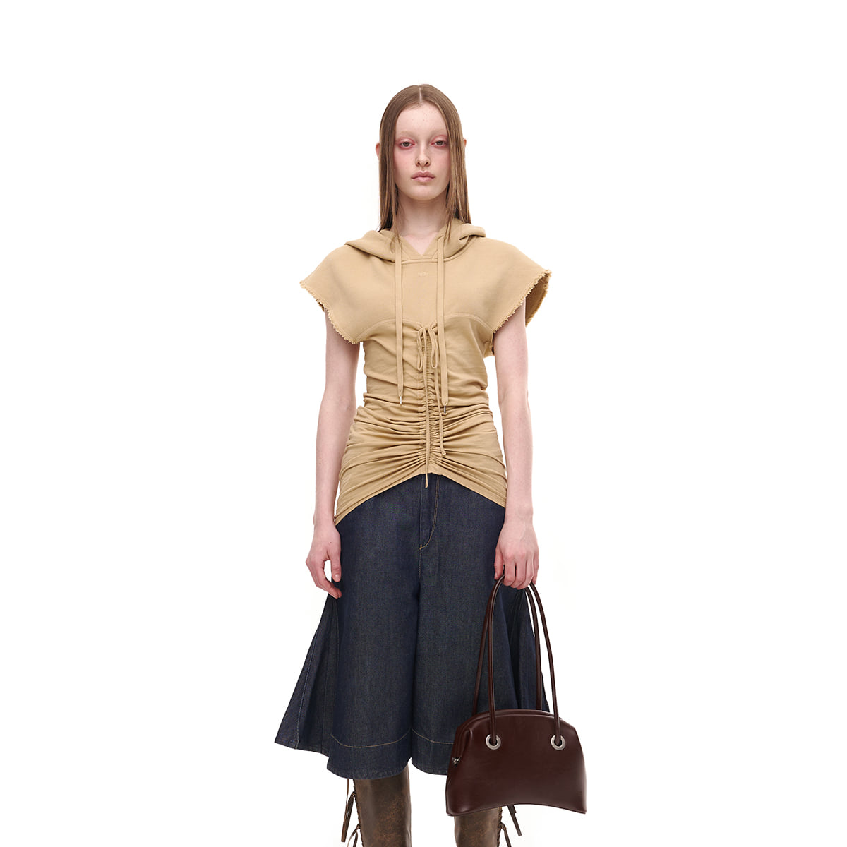 It is a CIRCLE BROT with a witty design with a unique shape and perforated details. It is an irregular but natural cracked texture that stands out. It can be worn as a tote or shoulder bag, and can be stored by fixing the strap when not in use. *CIRCLE BR