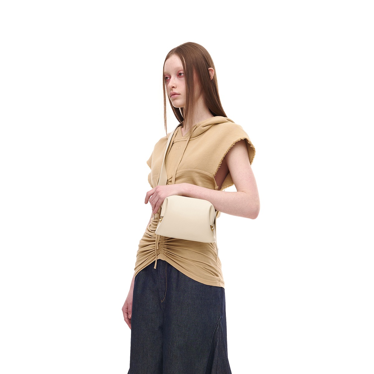 OSOI's signature line is a bag with a unique shape. The opening/closing method using natural curved lines and frames is unique to BROT BAG. The length of the strap can be adjusted with a buckle without a separate perforation, and the compact size makes it