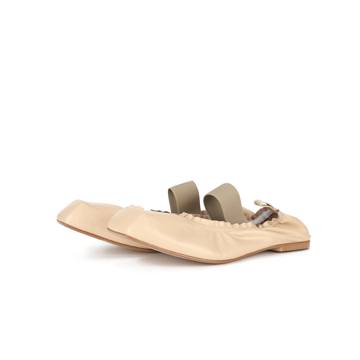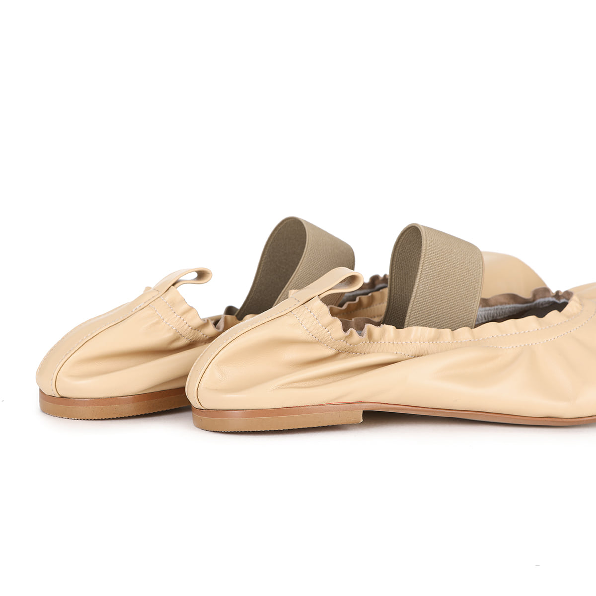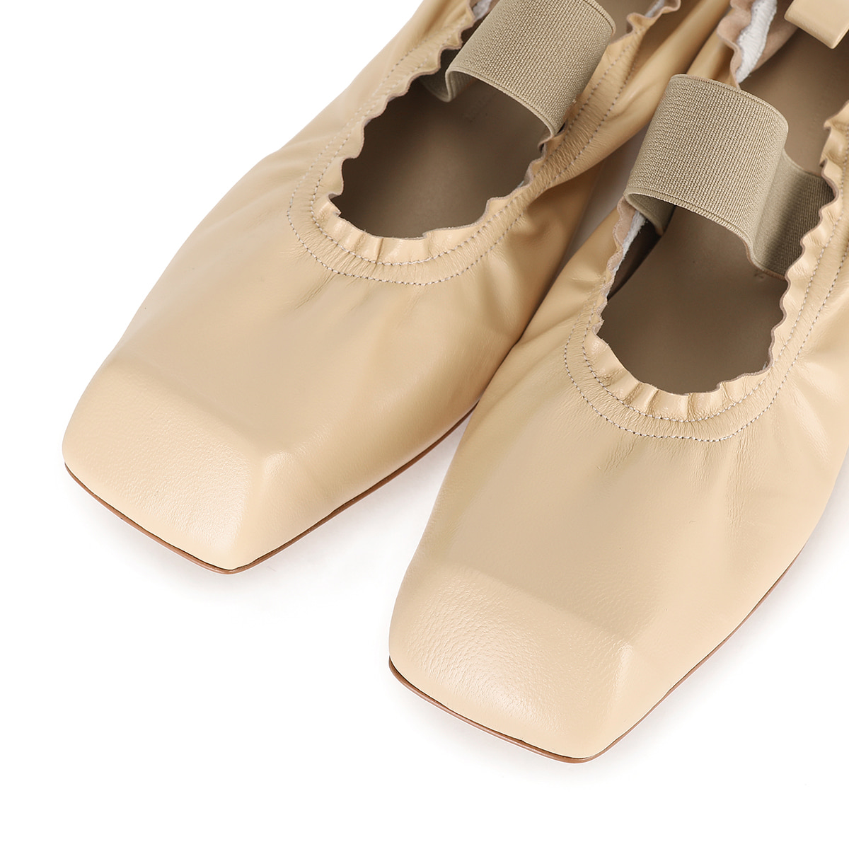These are attractive flats with a unique square toe design.It's a design reminiscent of ballerina's toshoes, and the wrinkles around the top of the foot create a girlish mood.The banding finish that holds the top of the foot provides a stable fit.*SHOES t