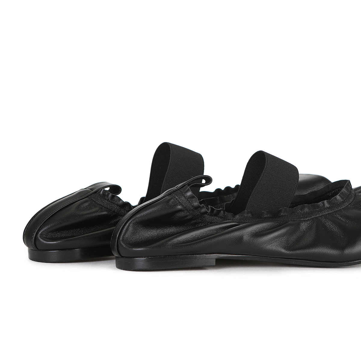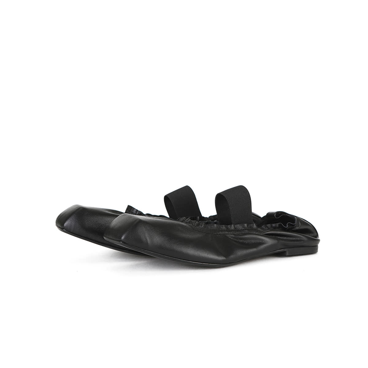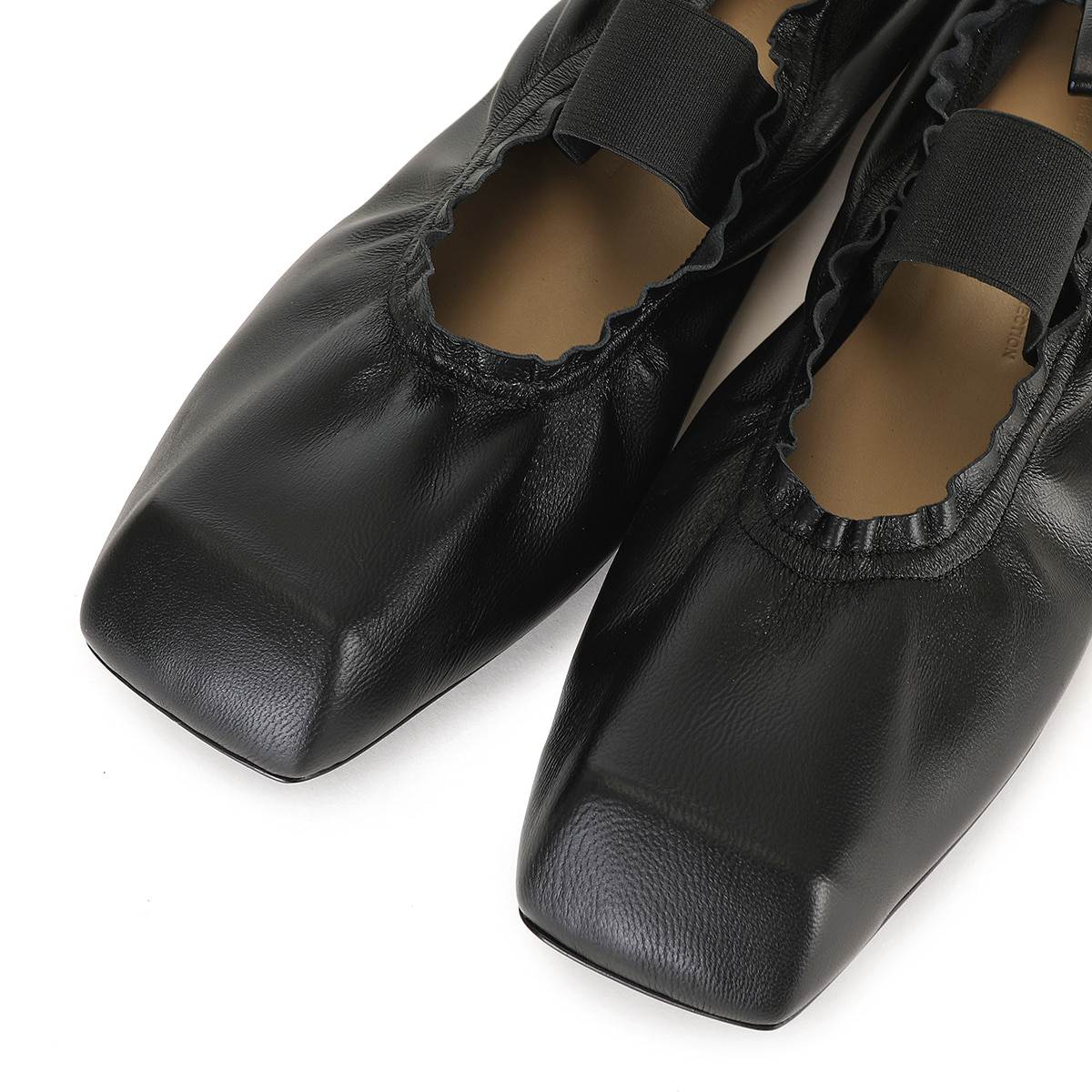 These are attractive flats with a unique square toe design.It's a design reminiscent of ballerina's toshoes, and the wrinkles around the top of the foot create a girlish mood.The banding finish that holds the top of the foot provides a stable fit.*SHOES t