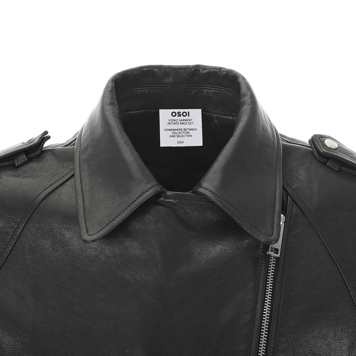 It's a rider jacket with raglan sleeves that emphasizes the shoulder line.It can feature a cropped style, and is made of soft natural sheepskin with a two-tone color.*Because of the nature of natural leather, it is vulnerable to moisture, so please store