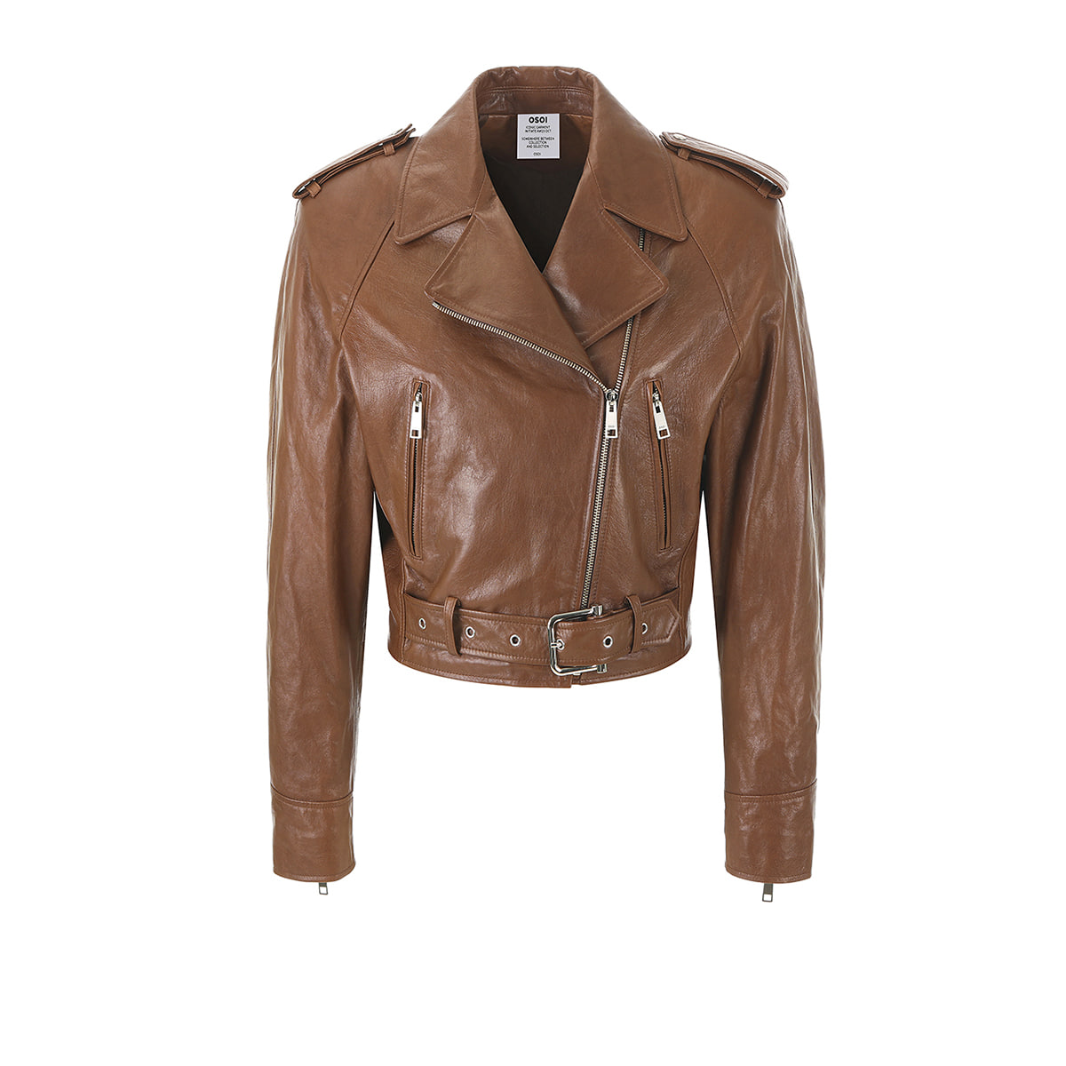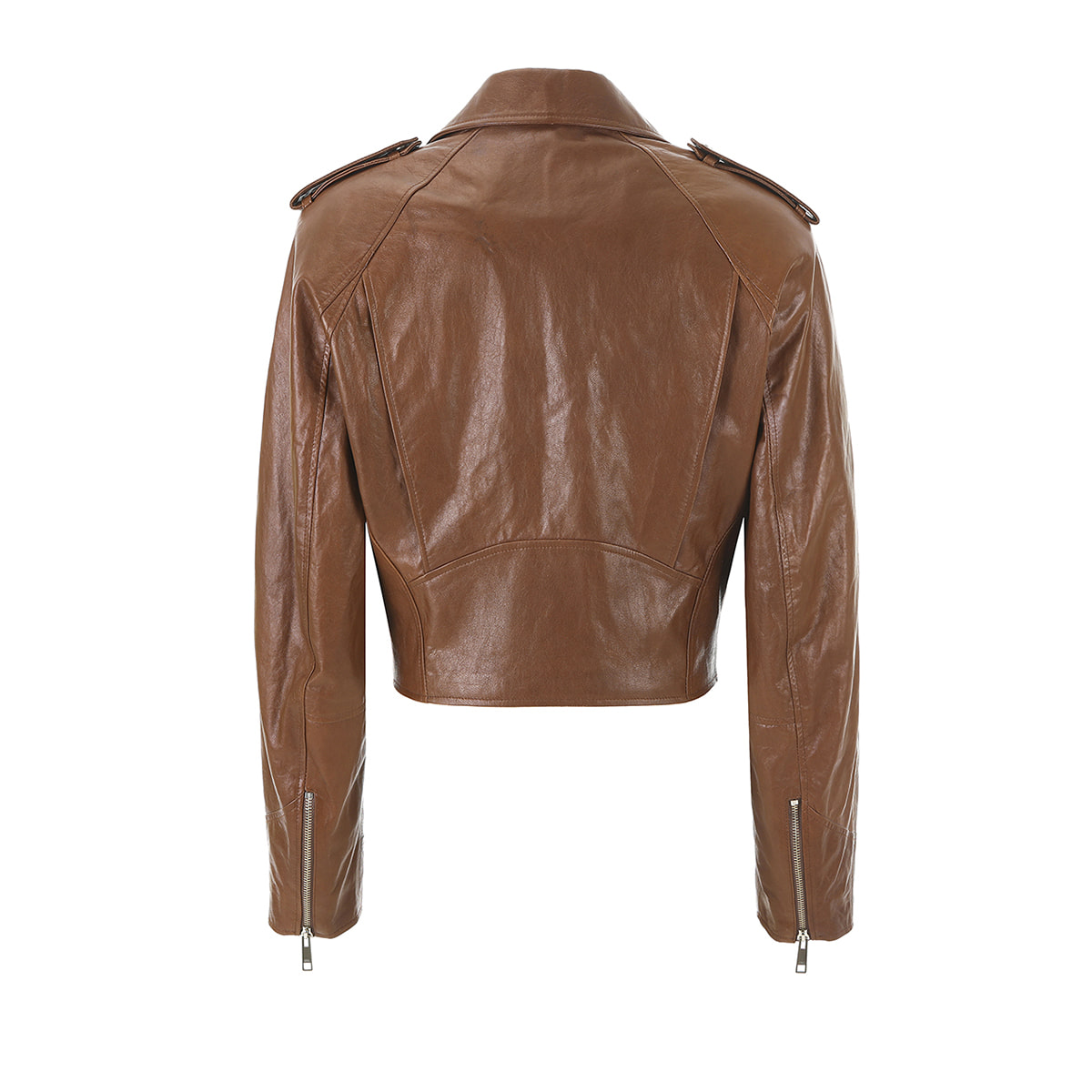 It's a rider jacket with raglan sleeves that emphasizes the shoulder line.It can feature a cropped style, and is made of soft natural sheepskin with a two-tone color.*Because of the nature of natural leather, it is vulnerable to moisture, so please store