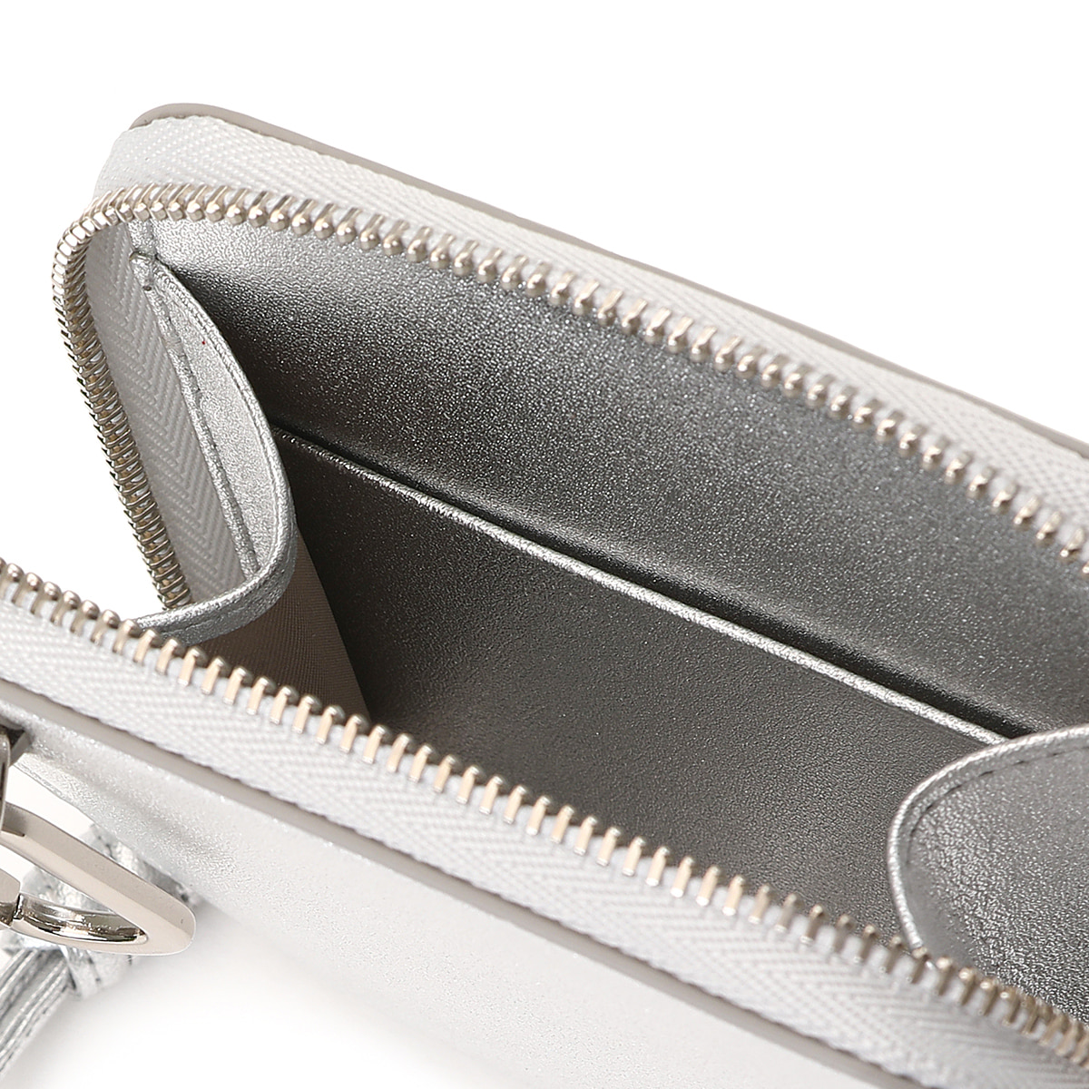 It's a wallet with a minimal design with a strap holder attached.It has one card slot and storage space on the front and inside, making it easy to wear when going out lightly.You can customize it with other SLG products using a detachable ring.*This produ